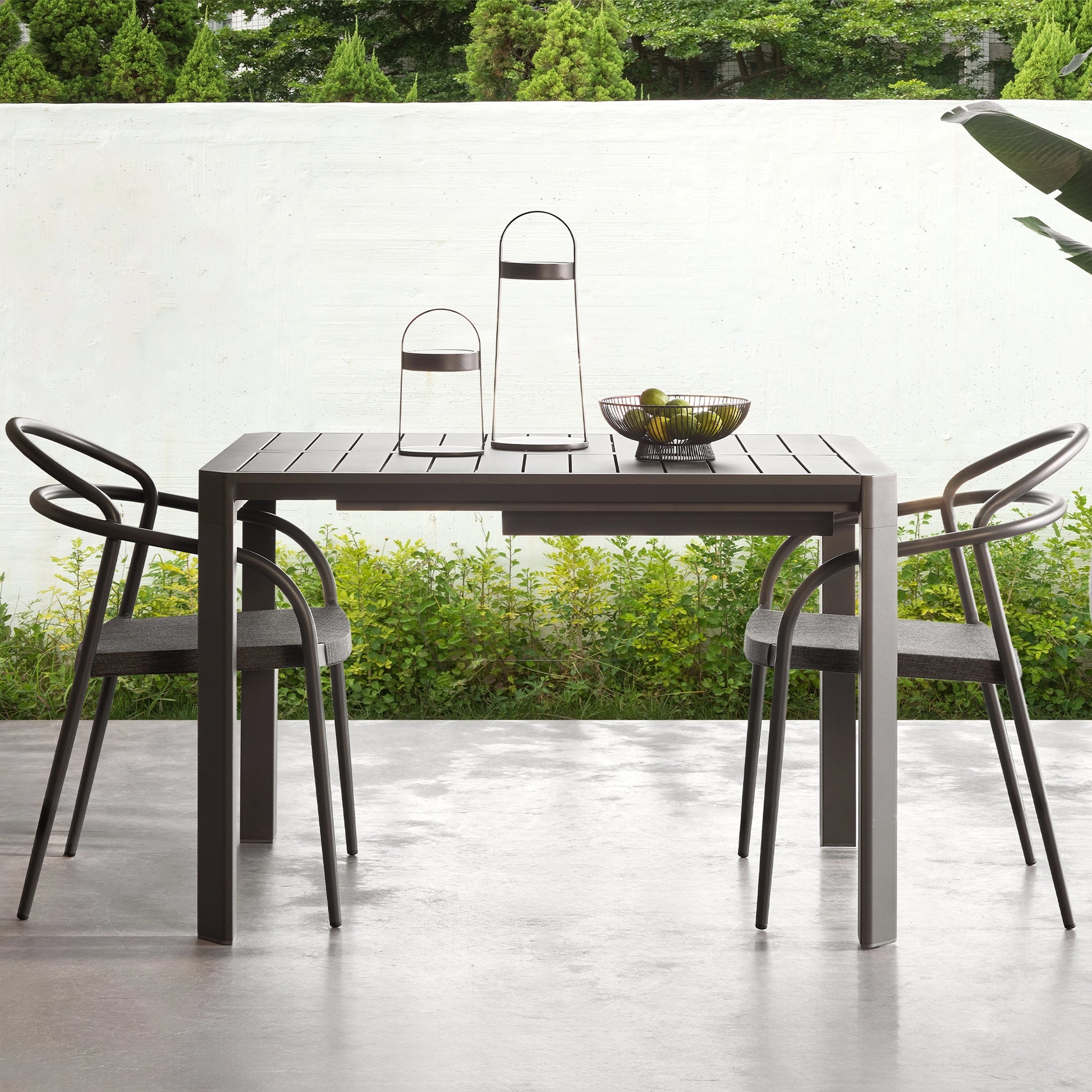 Enjoy your outdoor meals in good company. Beneath a sumptuous slatted top that lets water flow right through, the Link table conceals an extension mechanism that deploys in just a few movements to accommodate more guests. Its sleek, modern structure will bring a timeless elegance to your exterior while resisting the elements in style.