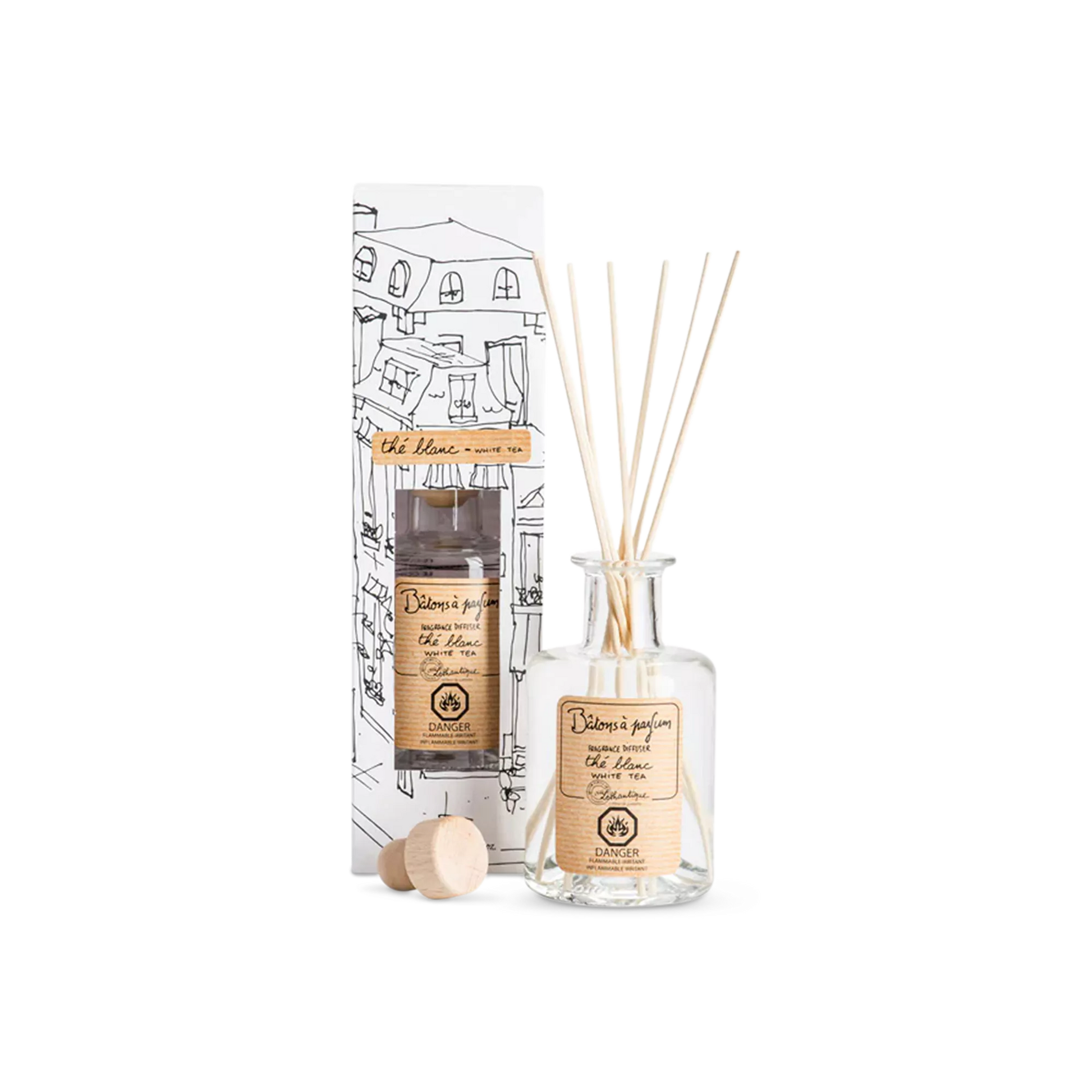 Bring the gentle scents of Provence into your home with the Lothantique diffuser! Ideal for effortlessly infusing your house with a pleasant aroma, simply place the reeds in the bottle for the fragrance to diffuse into the air. Choose from the powdery scent of clean laundry or the fresh floral fragrance of white tea.
