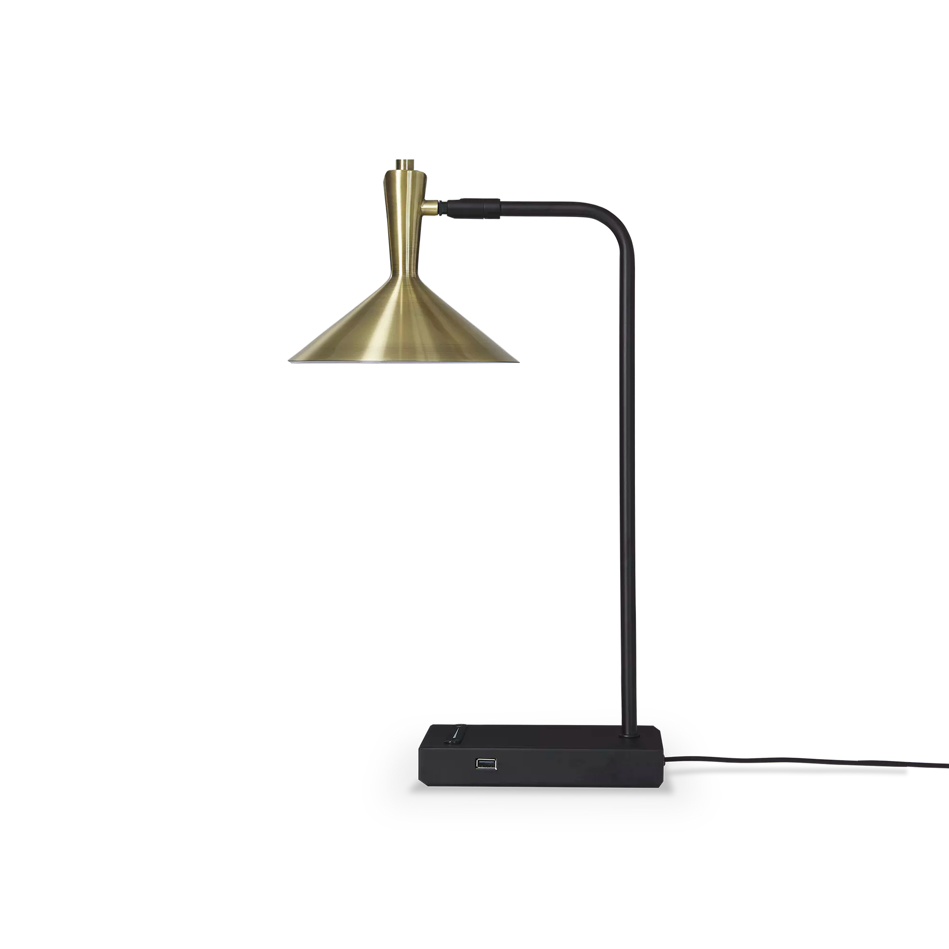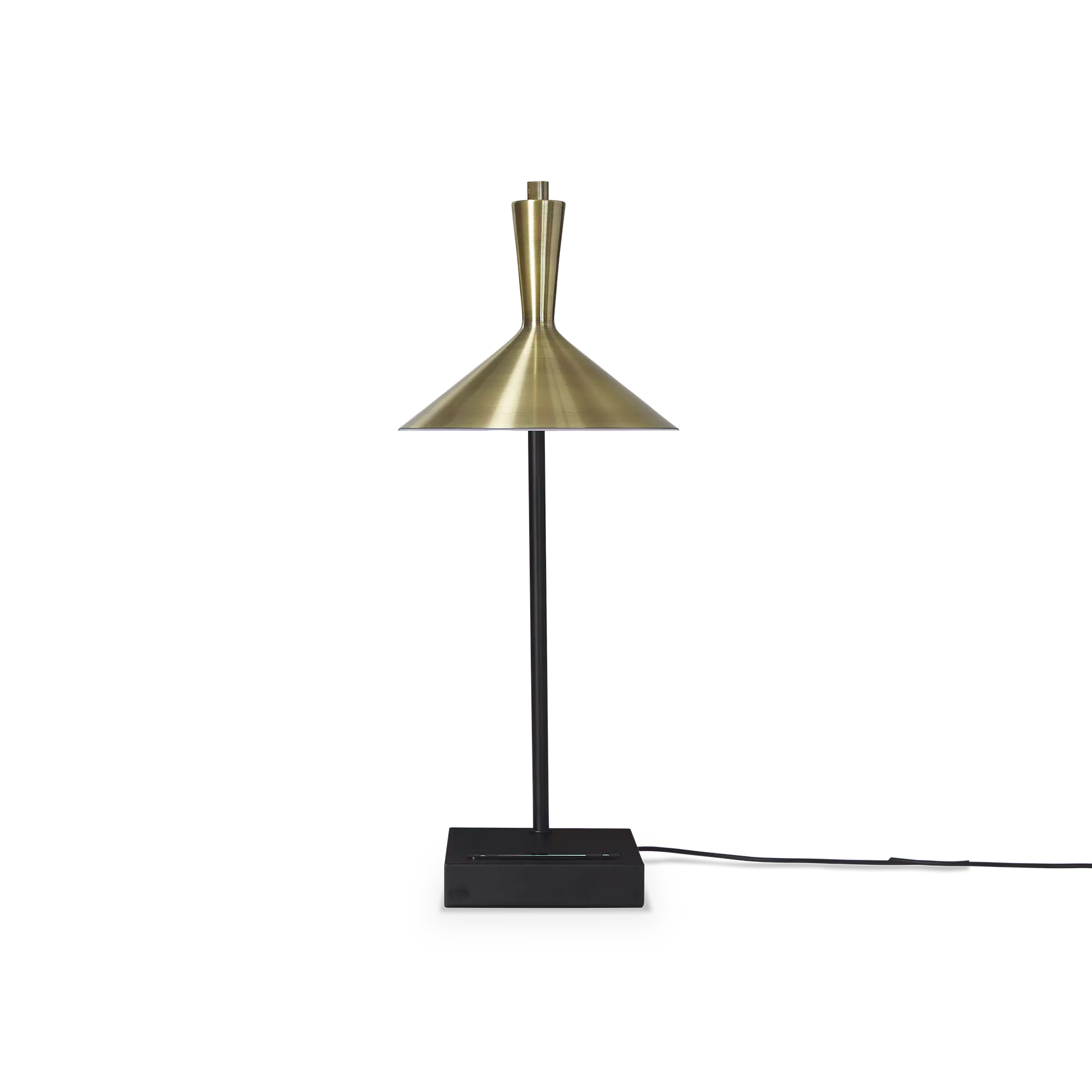With an antique brass finish that would make C-3PO jealous and a base with a built-in USB port, Lucas is high-tech from top to bottom. Its smart touch switch lets you follow the sun’s daily path, from cool light to match the midday sun to a soft, warm glow for relaxing evenings.