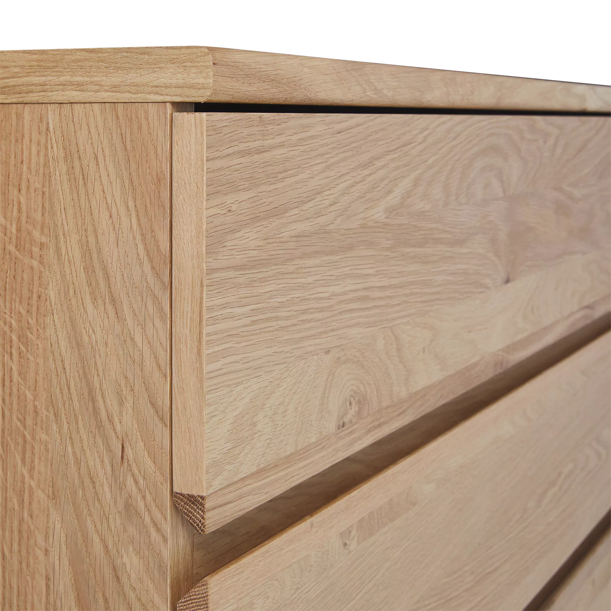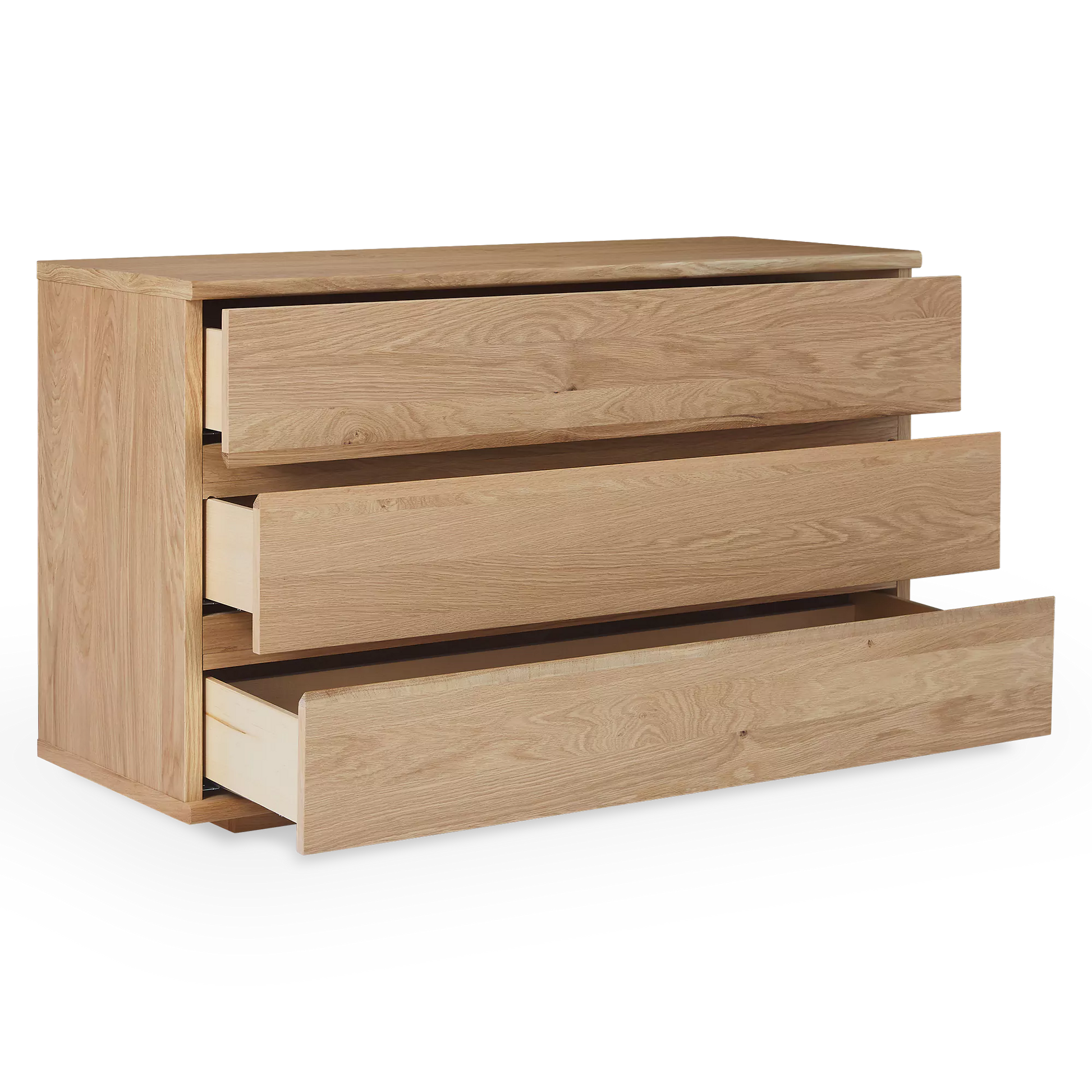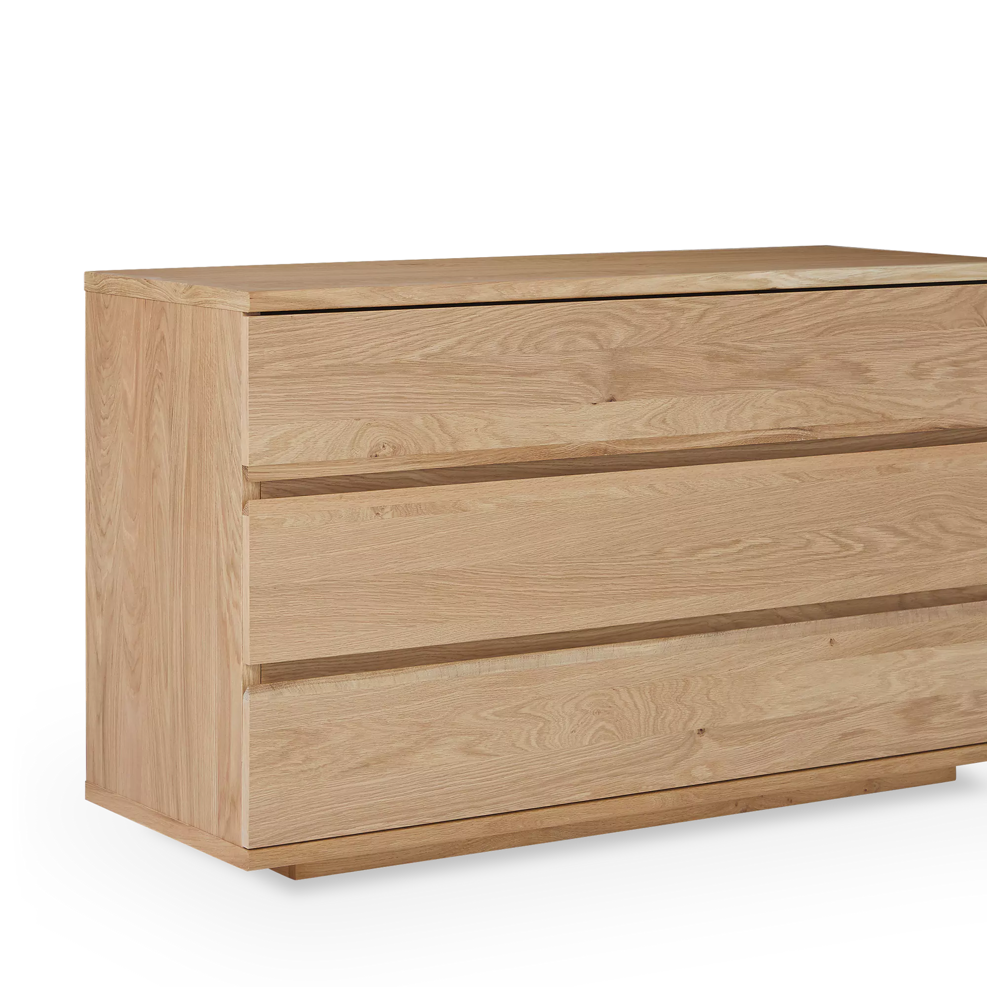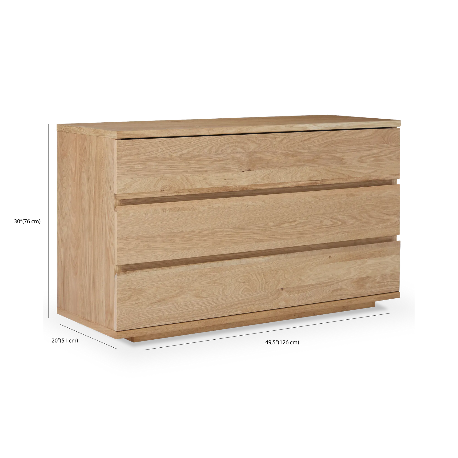 Featuring a gradient of soft tones, the natural oak from which the Maeva dresser is made brims with a rustic and contemporary look.