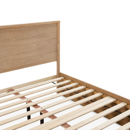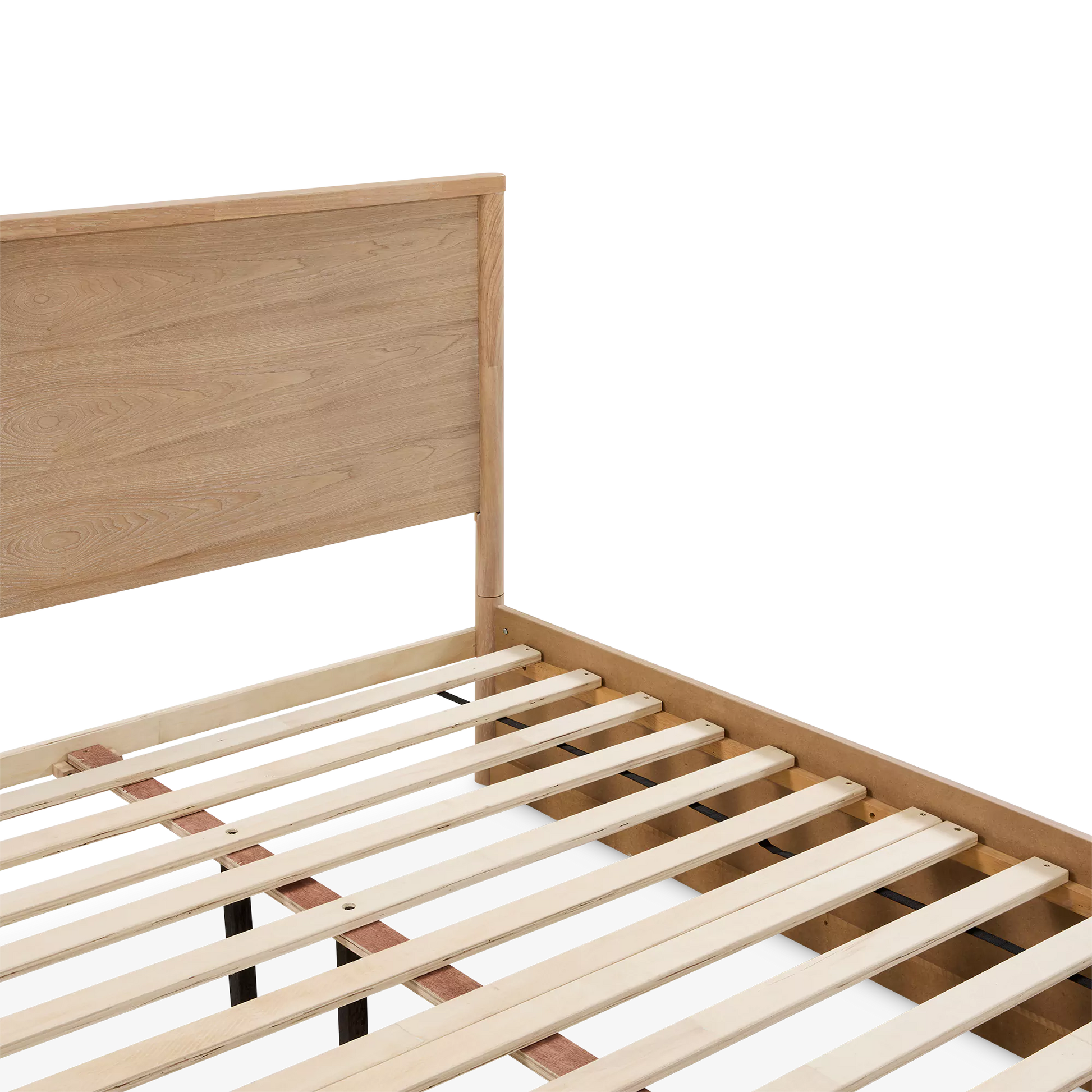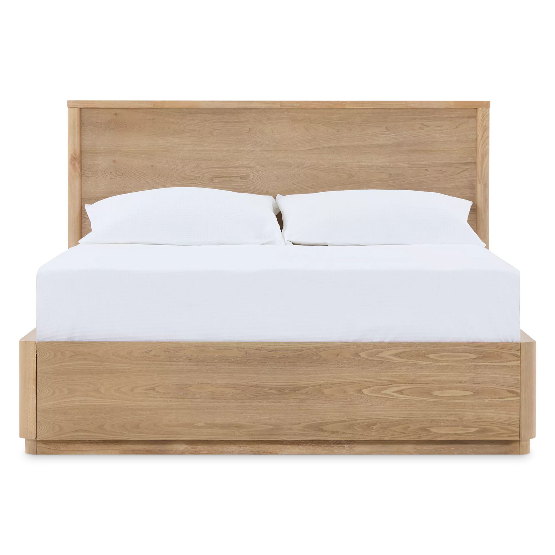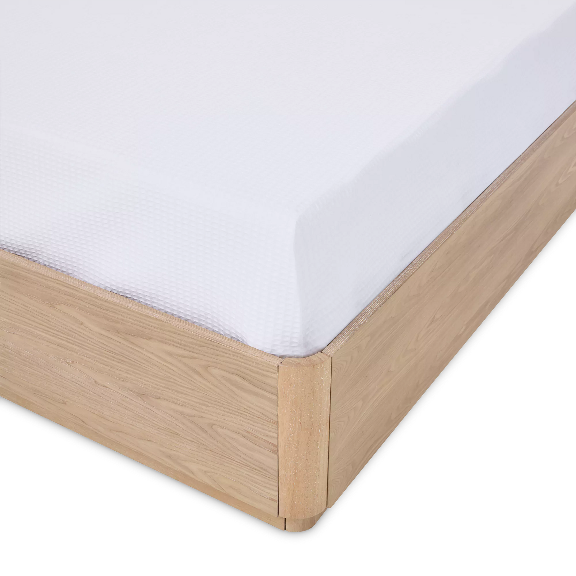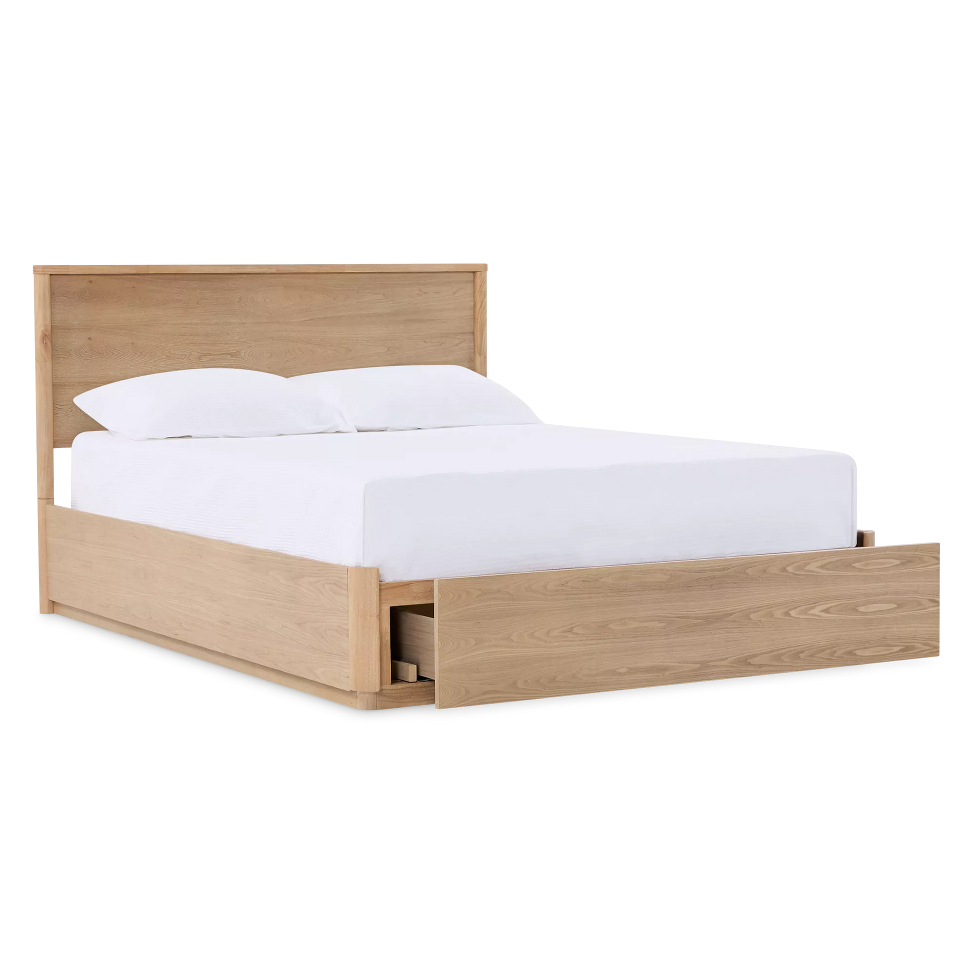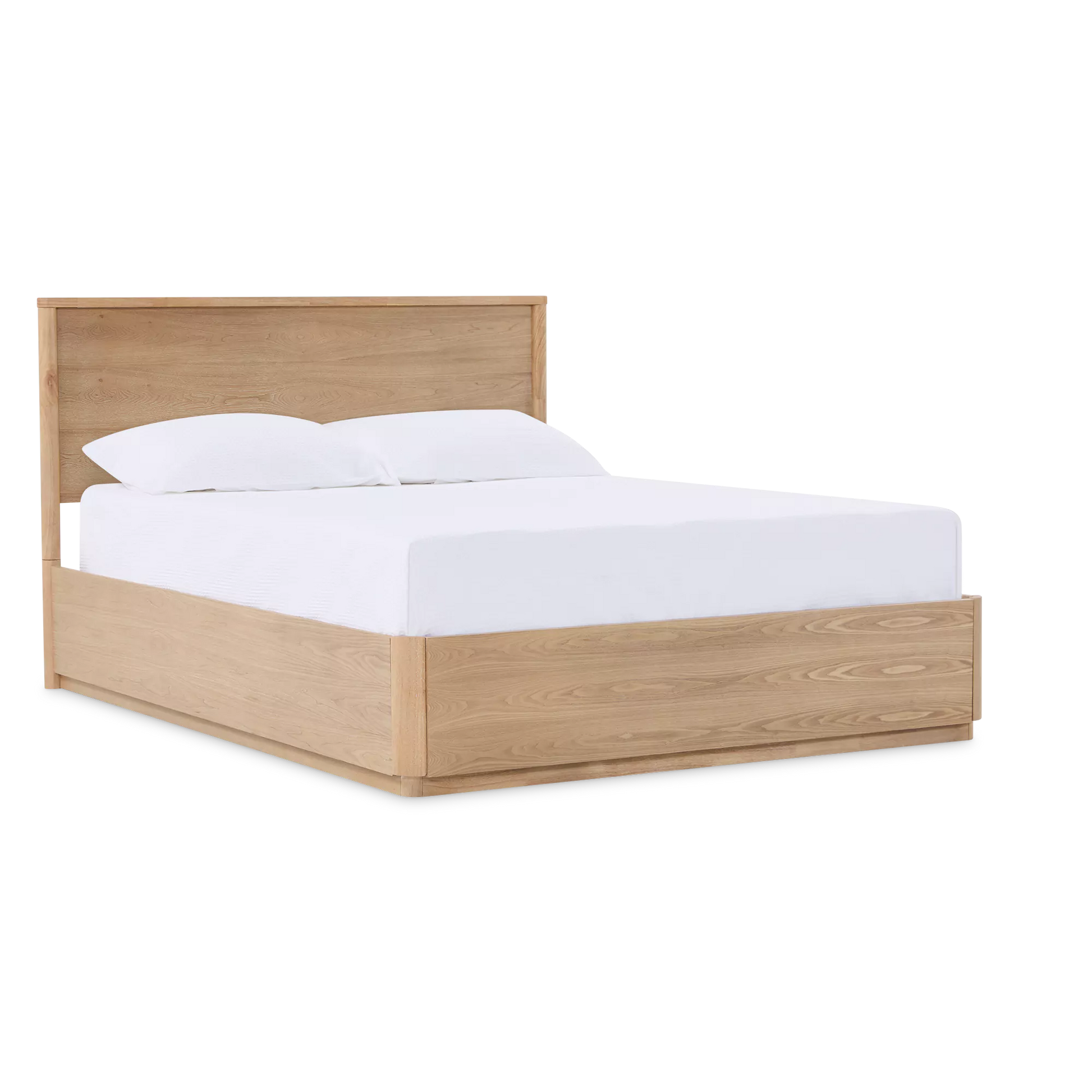 The Maiko bed combines clean design and practical function, with a beautiful blanched wood frame and spacious built-in storage drawer. Its softened edges and tall headboard give it a calming and elegant presence. Versatile and easy to style, it fits just as well in a modern bedroom as it does a rustic or country-style space.