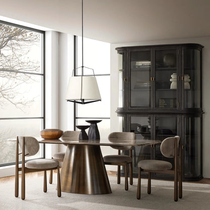 The Malibu Boat table's sleek design showcases the strength of its materials. Its metal base, reminiscent of an inverted cone, supports a delicately hand-beveled marble top. A sophisticated creation, designed to enhance the most contemporary interiors.