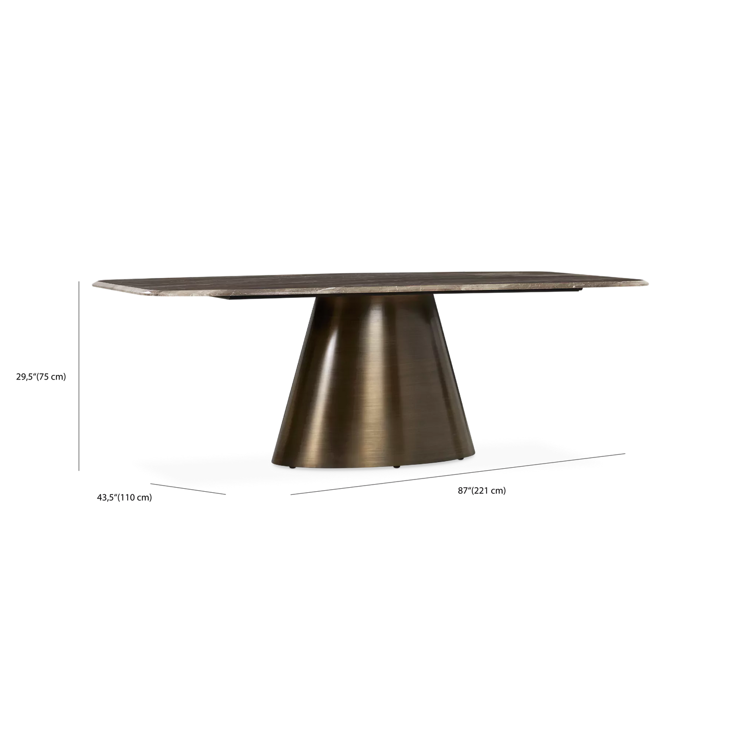 The Malibu Boat table's sleek design showcases the strength of its materials. Its metal base, reminiscent of an inverted cone, supports a delicately hand-beveled marble top. A sophisticated creation, designed to enhance the most contemporary interiors.