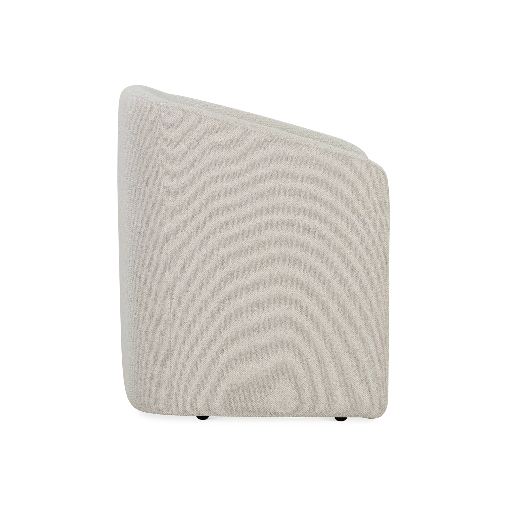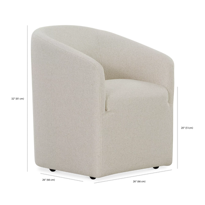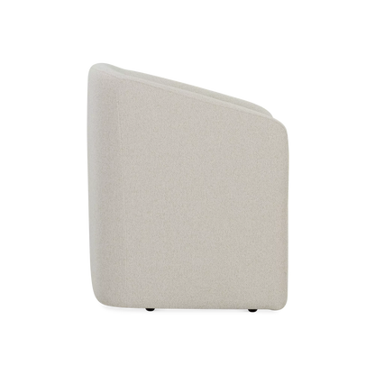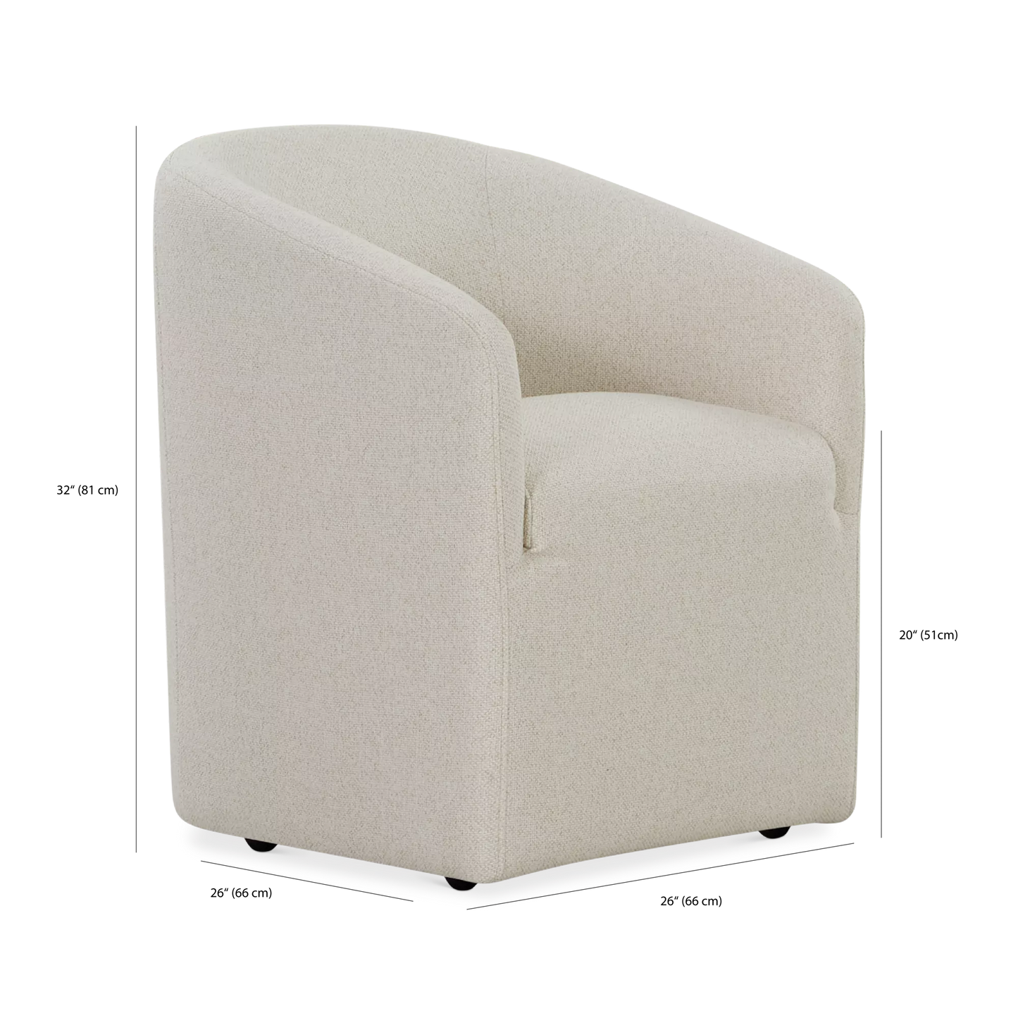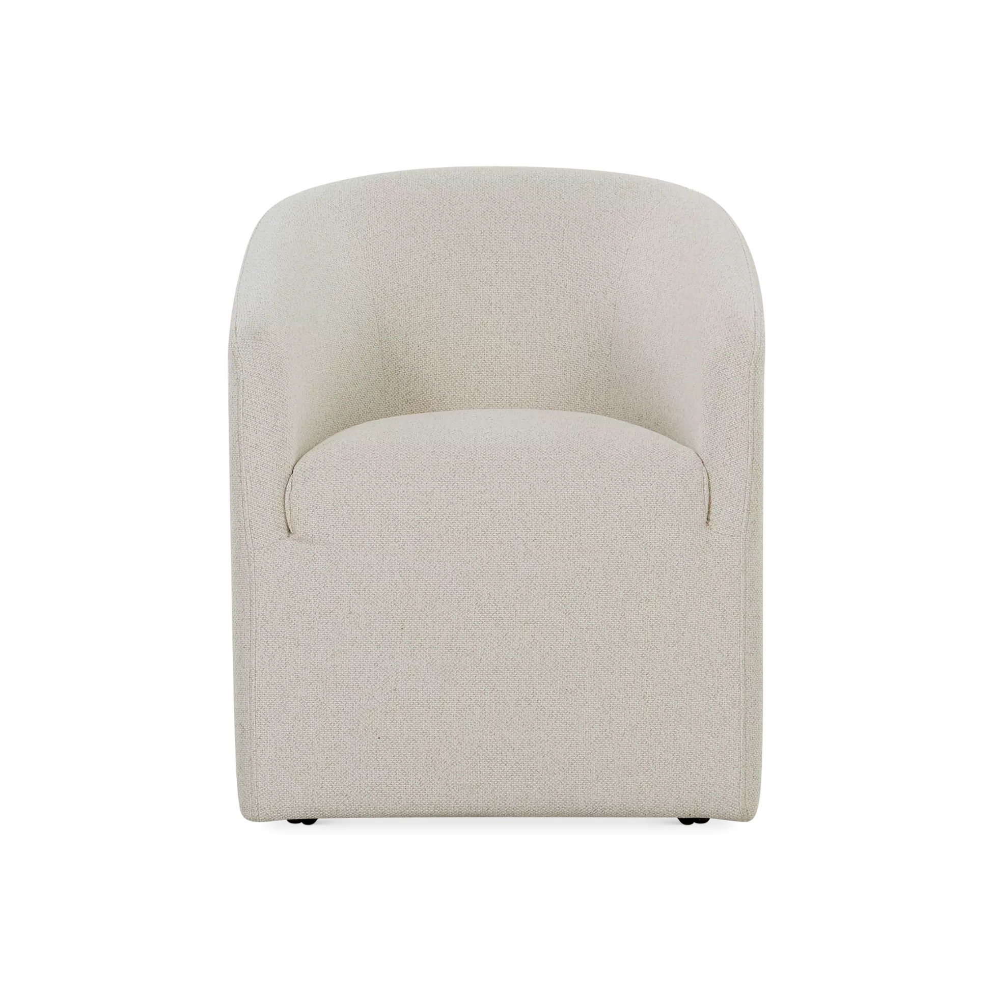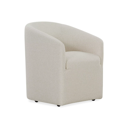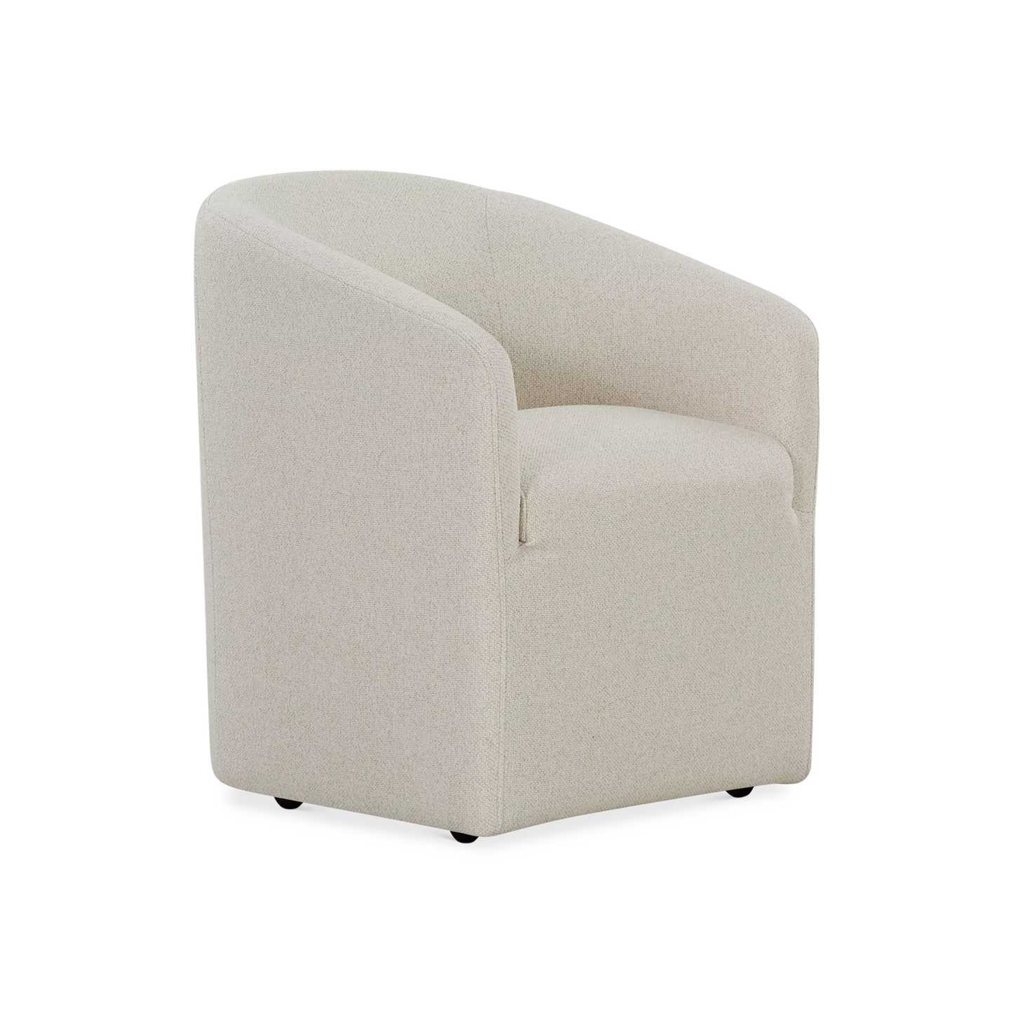 The Marny upholstered dining chair captivates with its bold design and organic silhouette. Its gracefully curved seat offers perfect comfort, while its refined architecture, along with discreet casters, effortlessly complements any dining space, adding character and warmth to every gathering.