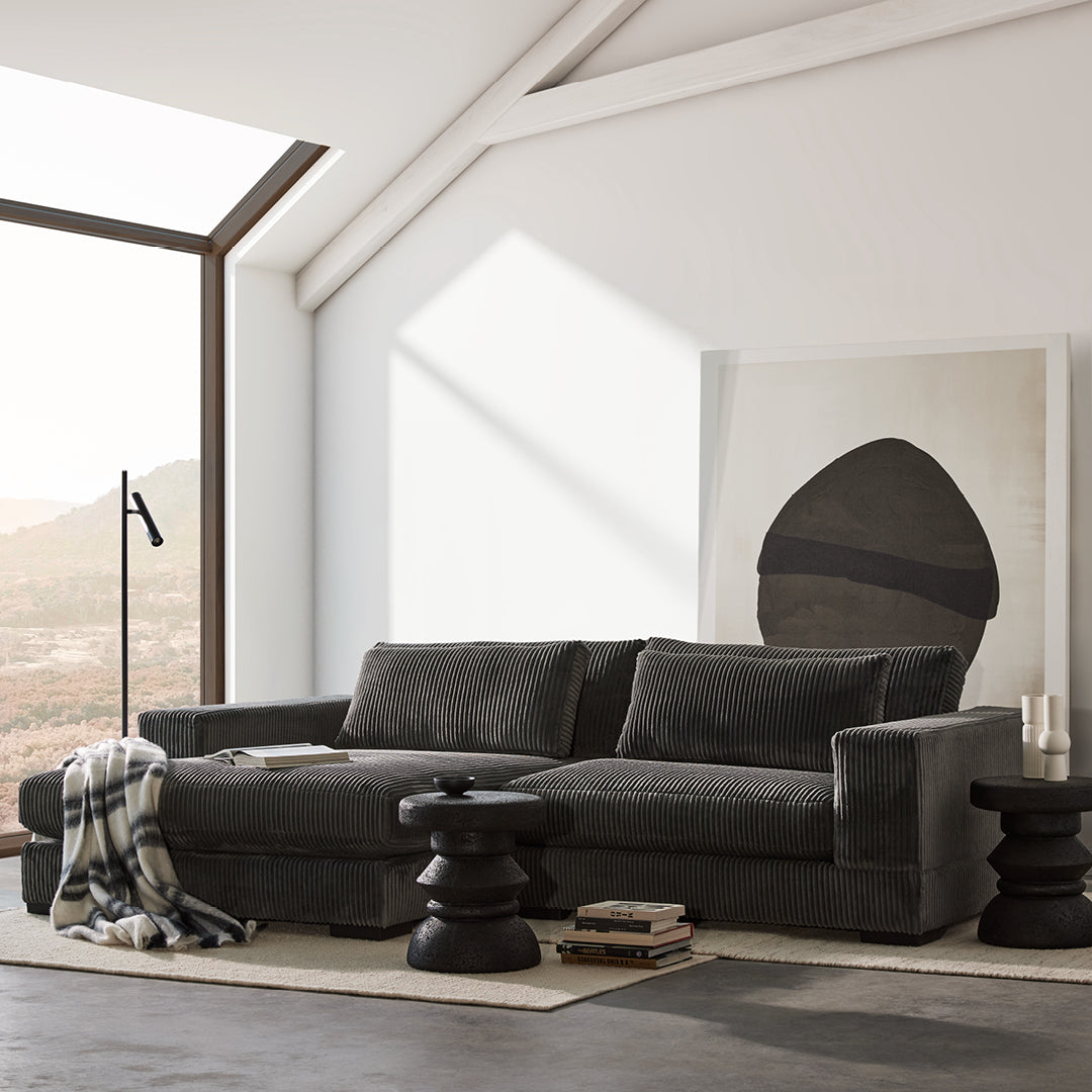 There is simply nothing better than snuggling up on the Meadow sofa after a long day! In corduroy or bouclé fabric upholstery, this ultra-soft sectional is perfect for creating a cozy living space.