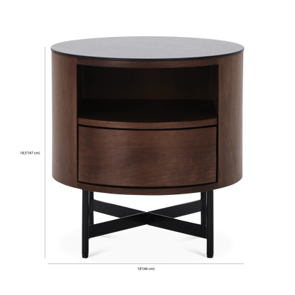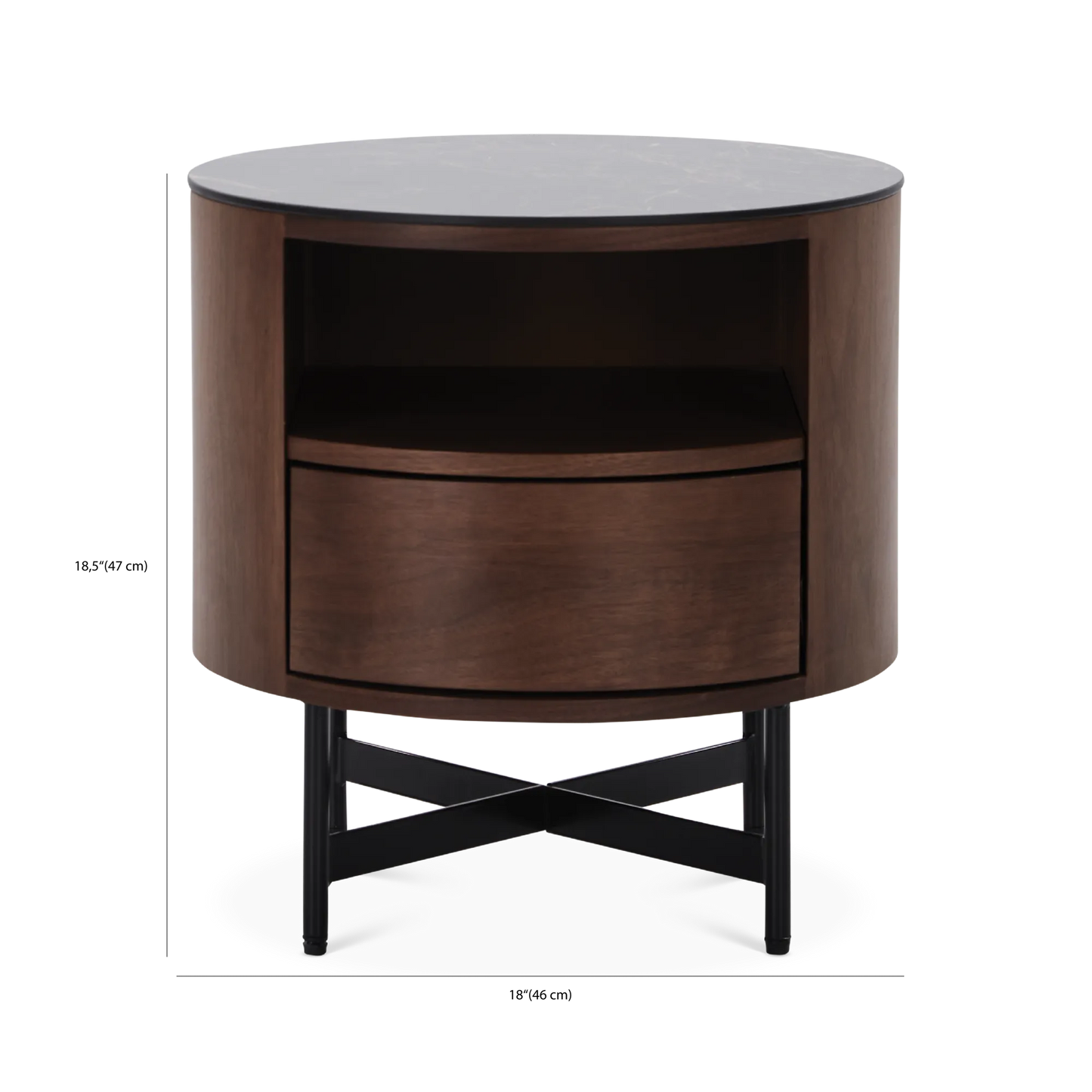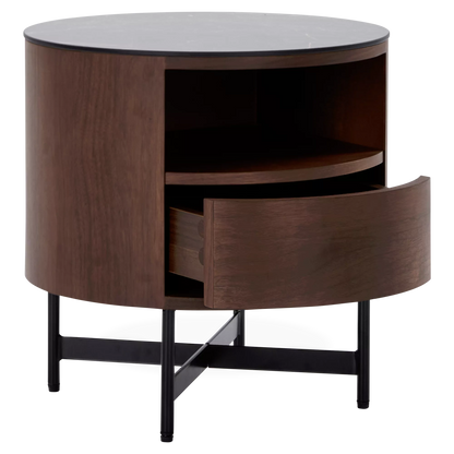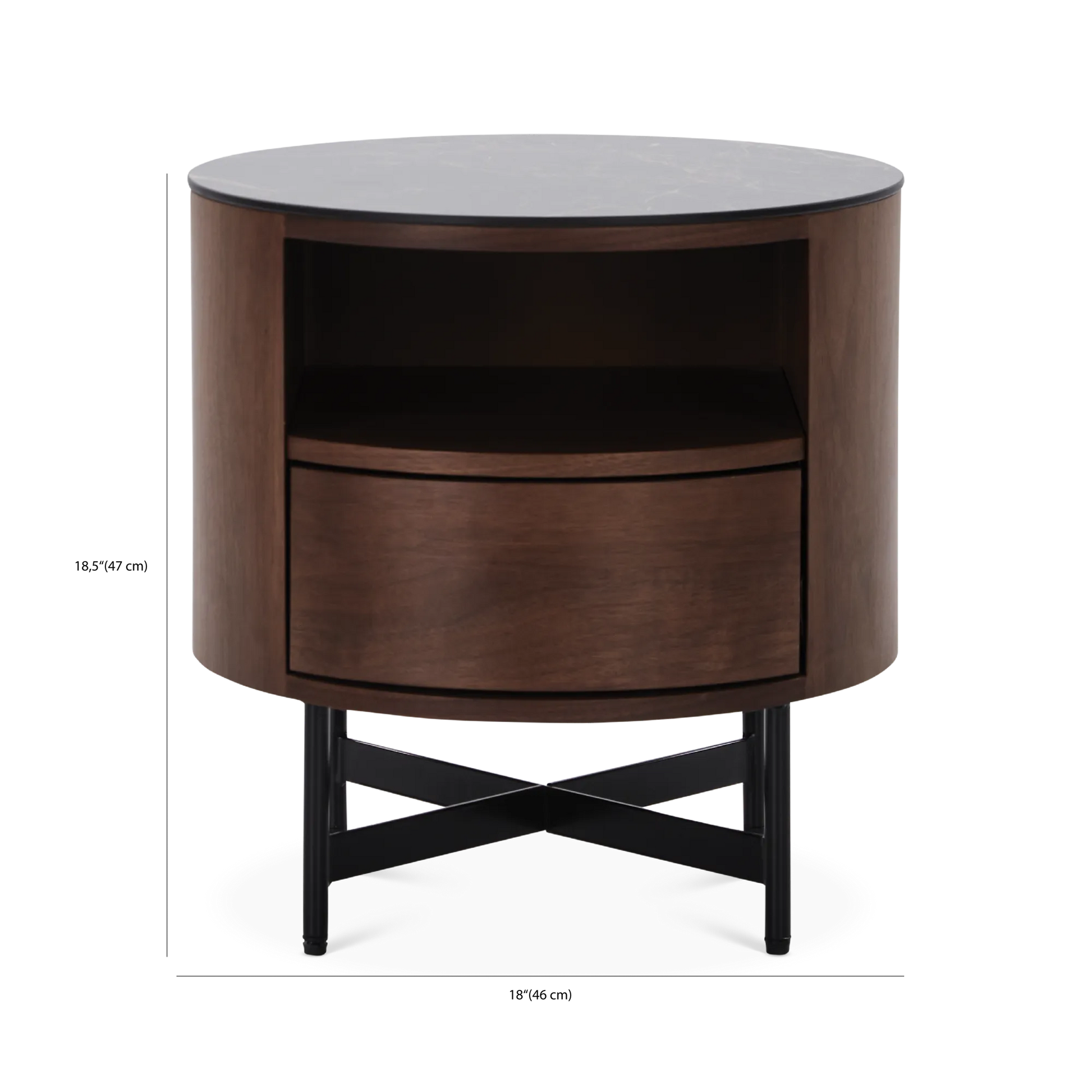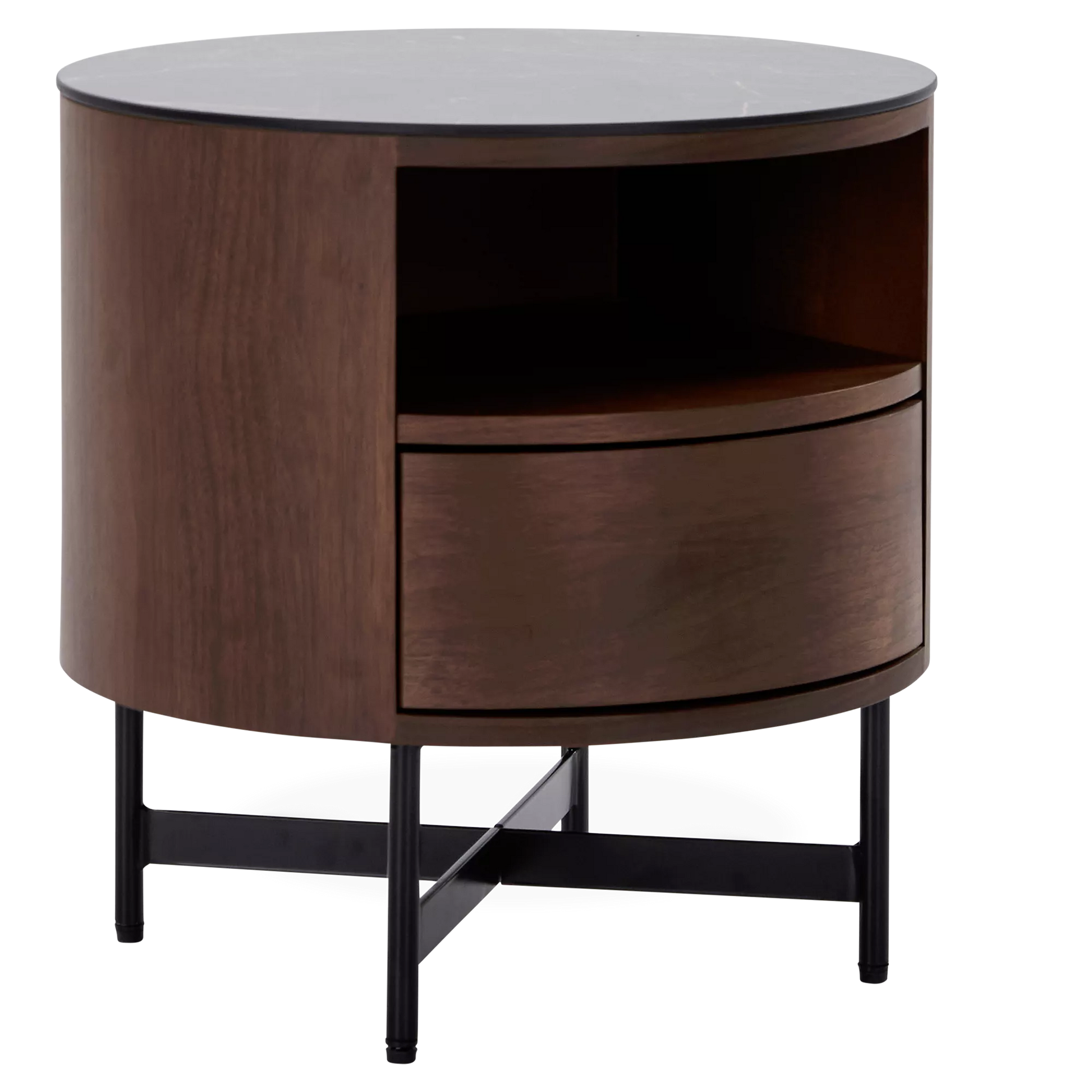 The Meli nightstand shines with exquisite curves reminiscent of a jewelry box.