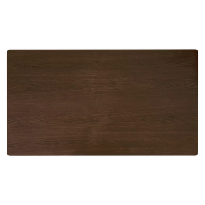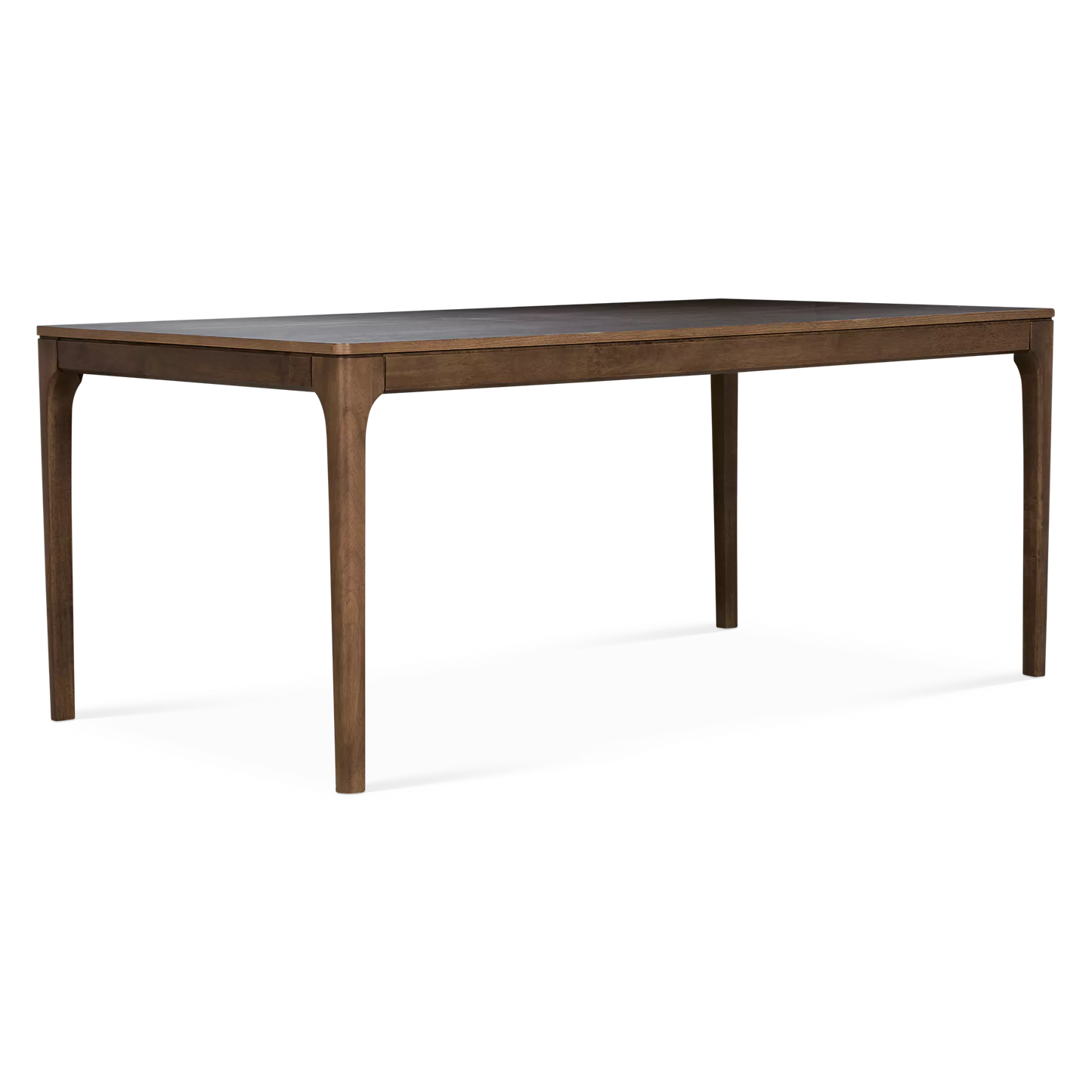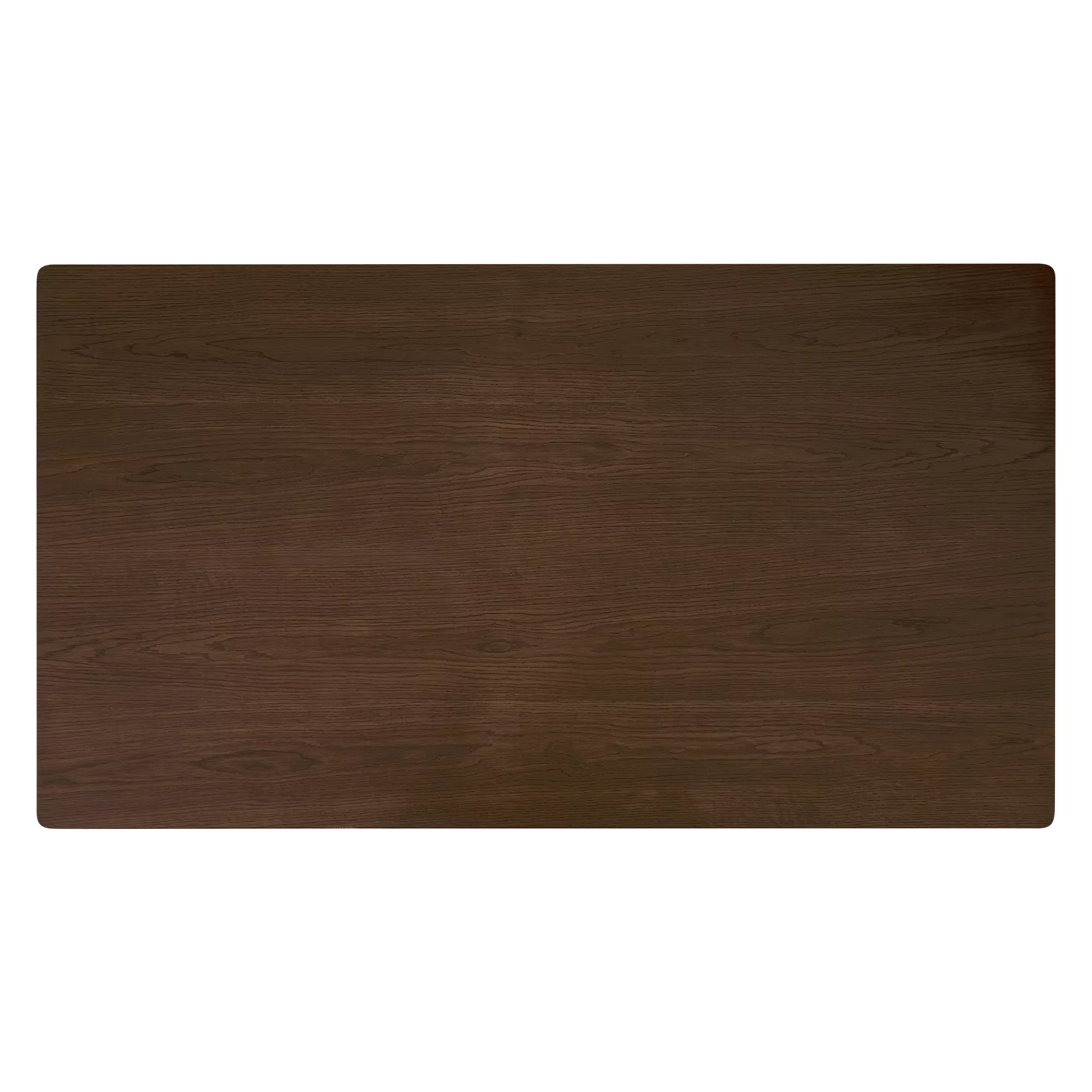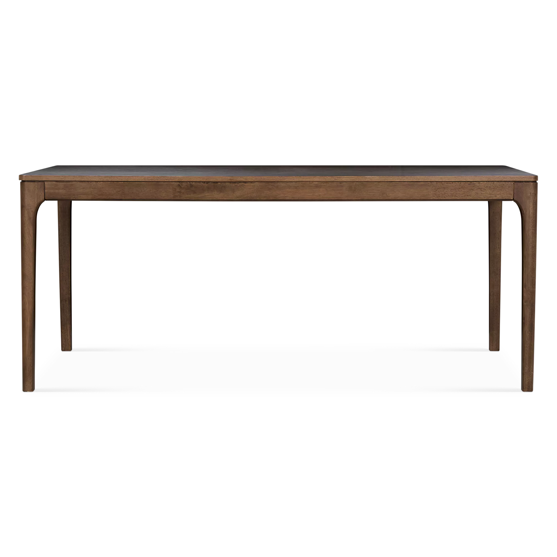 The Millie dining table charms with its clean lines and balanced design. Crafted from stained walnut veneer, it features a rectangular top with softened corners and slender legs that lend a light, refined look. A chic and timeless addition to any dining space.