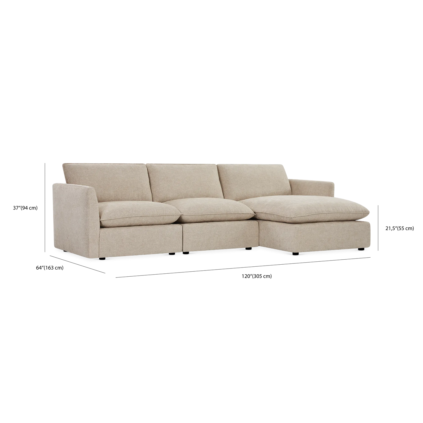 Milo is one elegant sectional. Featuring clean lines and generously padded cushions, this sofa is the symbol of a warm welcome. Standing out on its own or combined with other pieces from the same collection, it invites you to create a tailor-made and personalized space designed to suit your needs.