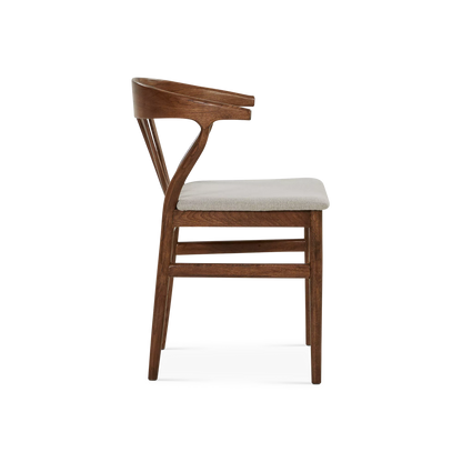 The Nordic chair combines the warmth of natural oak wood with a minimalist and functional design. Its solid structure with carefully designed curves is typical of the Scandinavian approach to comfort and conviviality. Refined and elegant, its unbleached fabric seat reinforces the Nordic look that suits a wide range of dining room decors.