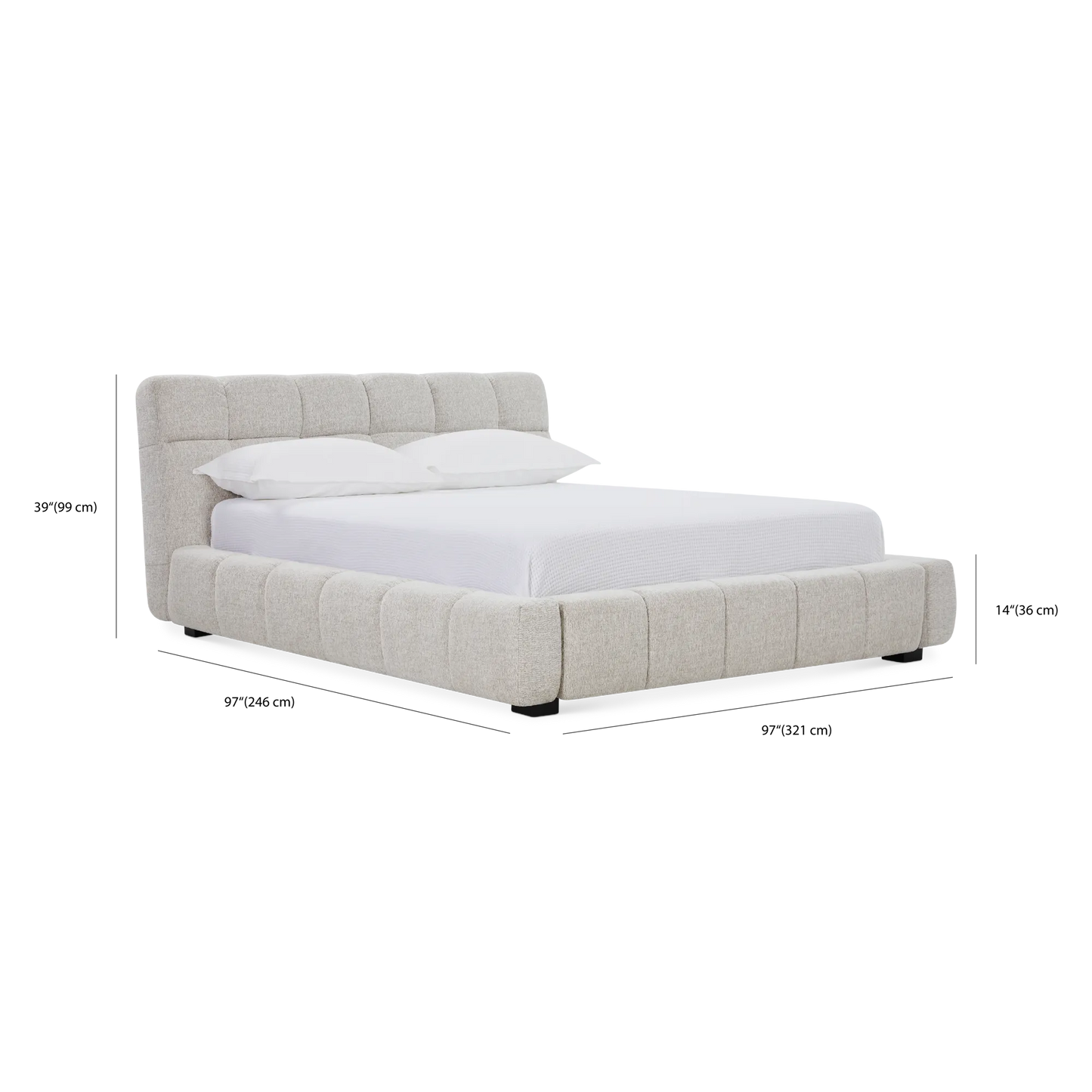 The fully upholstered Nour bed is a decidedly modern design. Featuring a contemporary silhouette and base channel tufted with premium fabric, it will bring a sense of calm and luxury to any bedroom. Its solid structure, meanwhile, ensures optimal support for a restful and revitalizing night's sleep.