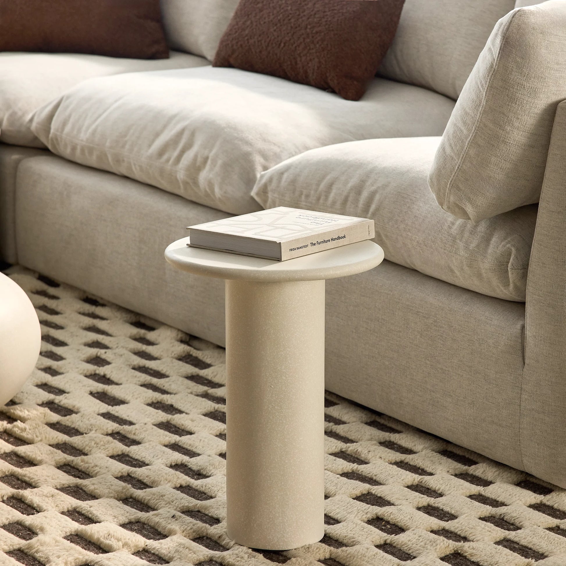The Noxa side table brings quiet elegance to any setting with its clean cylindrical form and tactile mineral finish. Crafted from a composite of fibreglass, sand and cement, it strikes the perfect balance between airy and durable design. Minimalist yet grounded, it’s ideal beside a sofa or as a pedestal for decorative objects.