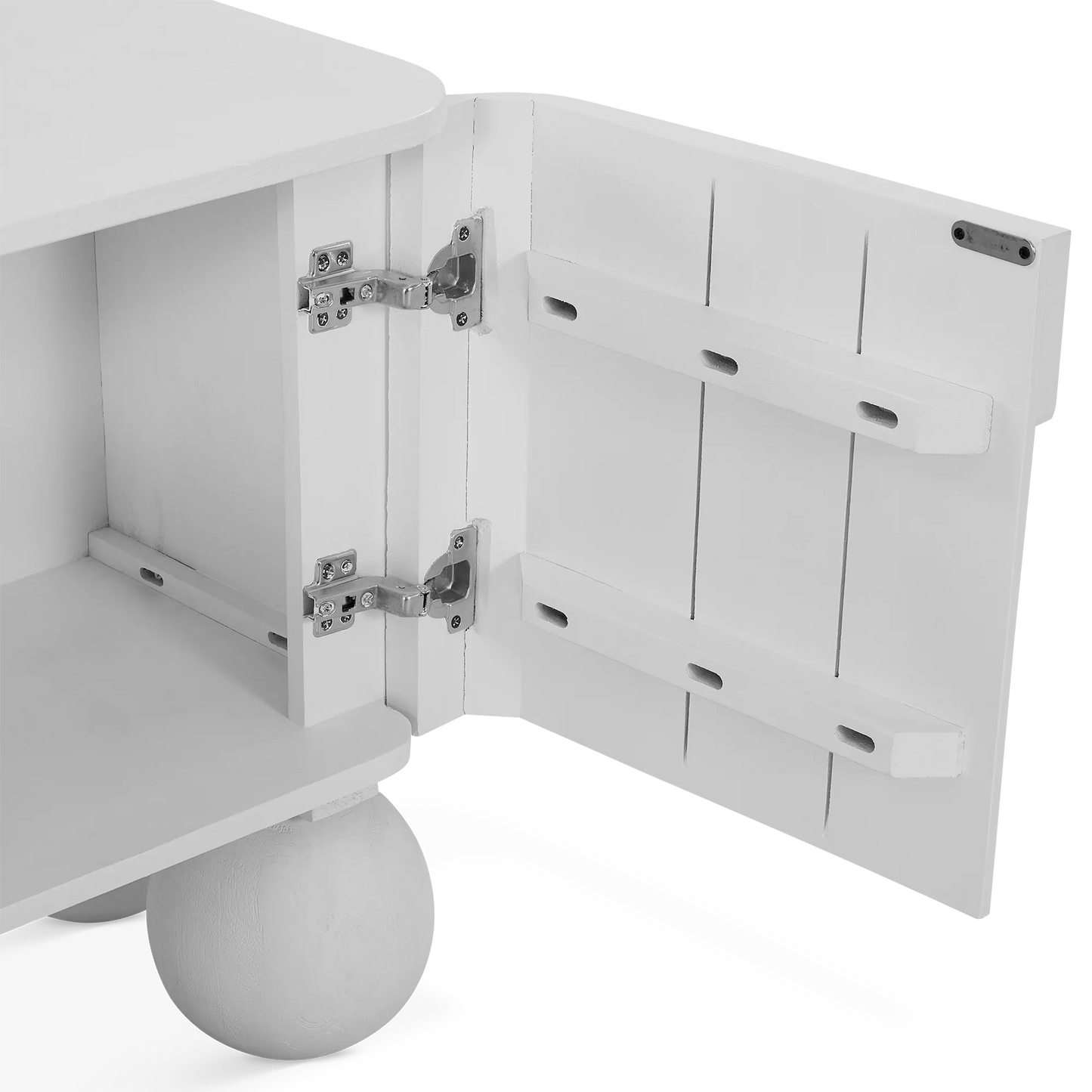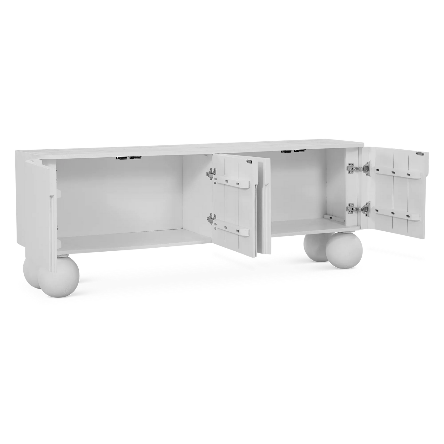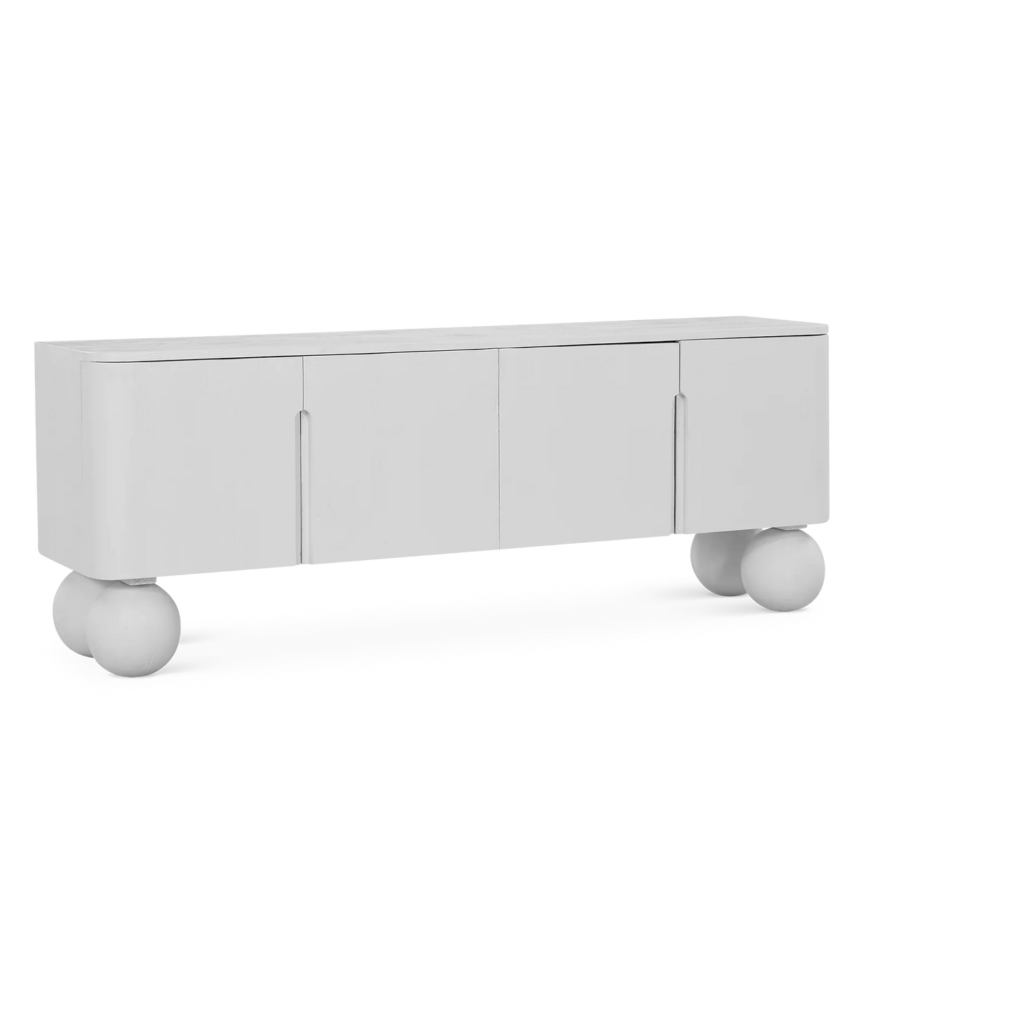 A sculptural statement for your living space, the Orb TV stand features a striking, modern silhouette. Its unique, spherical legs softens its clean lines, while its seamlessly integrated doors conceal ample storage space. The perfect blend of form and function, this monochromatic design will elevate any room with artful sophistication.