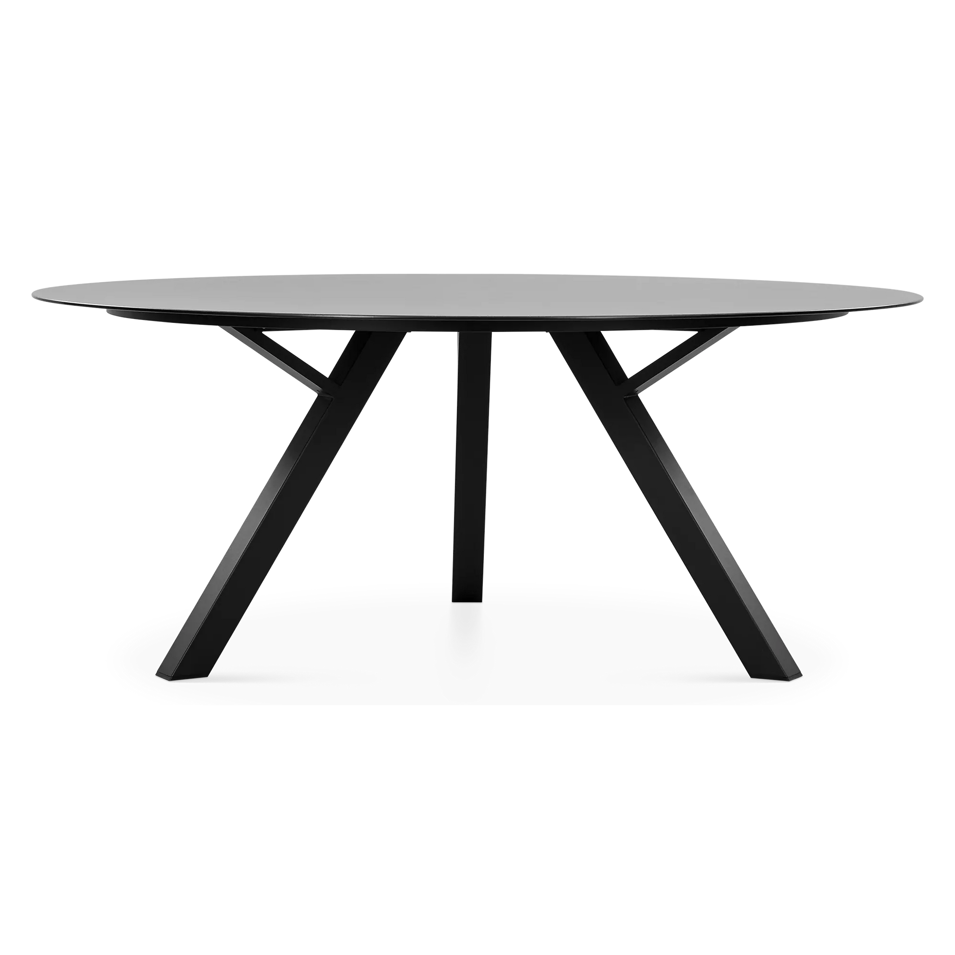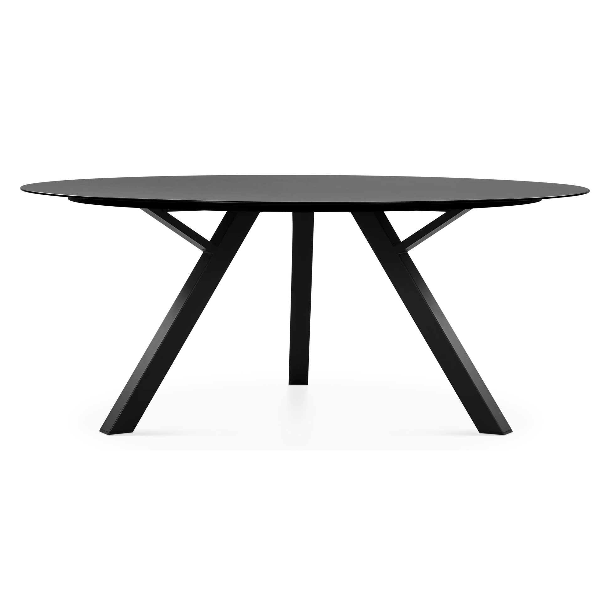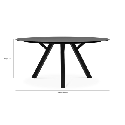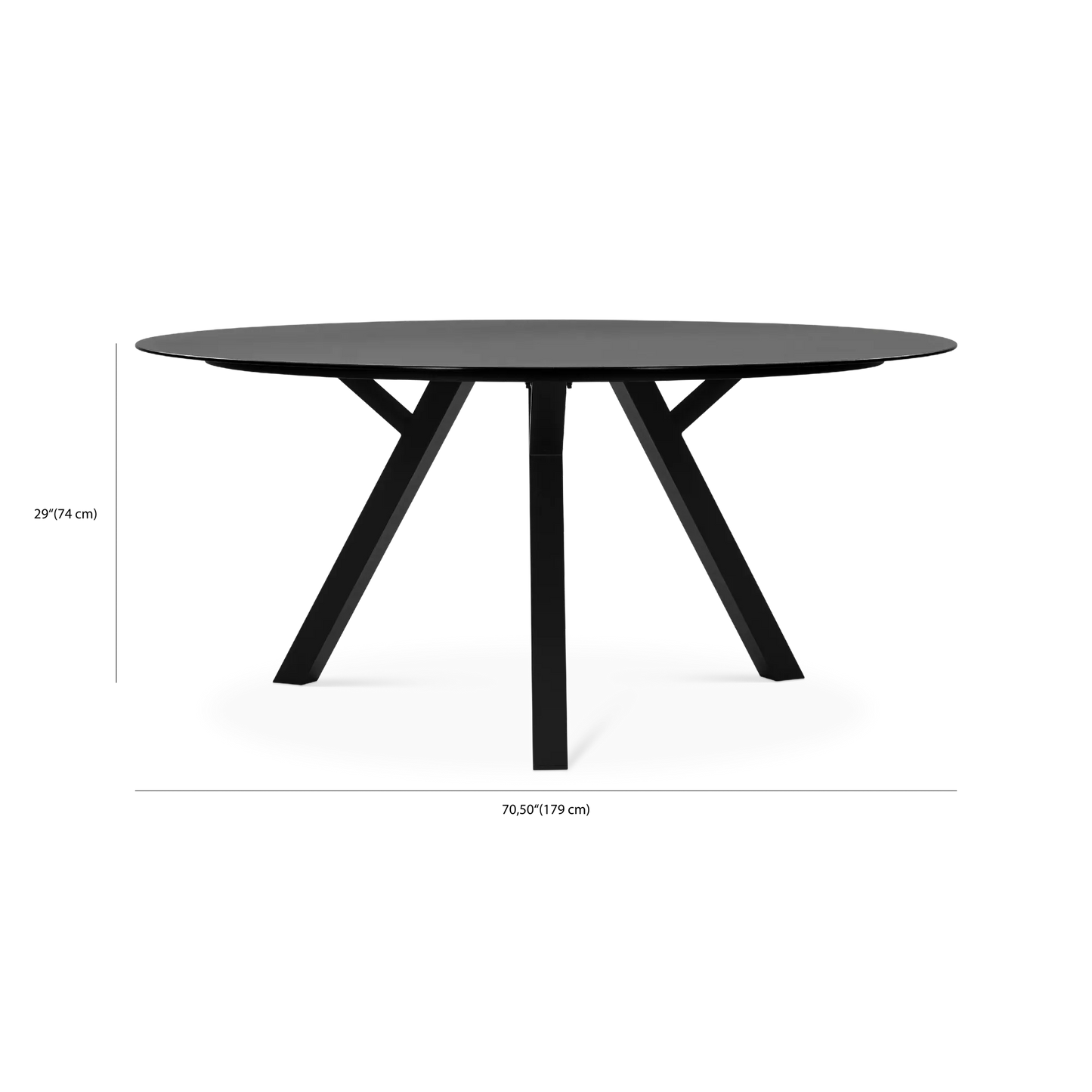Choose the Trilogy table to create an inviting atmosphere: its round top encourages conversation, while its spacious design can accommodate up to 8 people. The tripod base works beautifully with any type of chair, giving your guests plenty of legroom. Then, give into the charm of its contemporary silhouette, combining aluminum with a ceramic top on tempered glass for a look that’s both refined and durable.