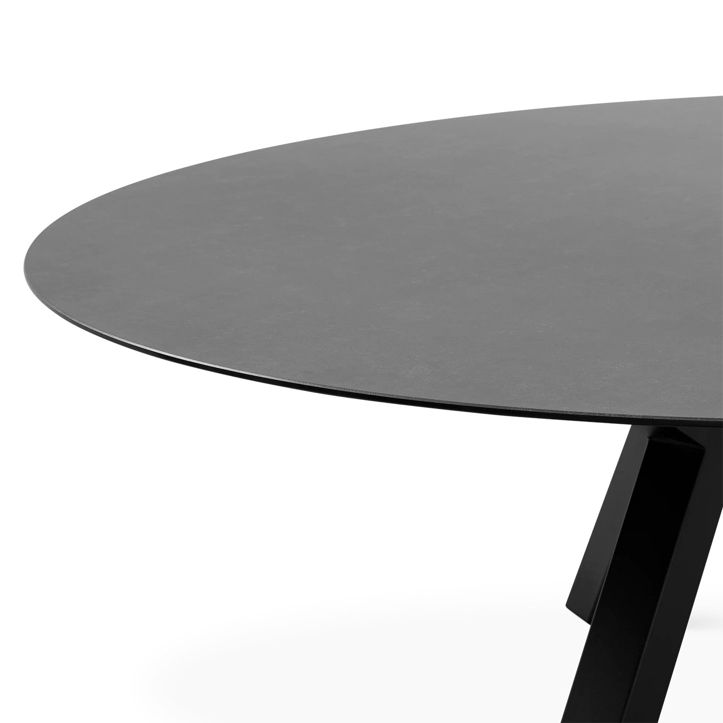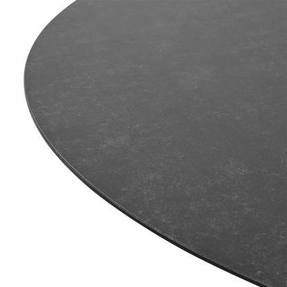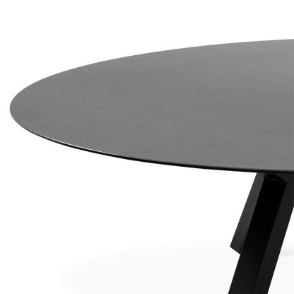 A surface made of a thin layer of ceramic fused to a tempered glass base. This combination blends the exceptional durability of ceramic with the structural strength and safety of tempered glass, resulting in a tabletop that is heat, scratch, and stain resistant, while maintaining a sleek and refined finish.