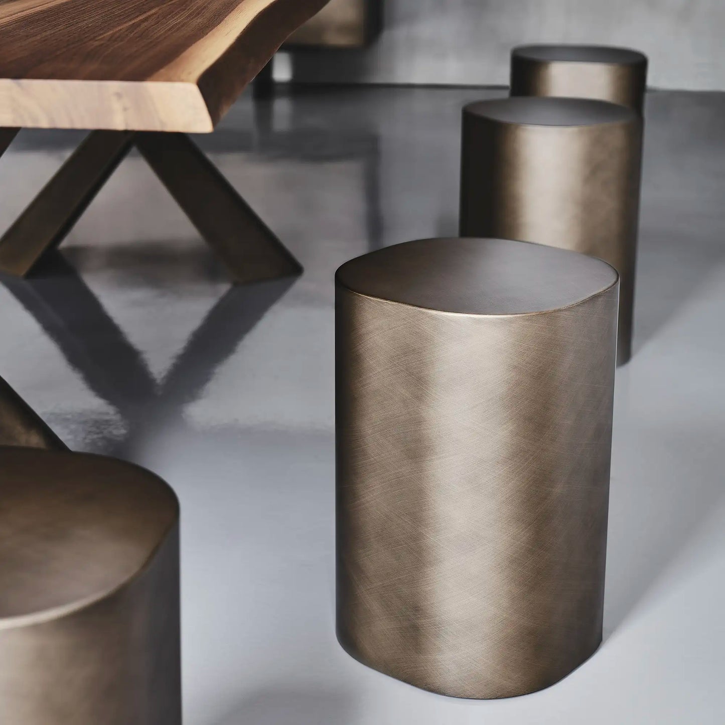 Made in Italy by Cattelan, Pancho side table in hand-brushed steel features a rounded shape and textured look. At once eclectic and sophisticated, it will enhance any modern living room with its raw, nature-inspired design.