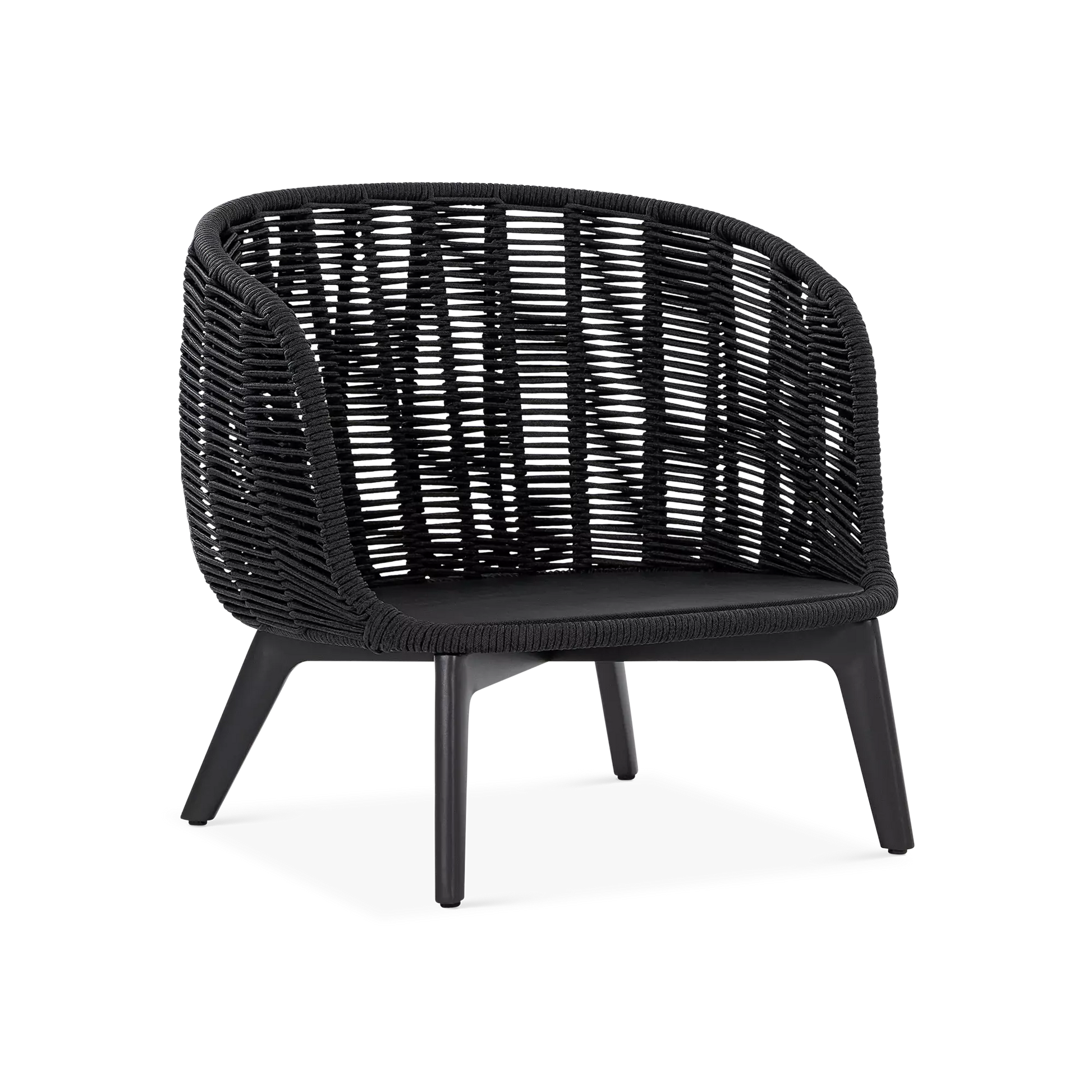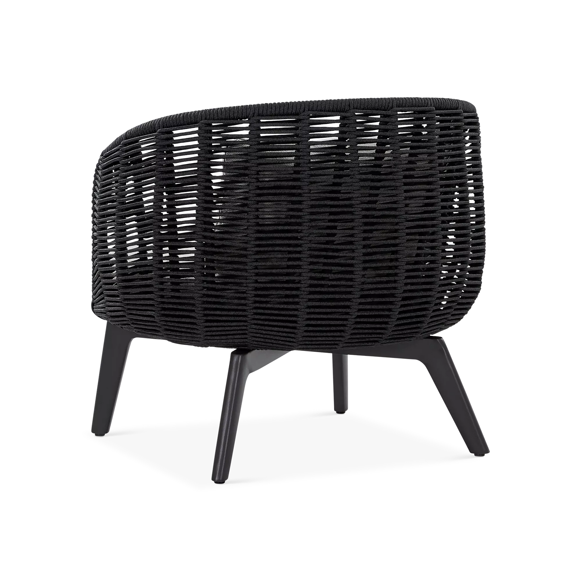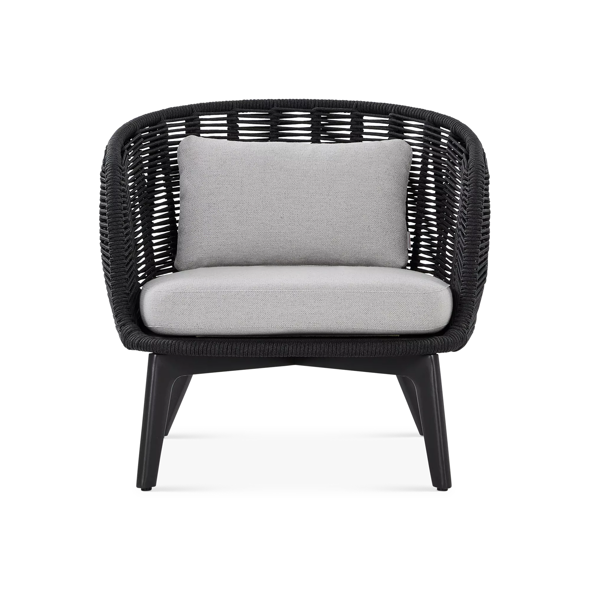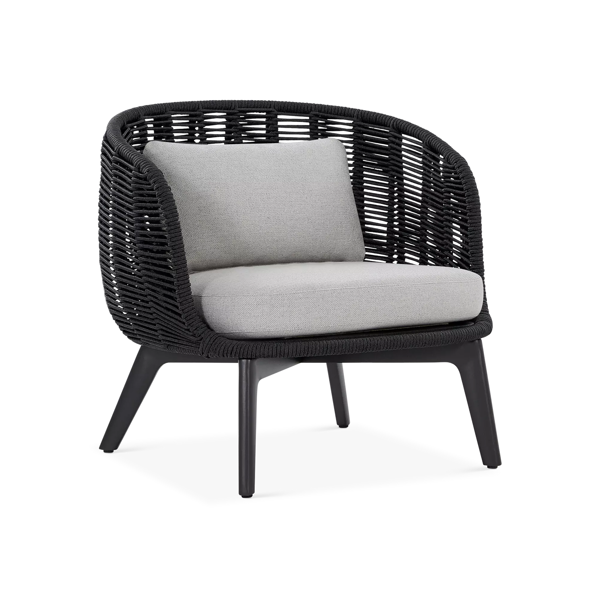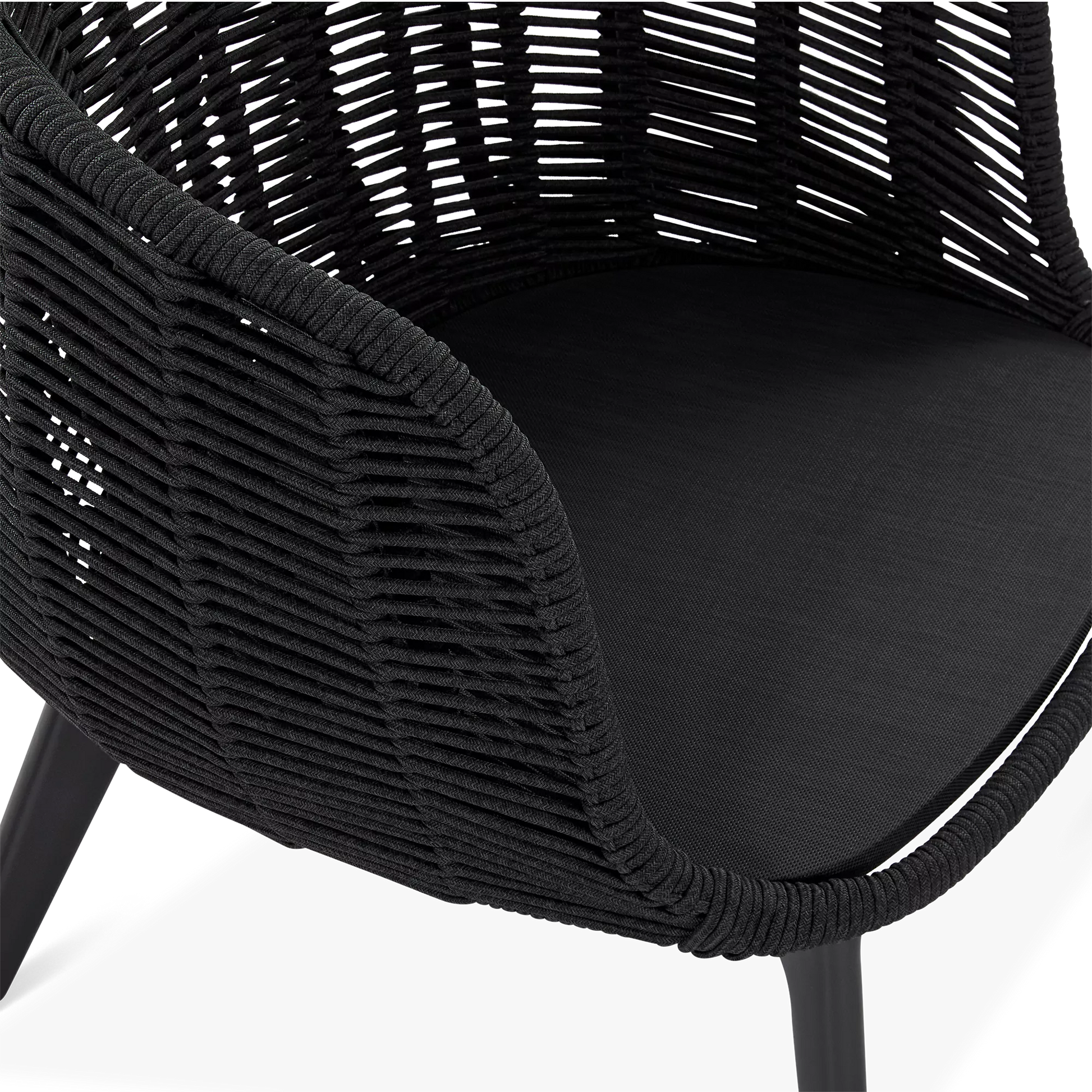 The Paris Brest collection exudes contemporary elegance and Scandinavian charm. With its hand-woven rope back and a seat topped with a soft cushion, this chair comfortably envelops its guests while complementing the organic curves of its surrounding natural environment. Available in two finishes: charcoal aluminium with black rope, and teak-effect aluminium with beige rope.