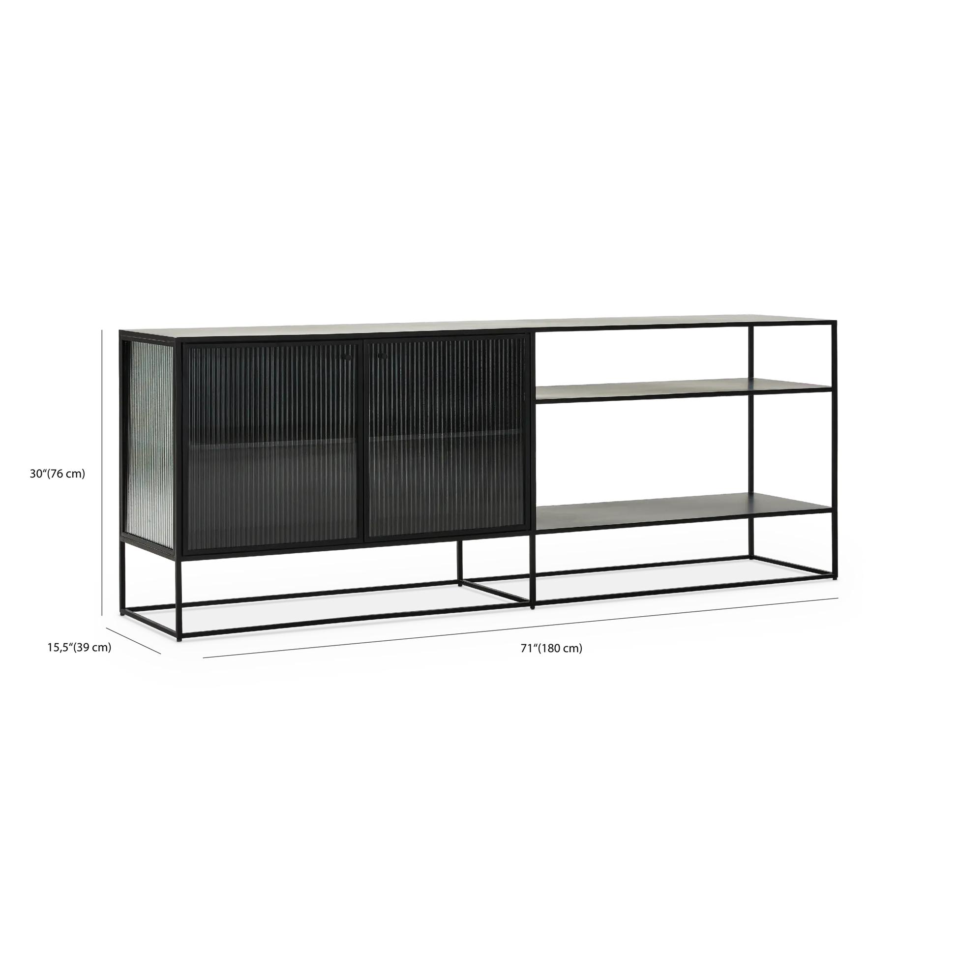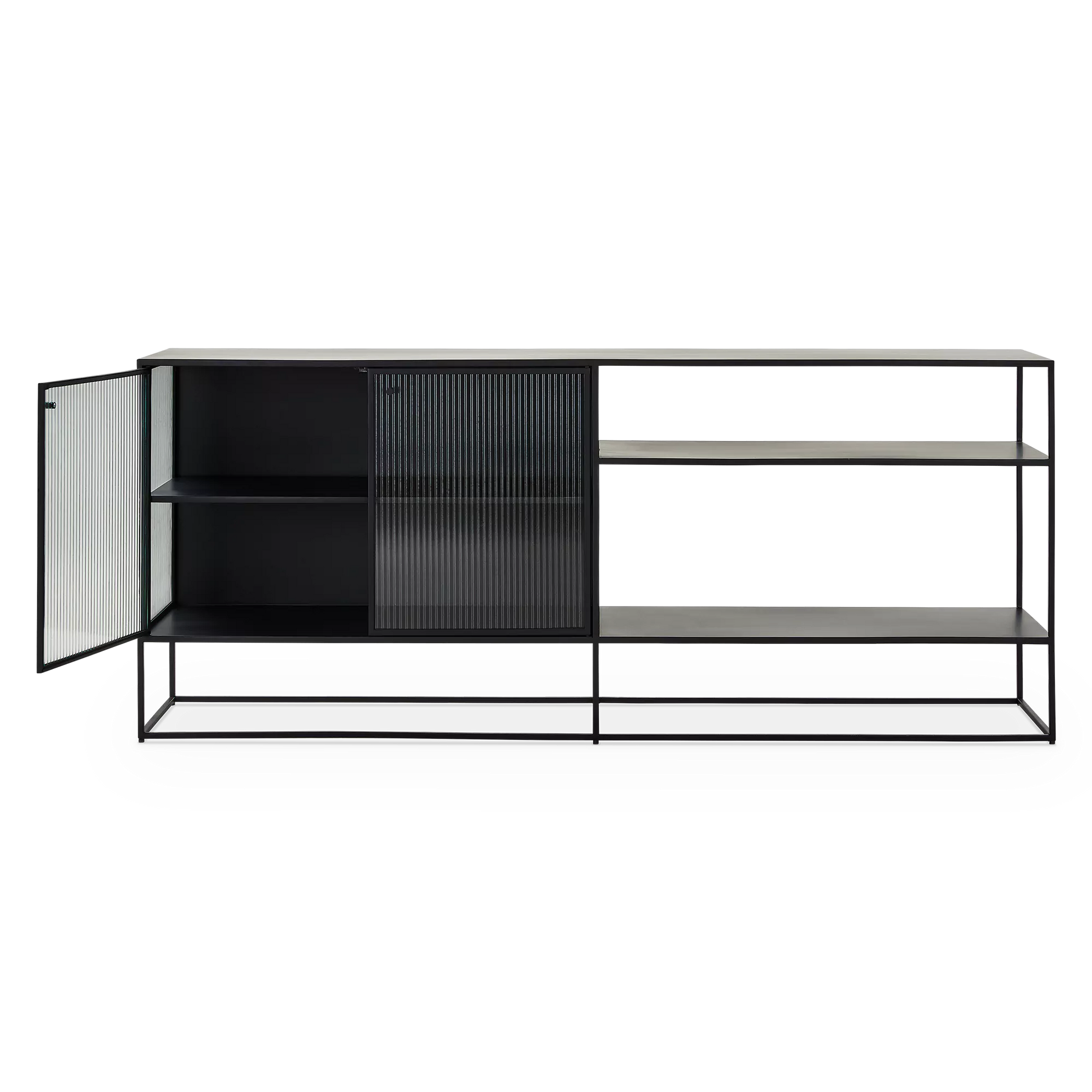 Spacious and elegant, the Parsons sideboard features a layered metal frame and fluted glass cabinet. Its airy look will add a minimalist touch to any space.