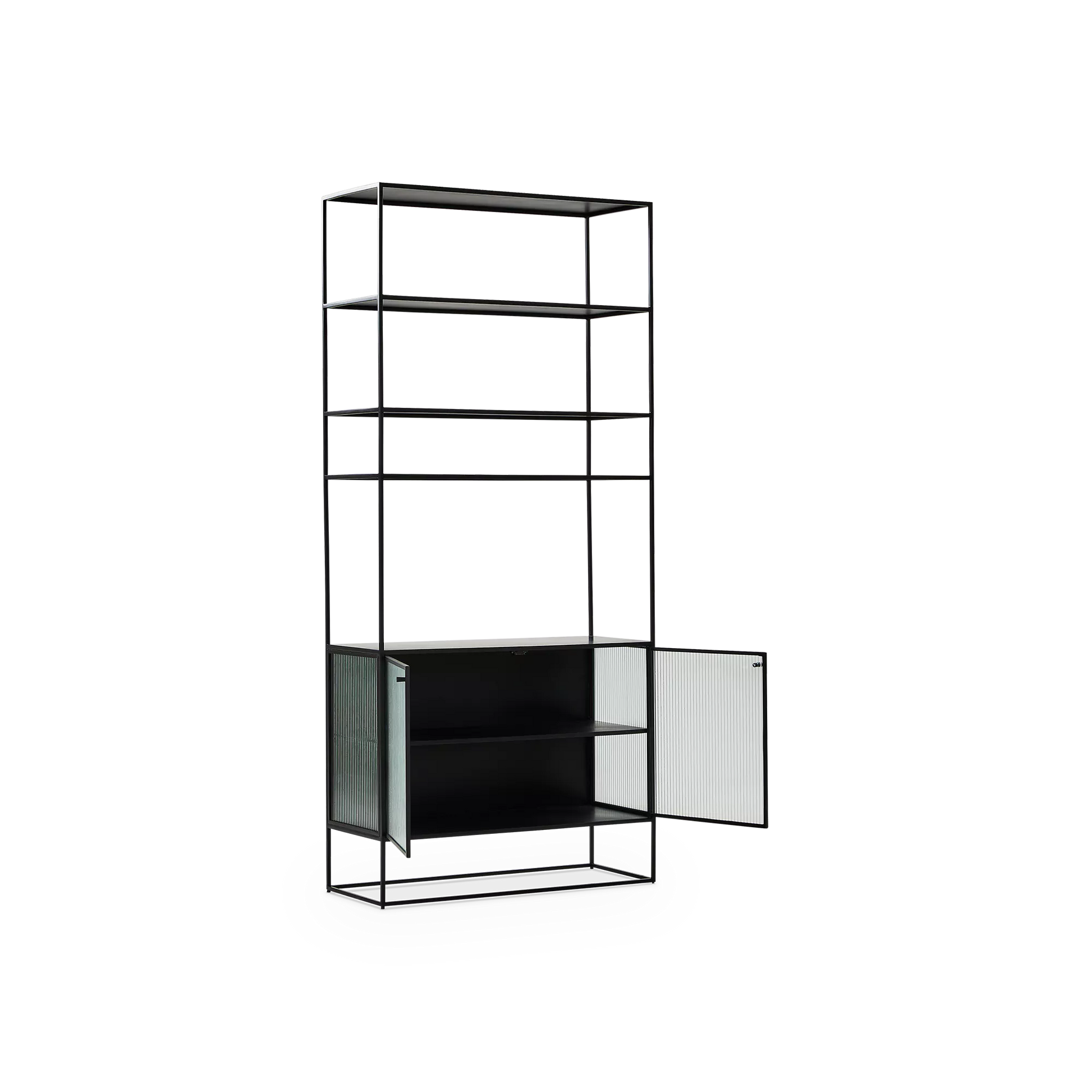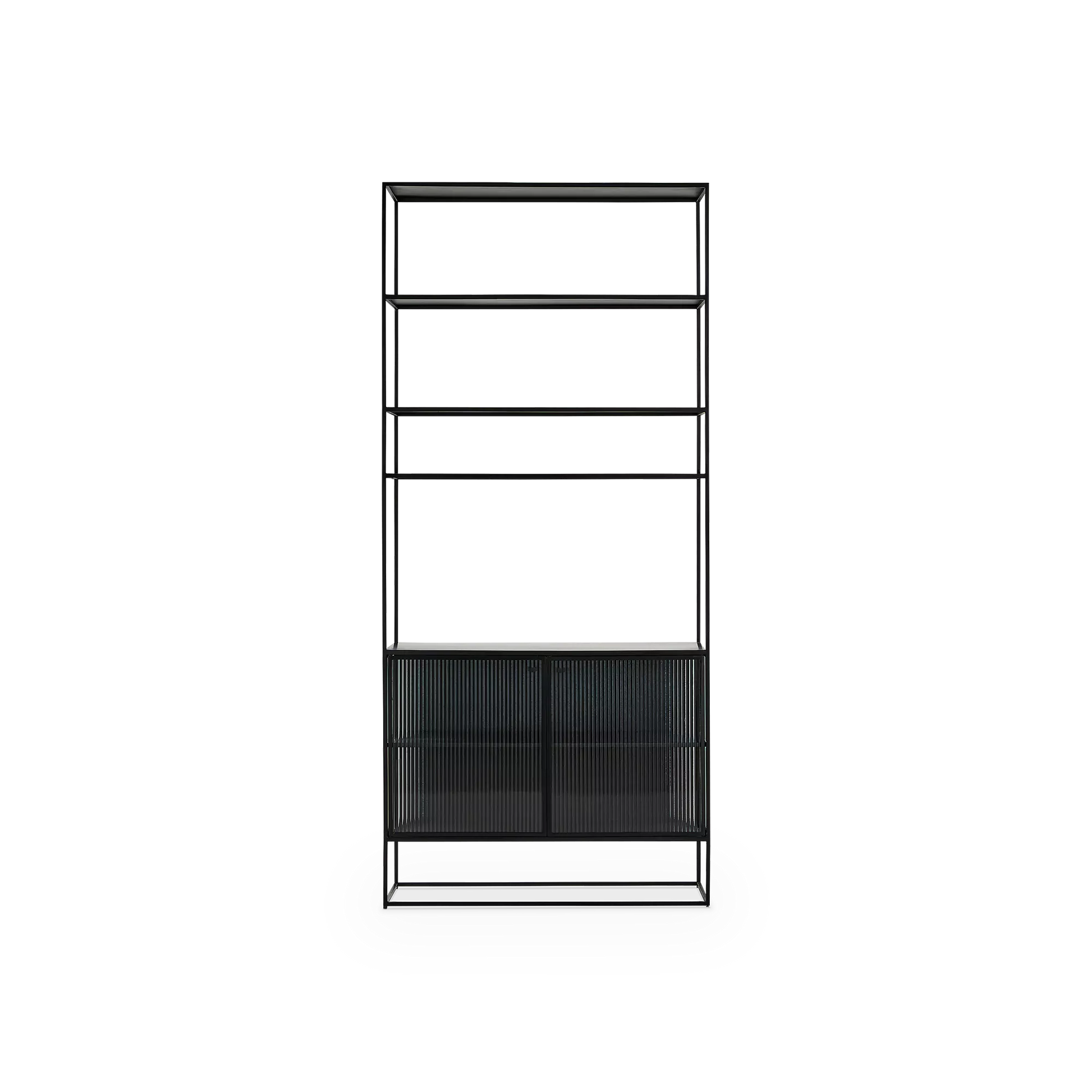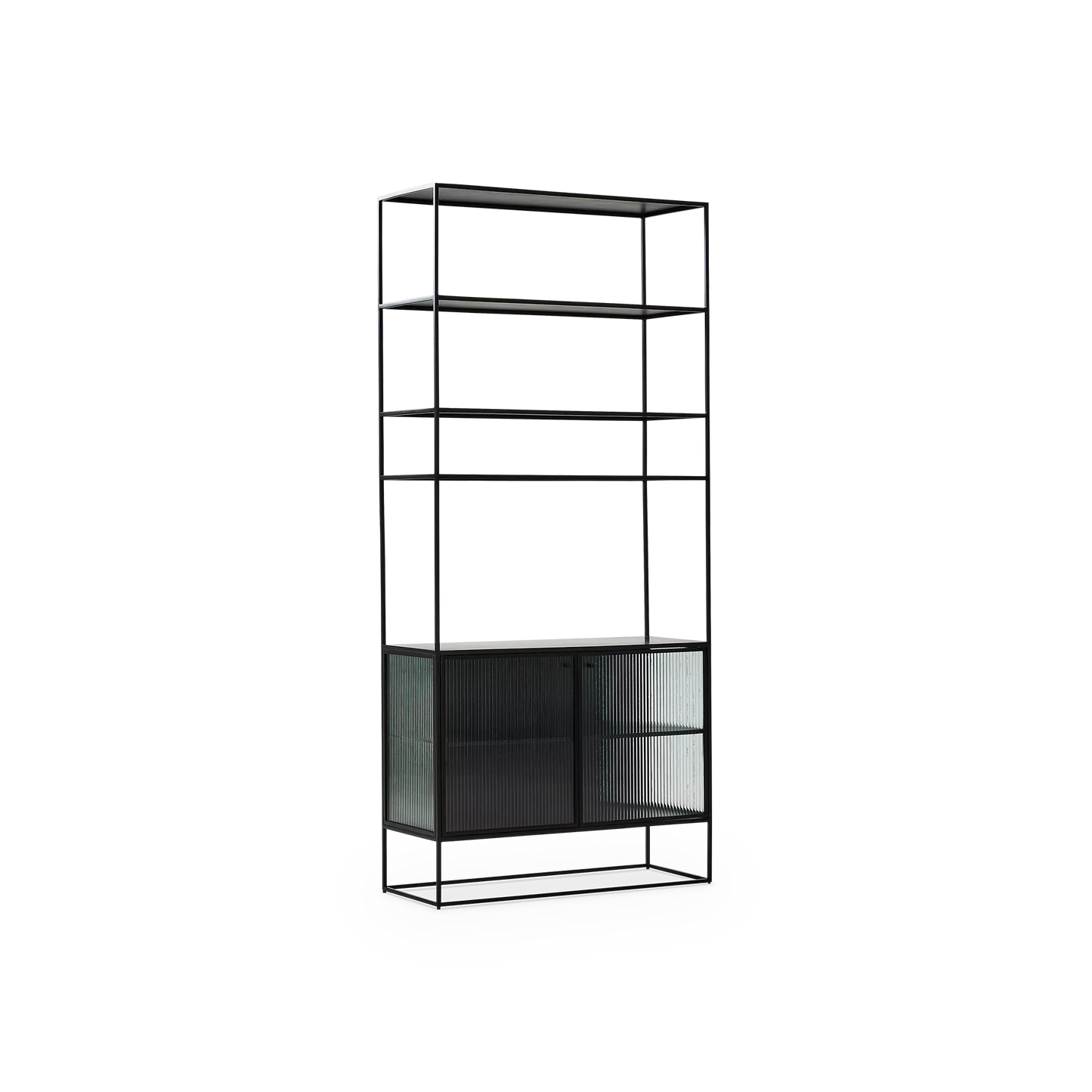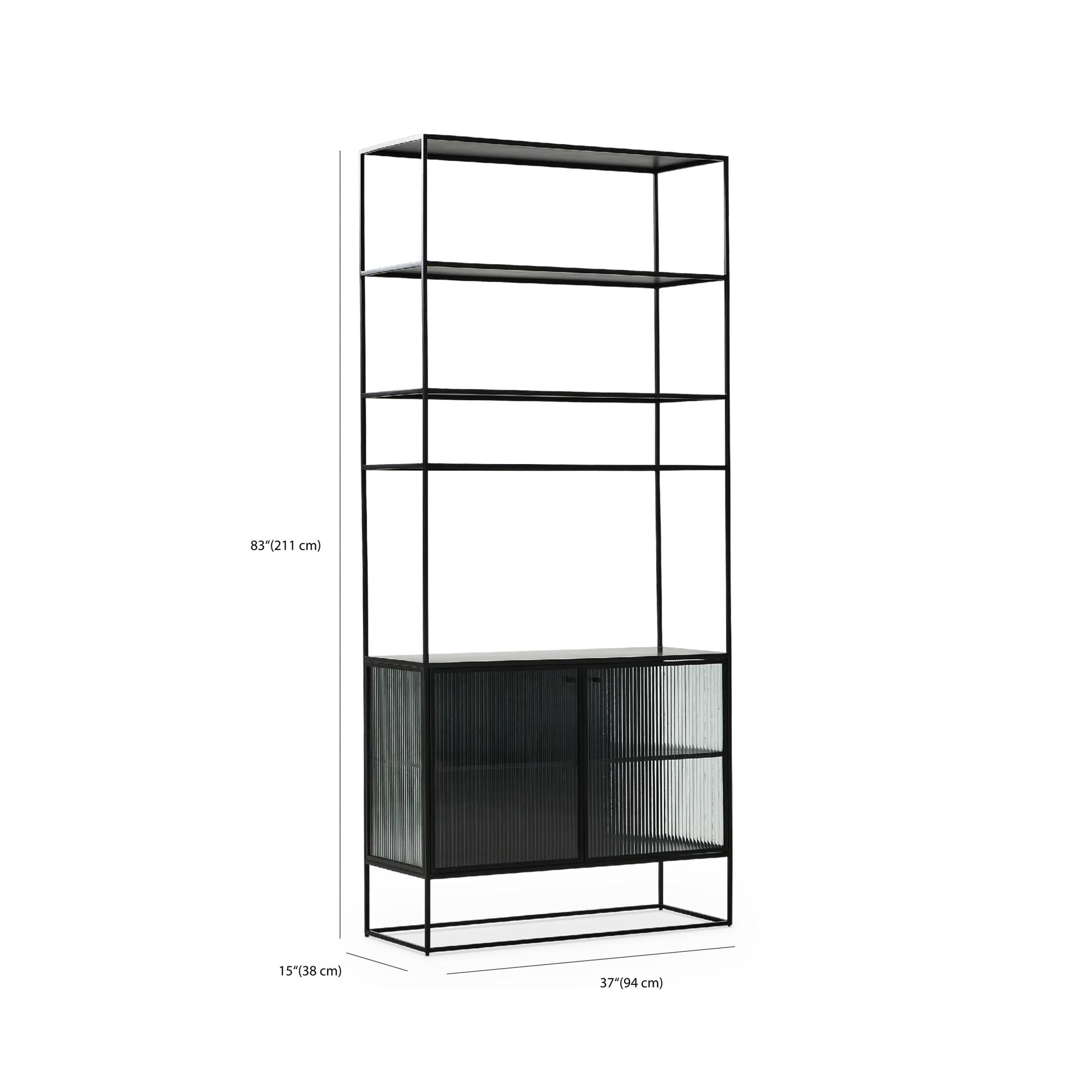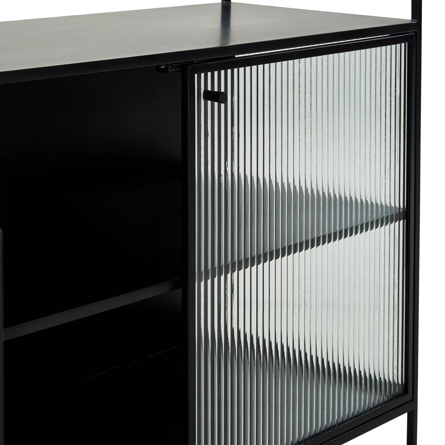 Spacious and elegant, the Parsons shelving unit features a layered metal frame and fluted glass cabinet. Its airy look will add a minimalist touch to any space.