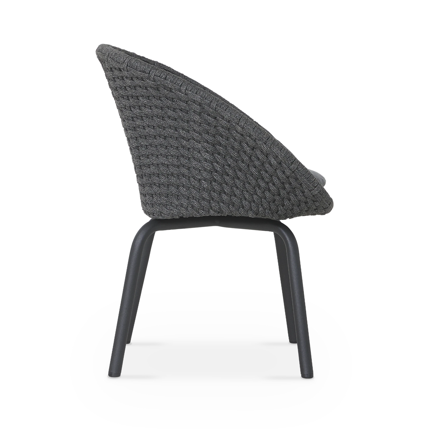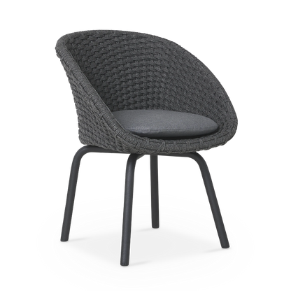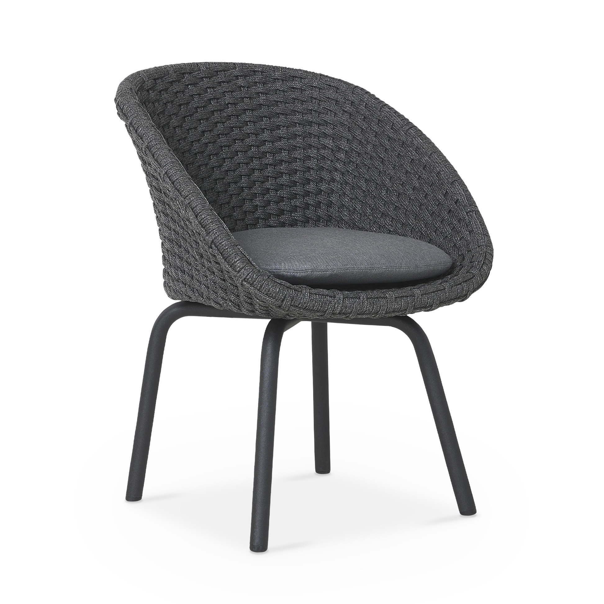 This wraparound seat perched on an aluminium tubular base is inspired by a peacock in full preen. Conceived by Danish design duo Johannes Foersom and Peter Hiort-Lorenzen, the Peacock Rope chair stands out with its polypropylene rope weave that will keep its lustre for years to come thanks to its UV resistance.