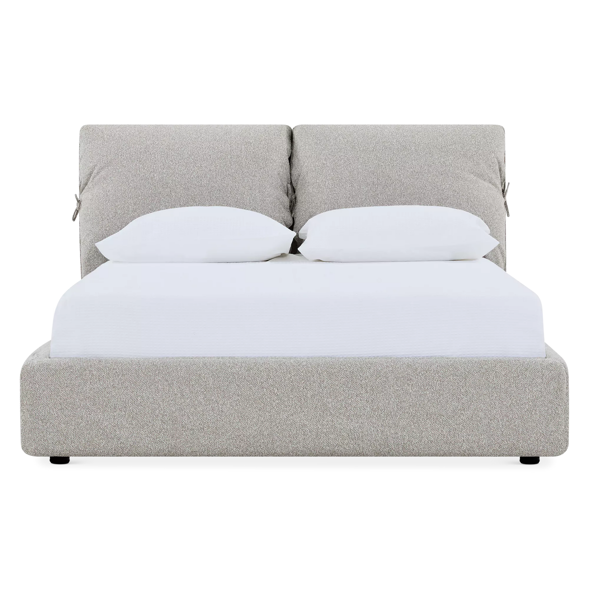 Turn your bedroom into a peaceful retreat with Plume. Upholstered in linen fabric and featuring a cushioned headboard, this bed is the epitome of comfort.