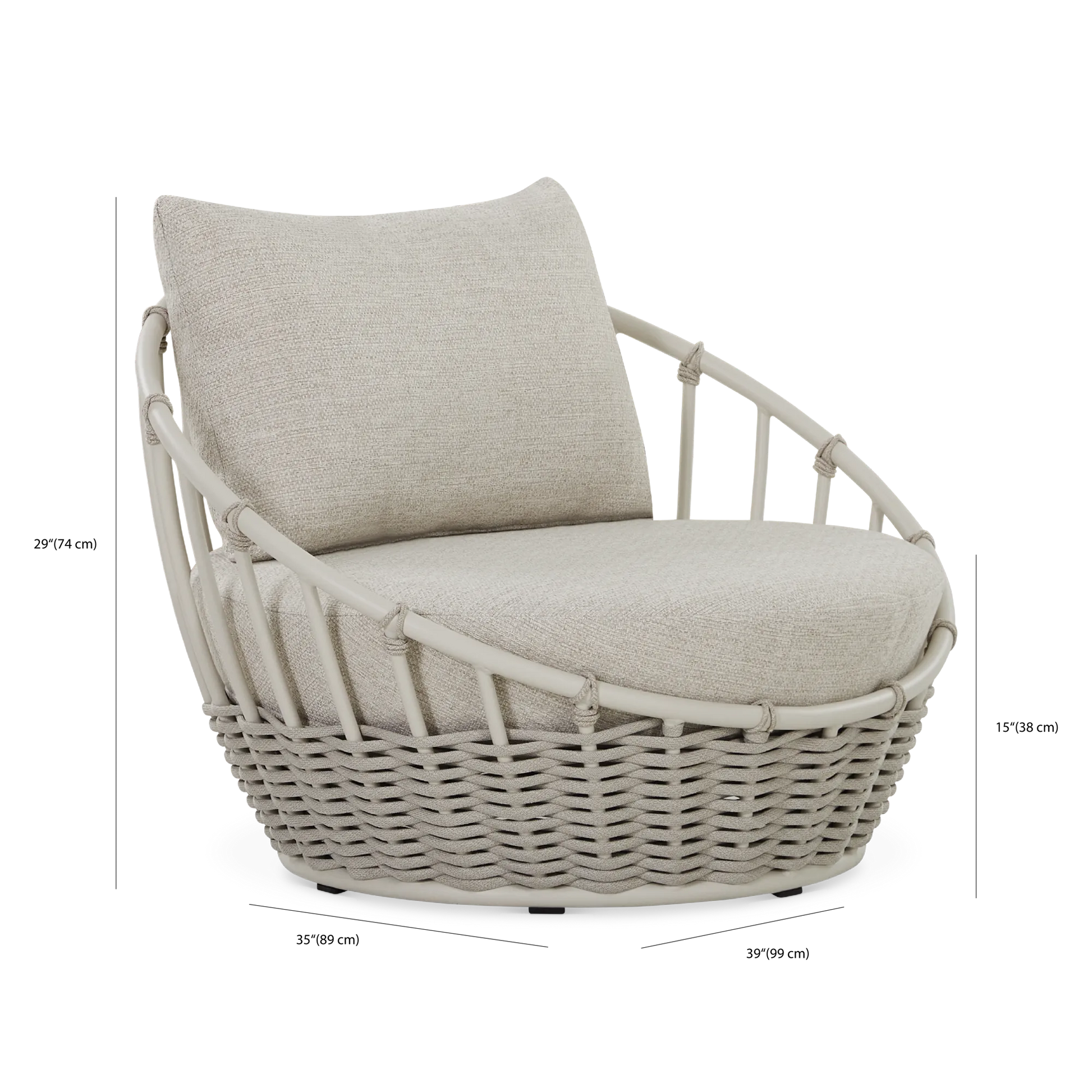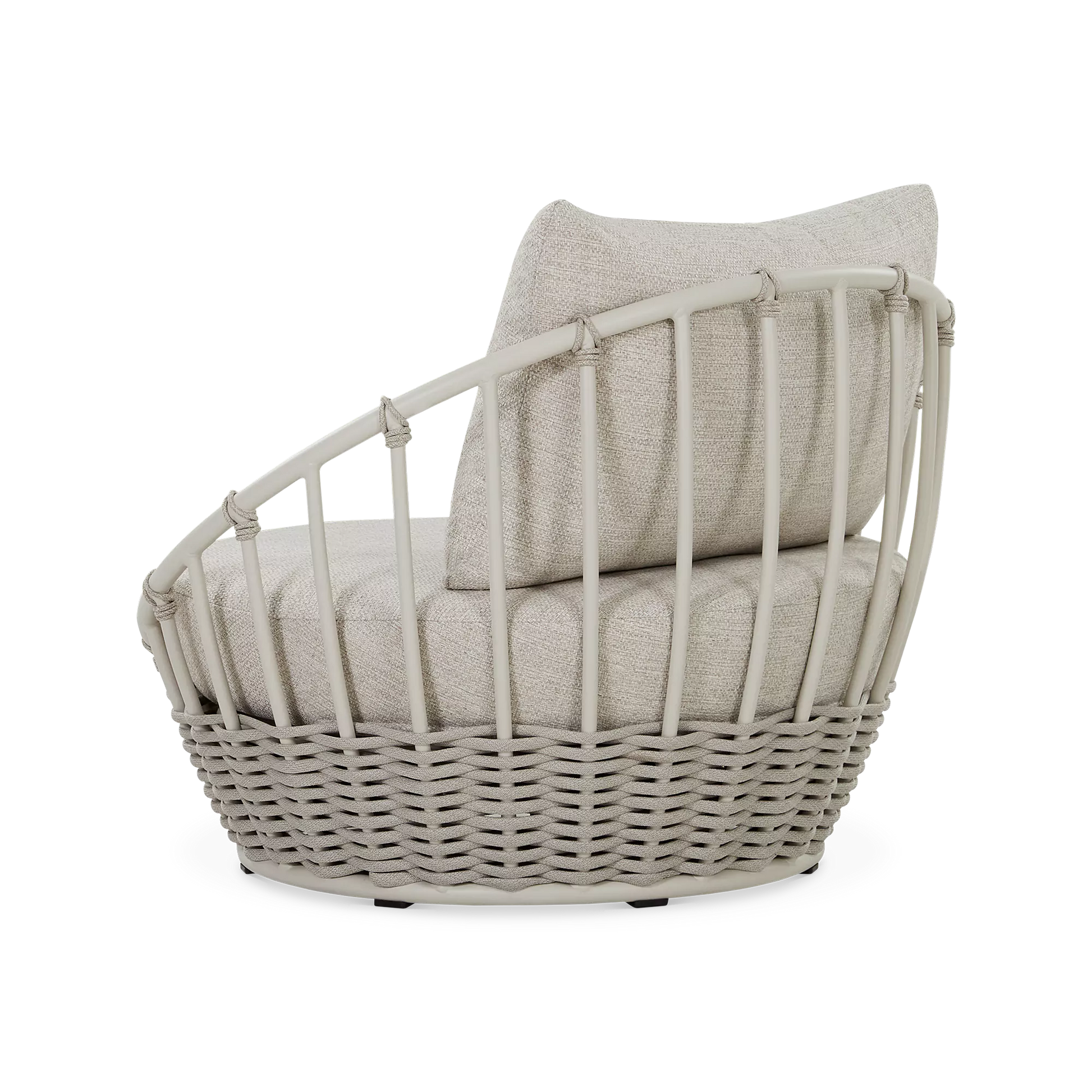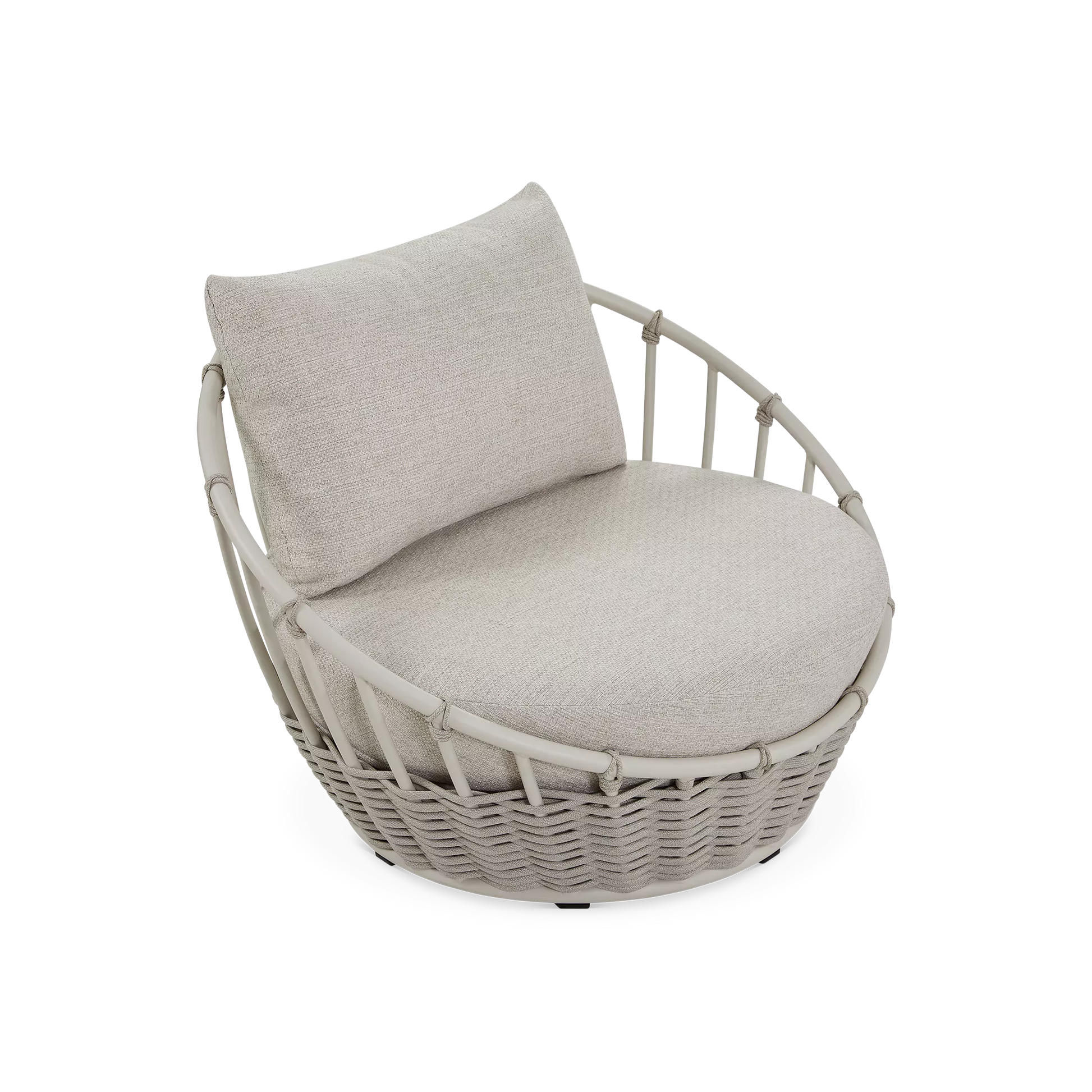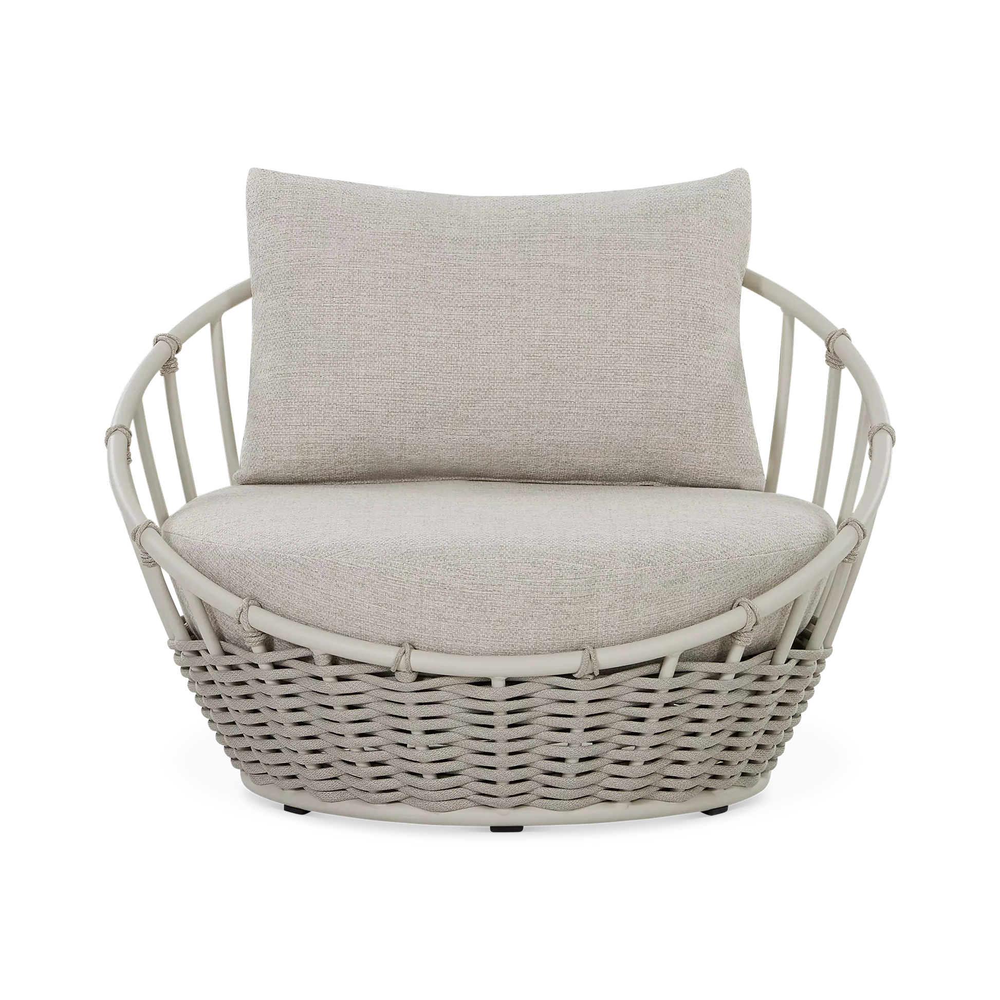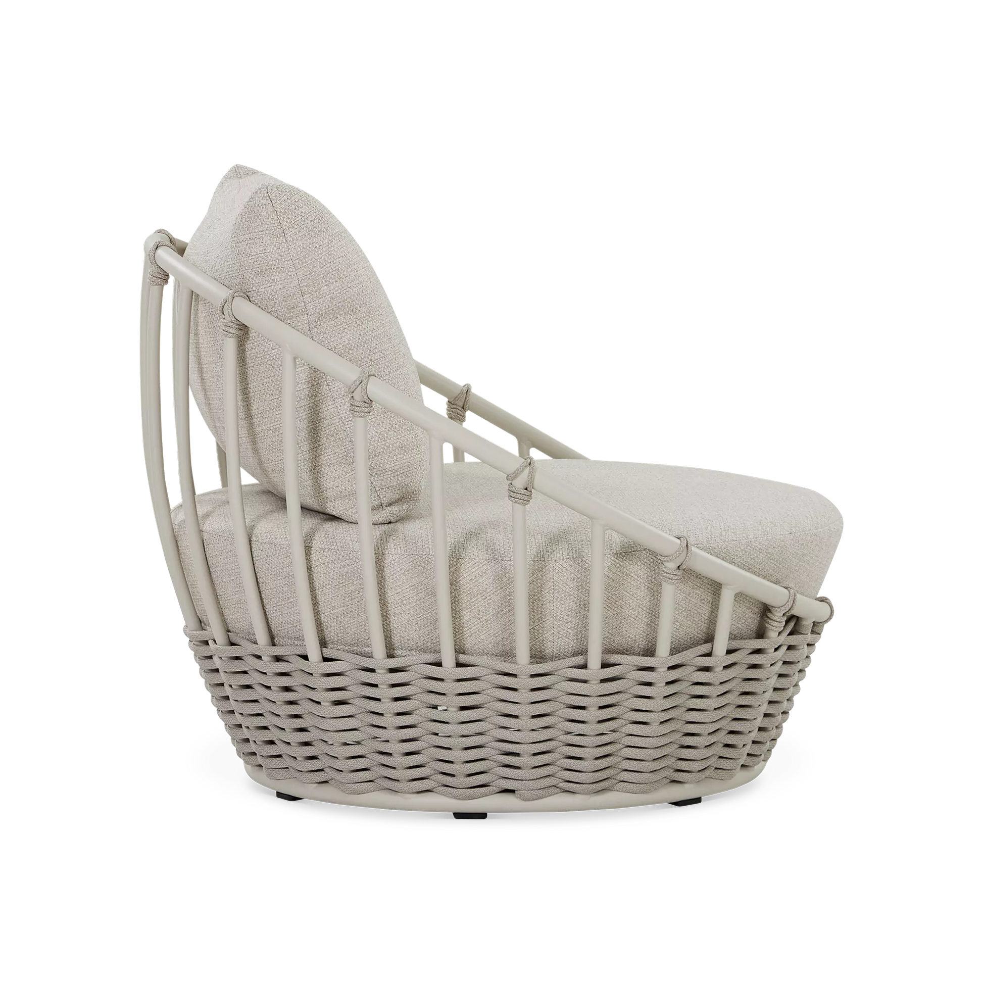 Sit back in style with the Pomelo lounge chair, a key, eye-catching piece. Its aluminium frame and woven rope, topped with cushions covered in durable Axroma fabric, evokes the enveloping shape of a nest. Once you’re seated, the hours will pass like minutes as you relax on your patio or lawn.