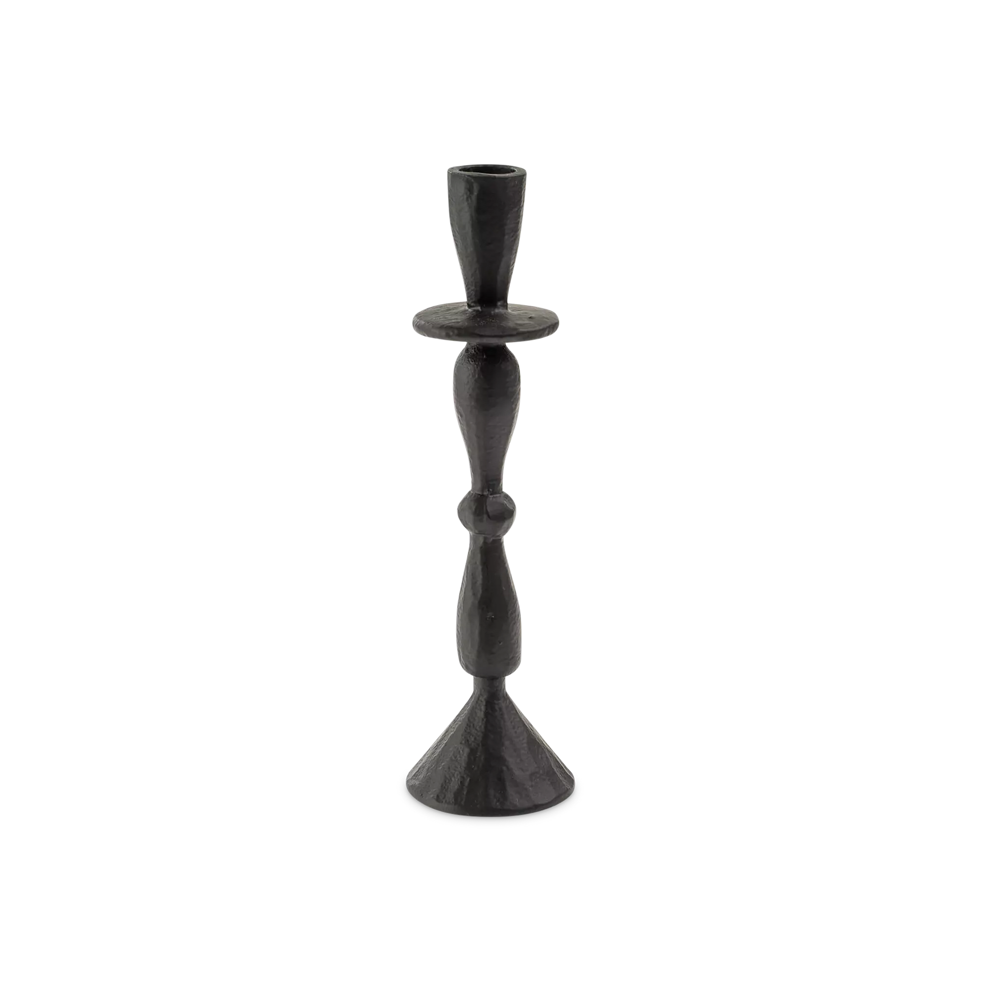 Elevate your table setting with the hand-forged aluminum Imani Candle Holder, crafted in Moradabad, India, renowned for metal craftsmanship. Its creamy powder coating blends contemporary style with traditional techniques, offering a stunning matte finish. Create ambiance with candles during dinner or style a vignette with varying sizes on a console.