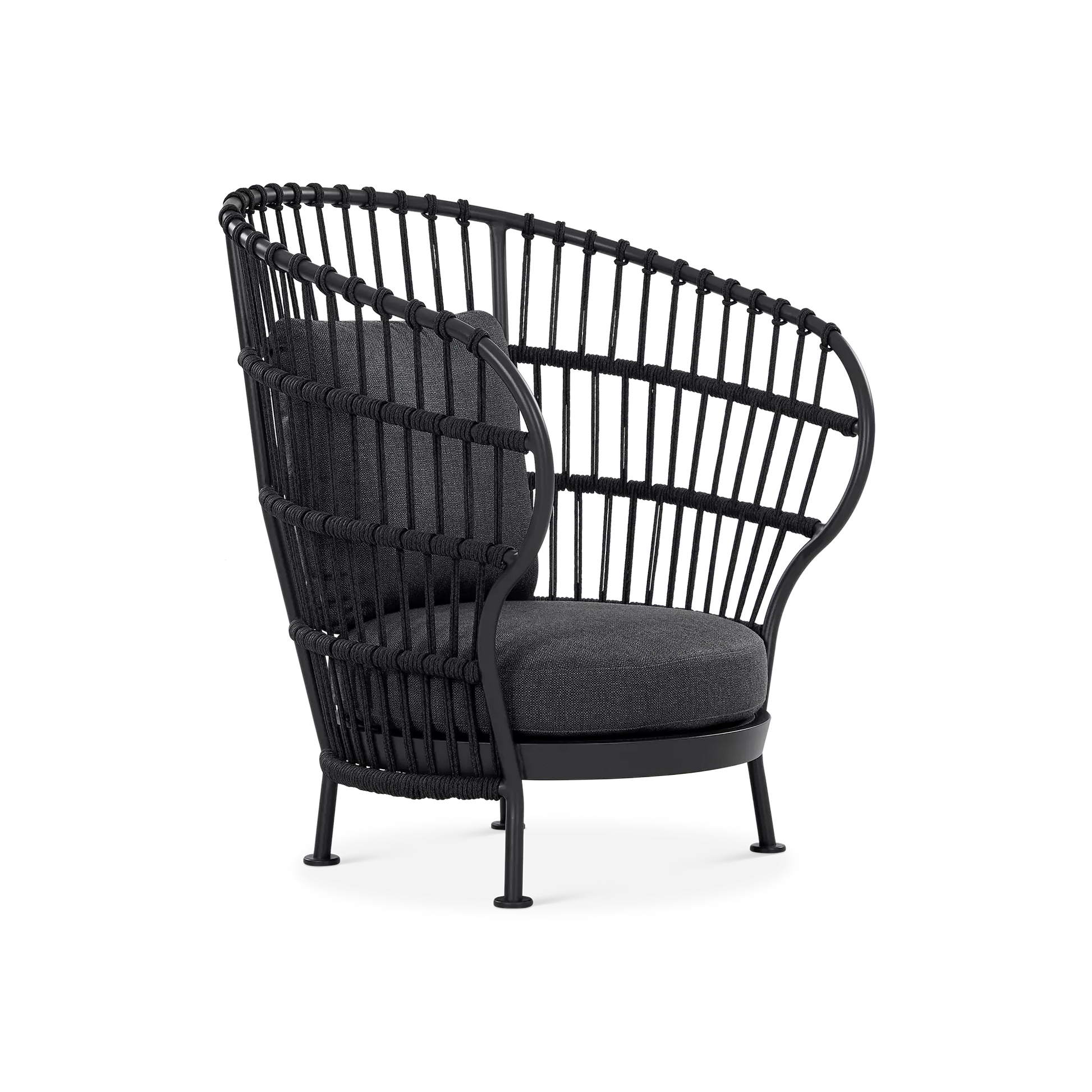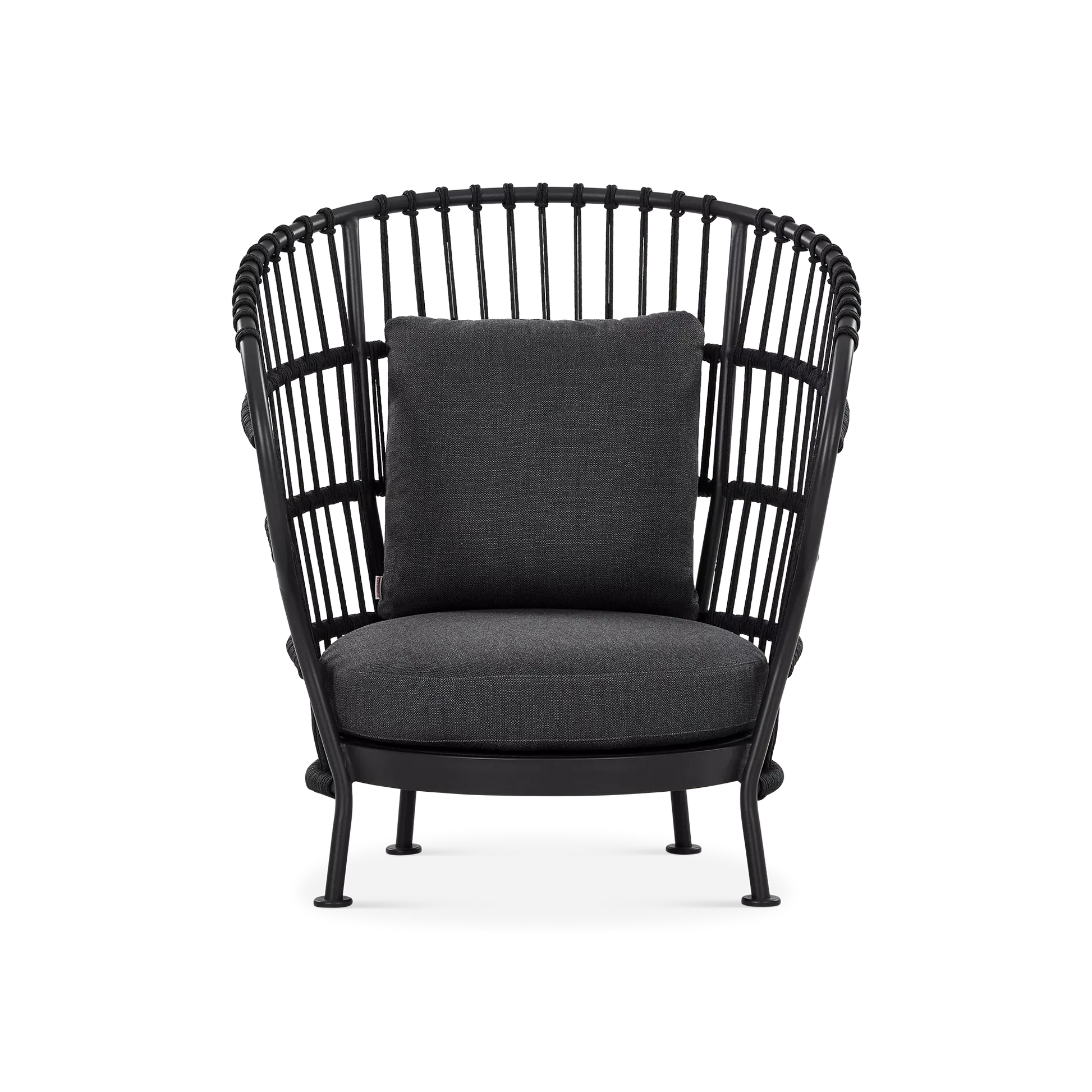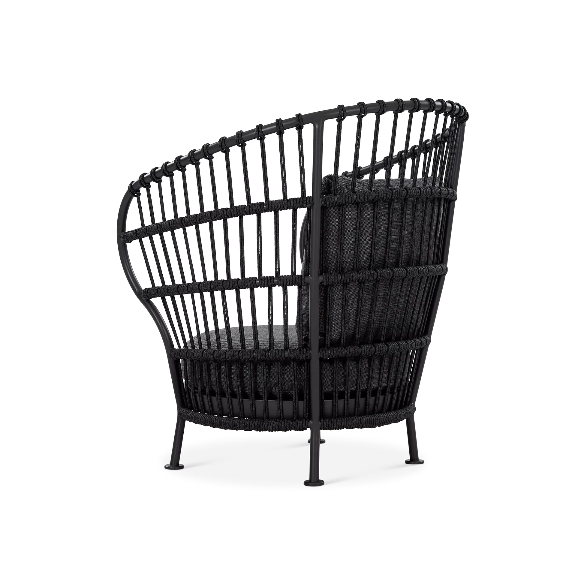 With its distinctively high back, the Pretzel armchair creates an intimate feeling with its relaxation-ready, enveloping design. Crafted from weather-resistant rope, woven in a way that’s reminiscent of rattan’s exotic look, it’s also equipped with quick-drying cushions and an aluminium frame for a chair that works equally well inside and out.