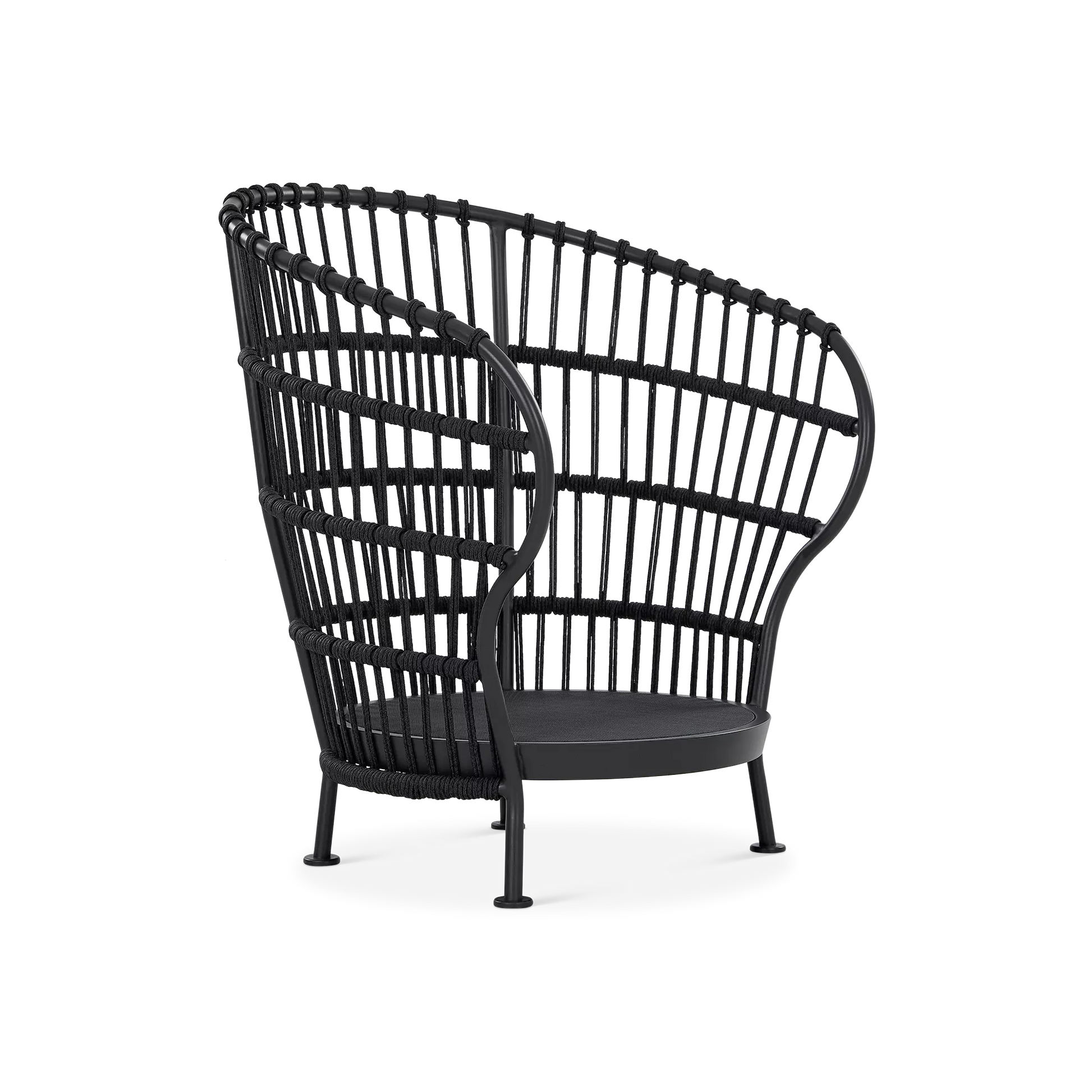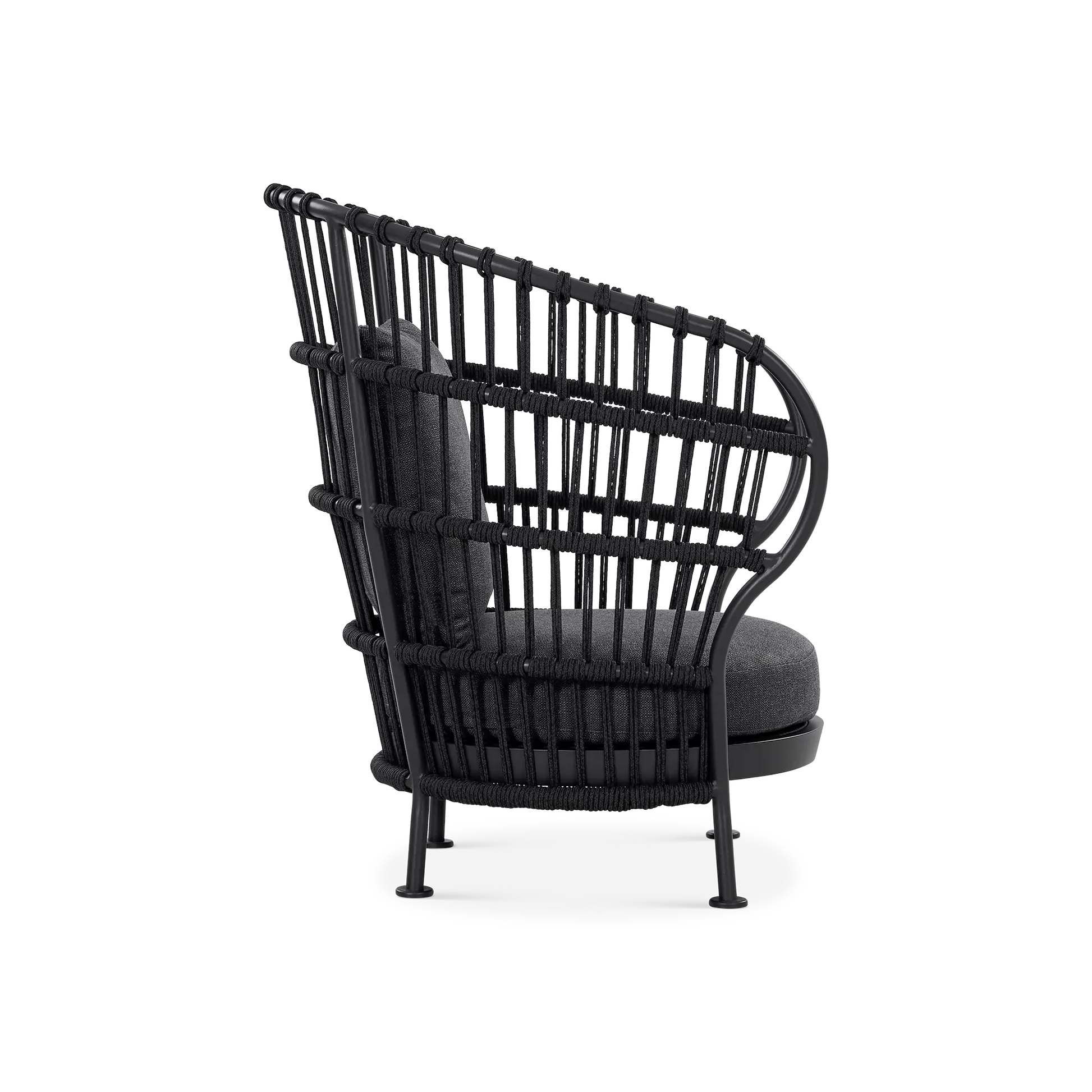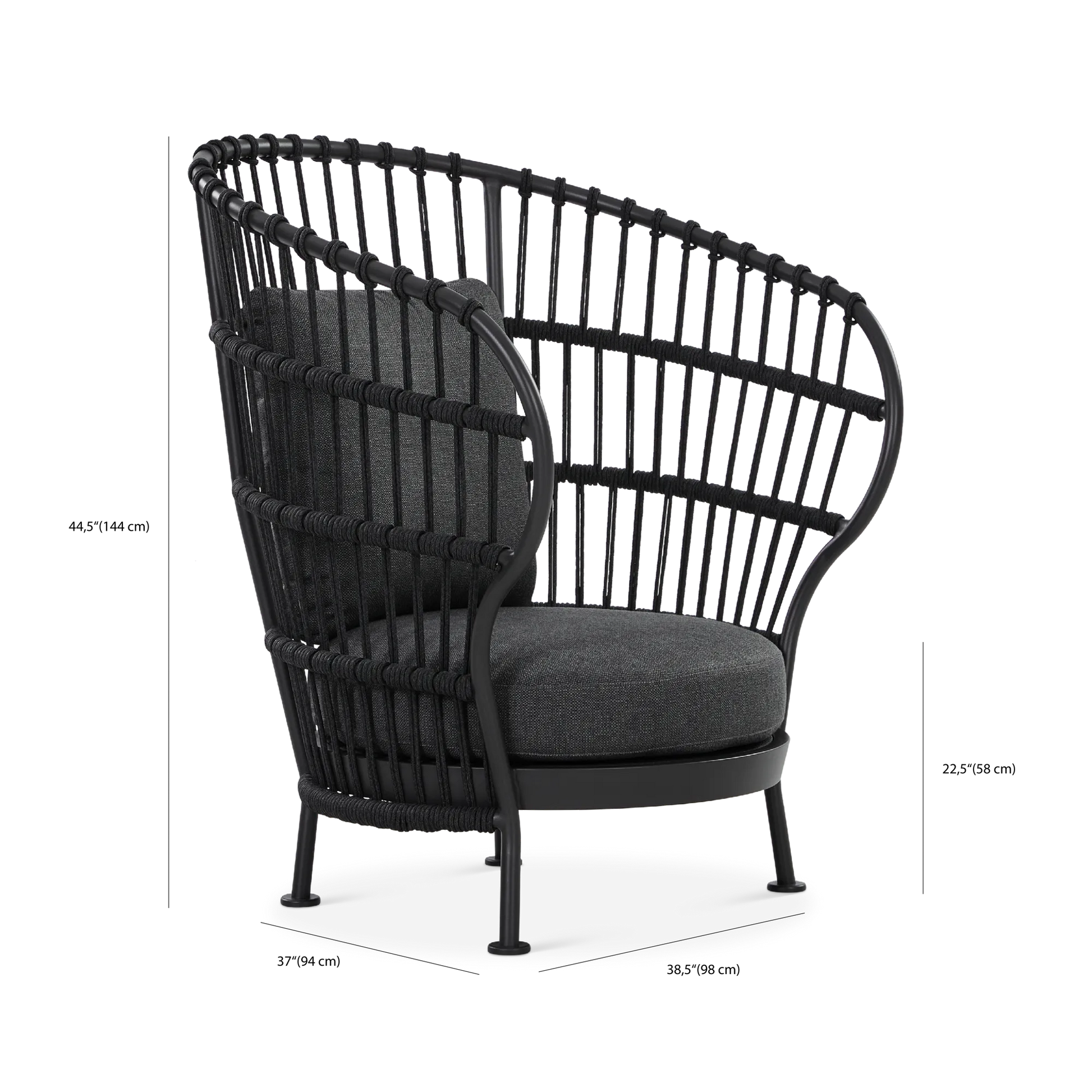 With its distinctively high back, the Pretzel armchair creates an intimate feeling with its relaxation-ready, enveloping design. Crafted from weather-resistant rope, woven in a way that’s reminiscent of rattan’s exotic look, it’s also equipped with quick-drying cushions and an aluminium frame for a chair that works equally well inside and out.