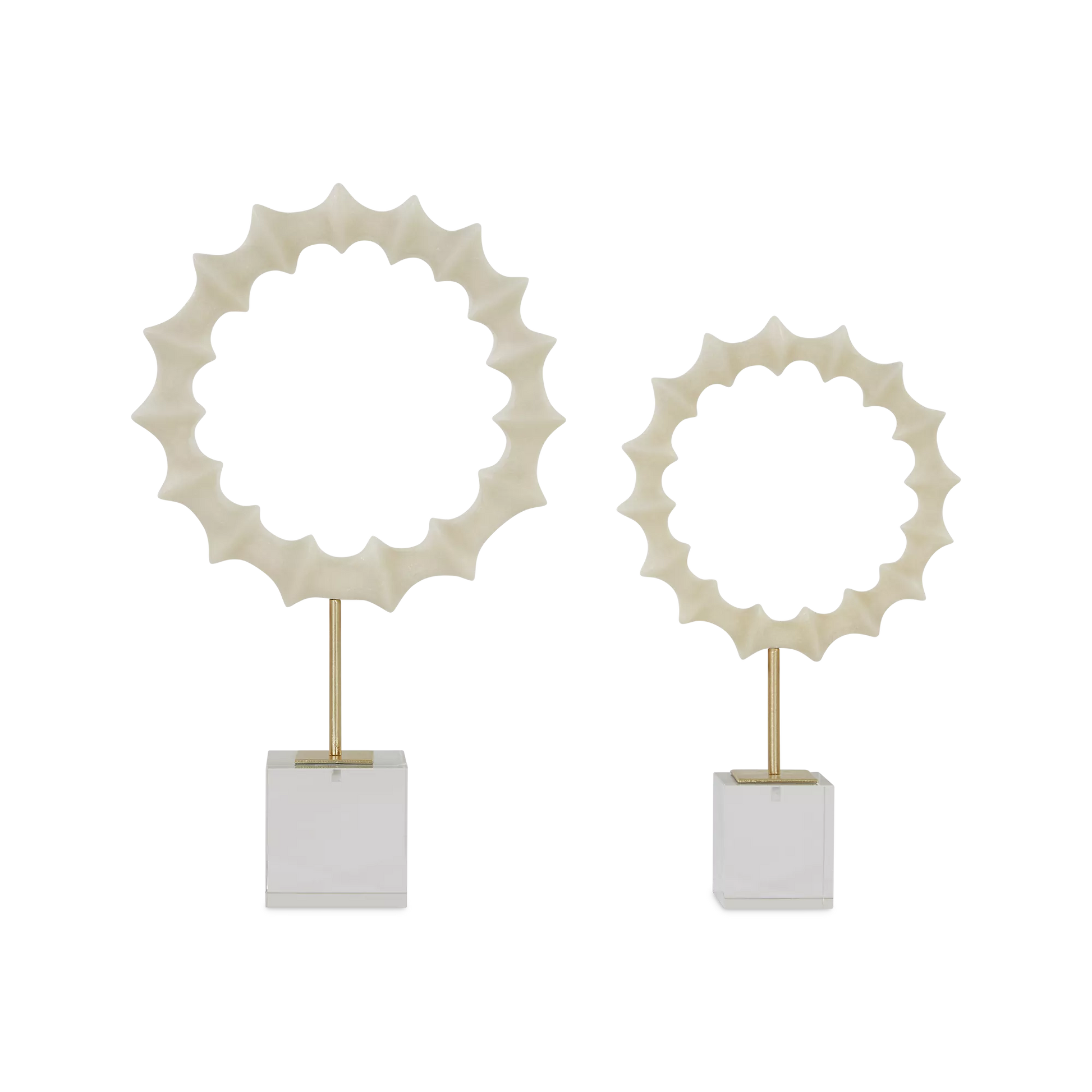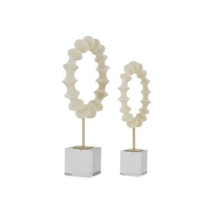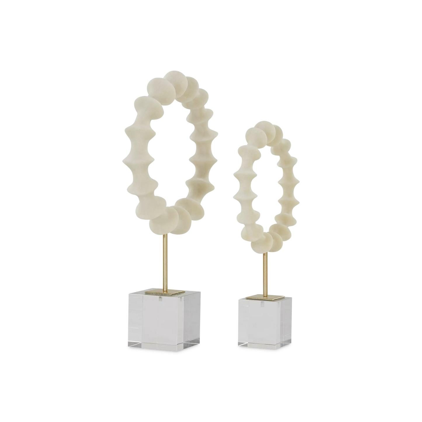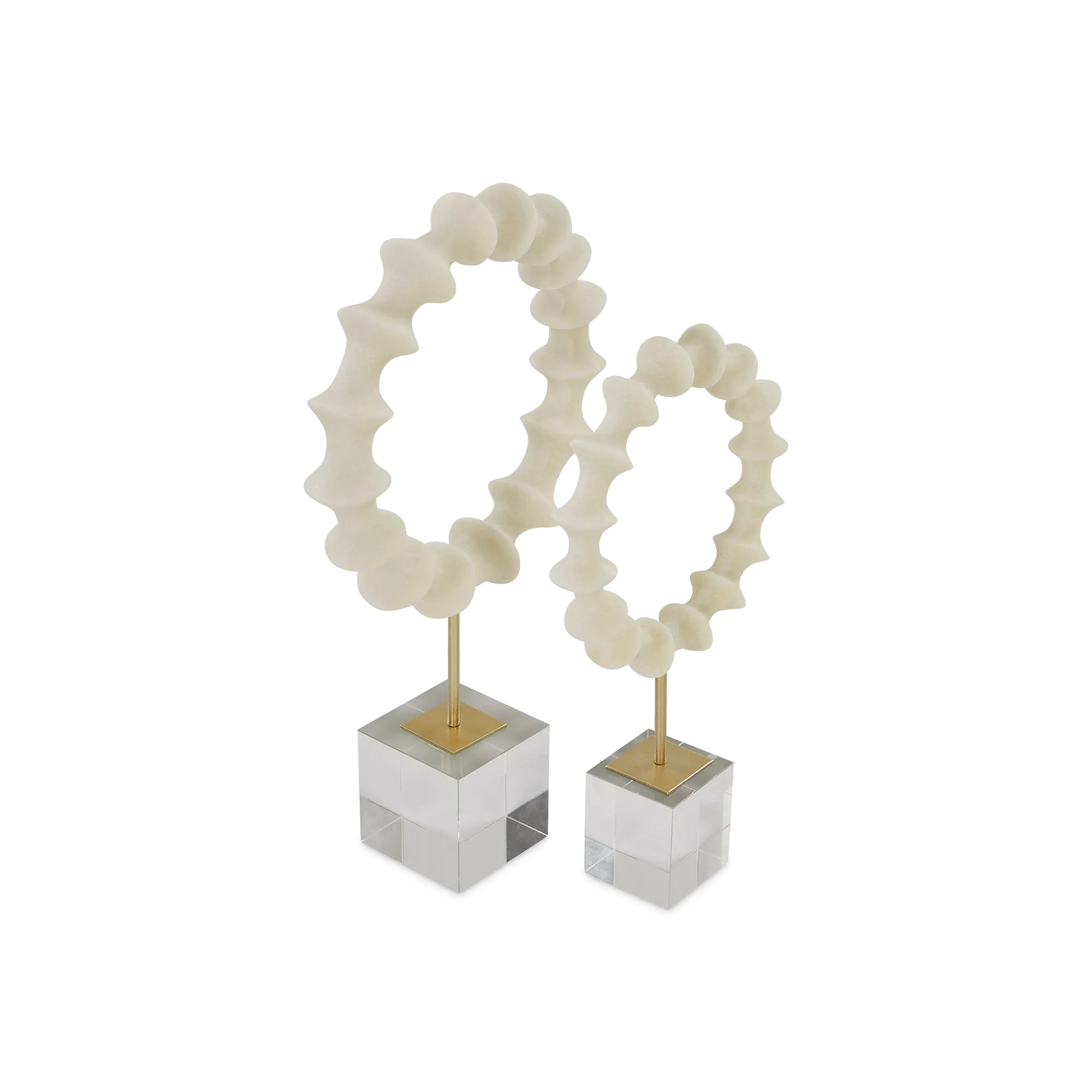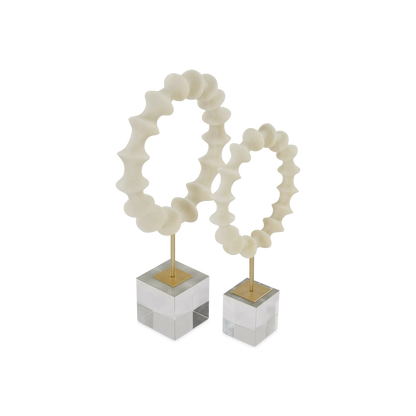 With their scalloped curves and acrylic bases, this pair of white statuettes catches the eye without overwhelming their surrounding space. The perfect addition to any console or shelf.