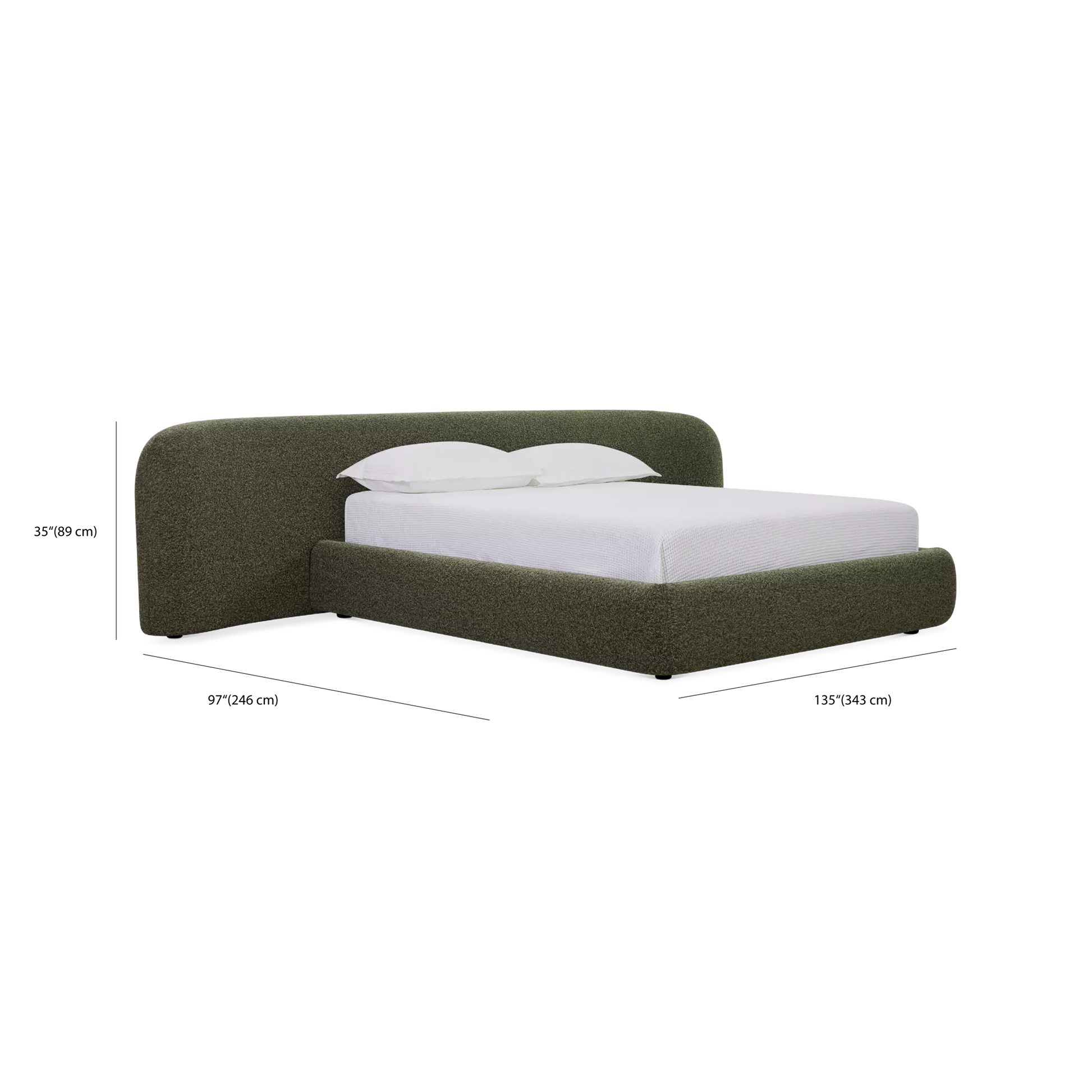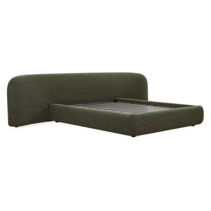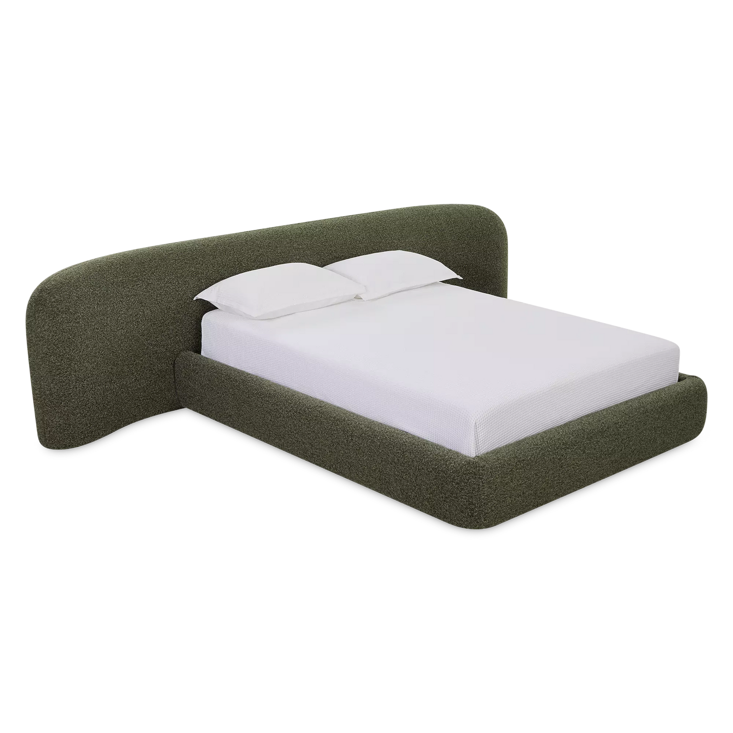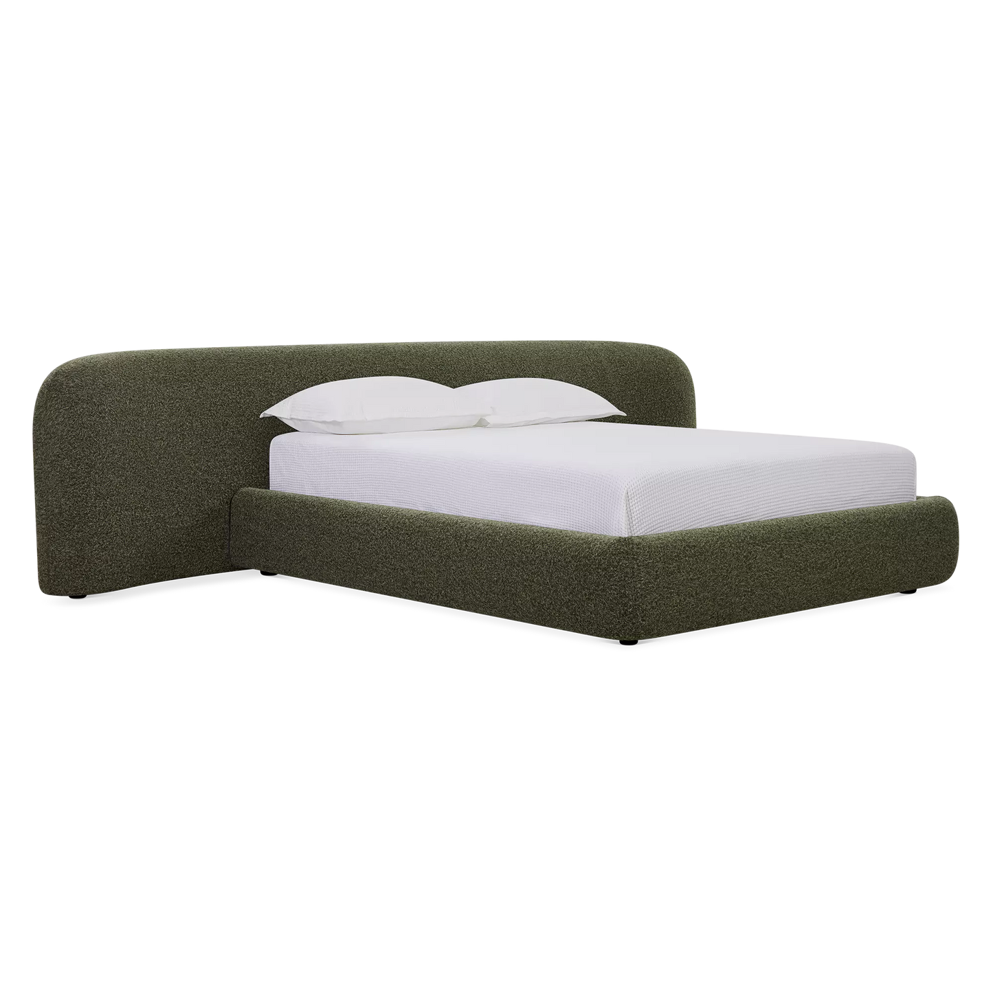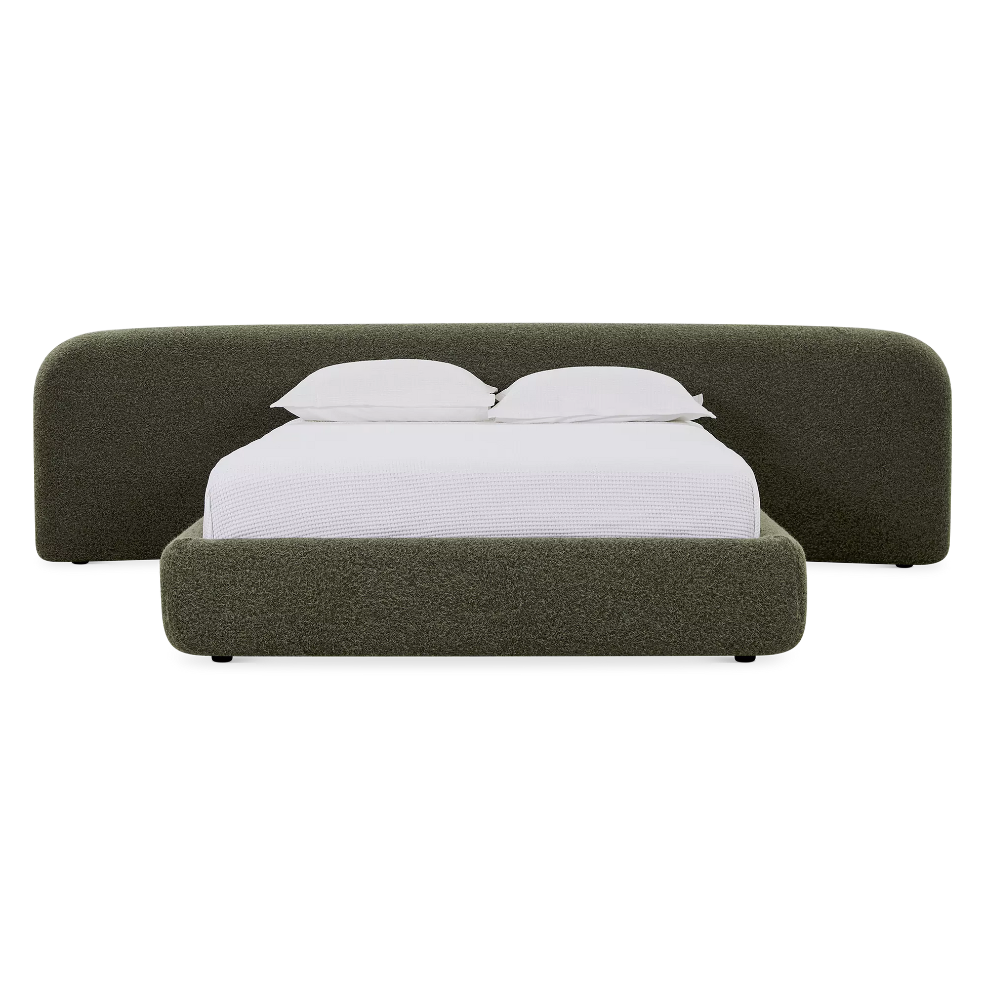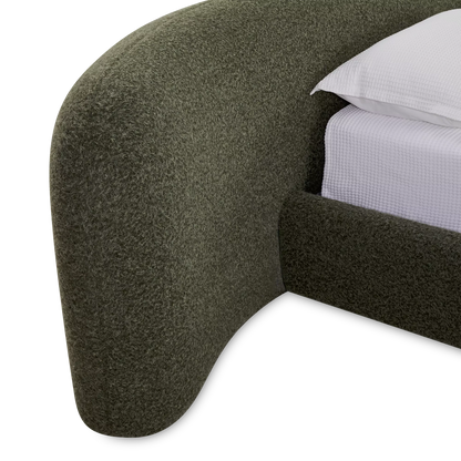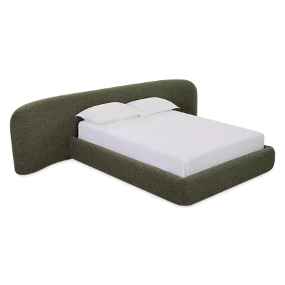 The Ranit bed balances bold presence with soft, sculptural lines. Fully upholstered in bouclé fabric, it features an expansive headboard with gently curved corners that’s at once striking and serene. Its padded, upholstered base adds visual continuity and a tailored finish, while its generous proportions and rounded edges offer an inviting, quietly luxurious feel. A true statement piece that will turn any bedroom into a restful retreat.