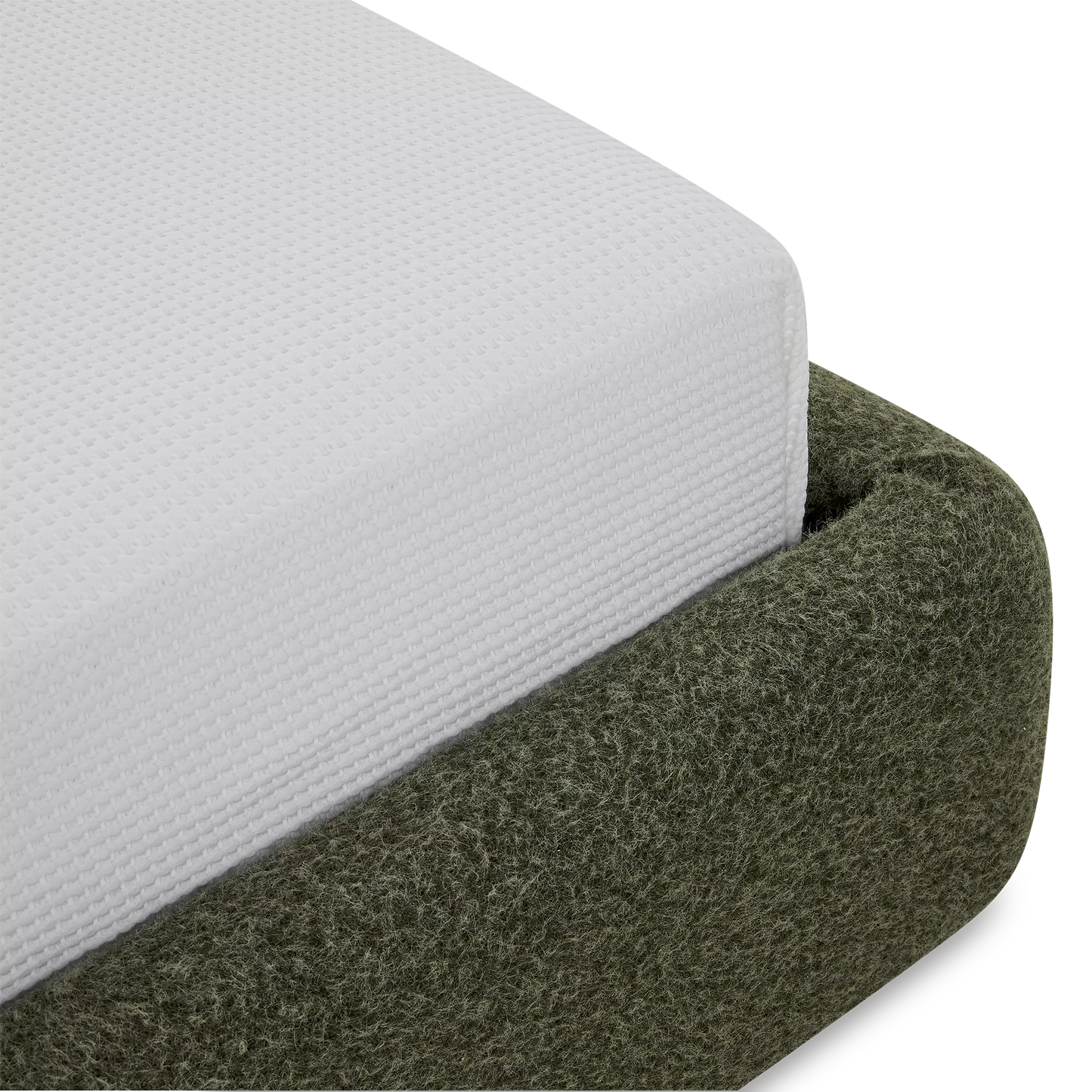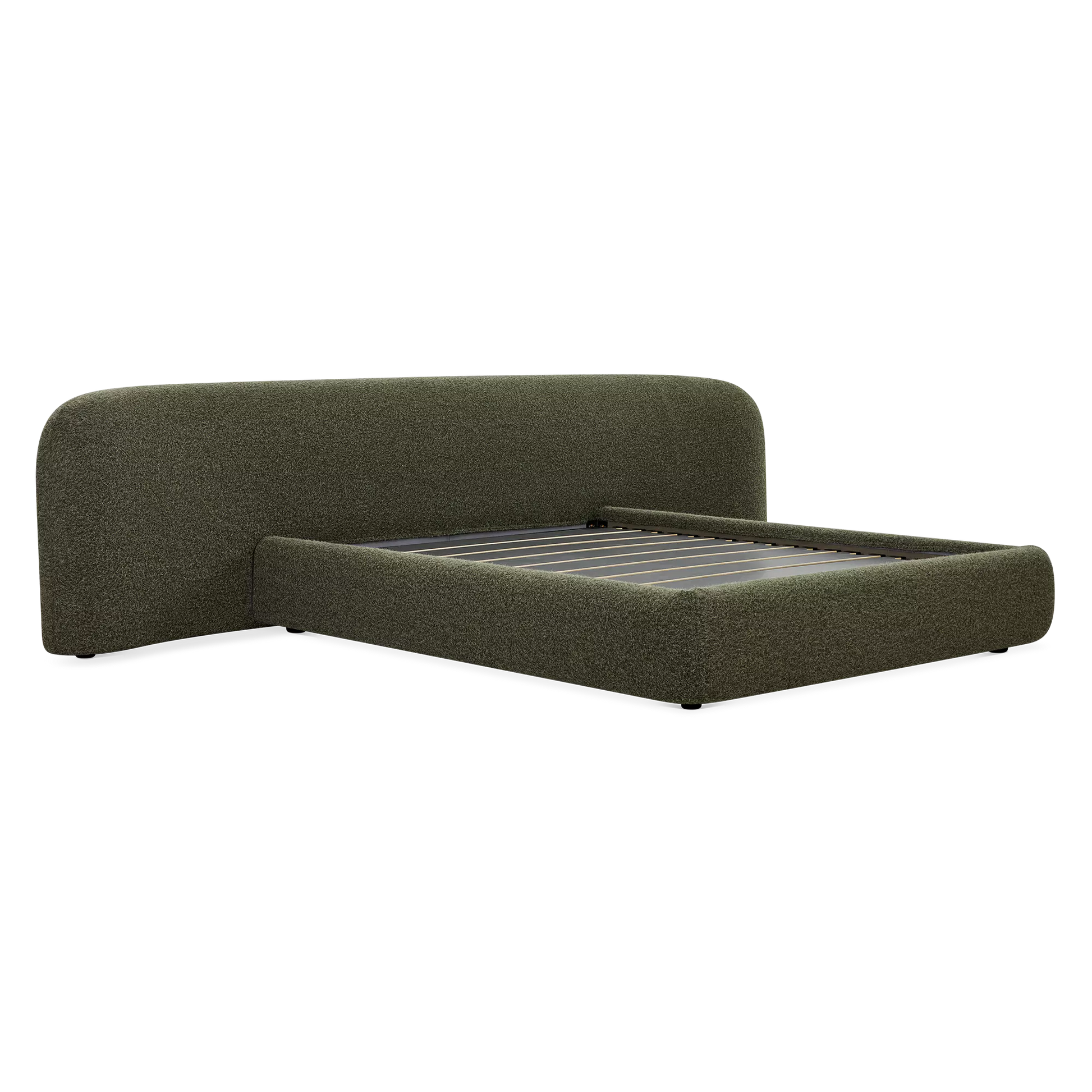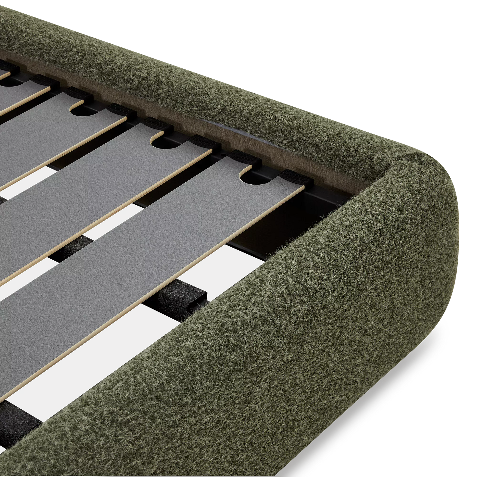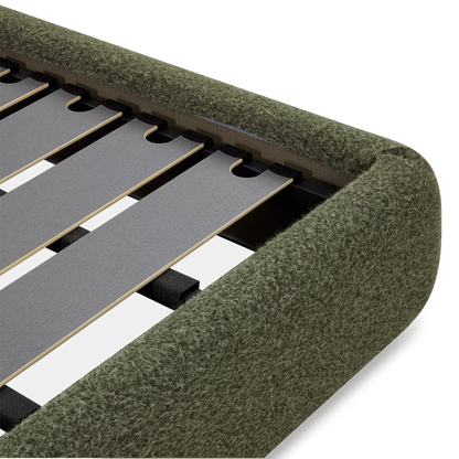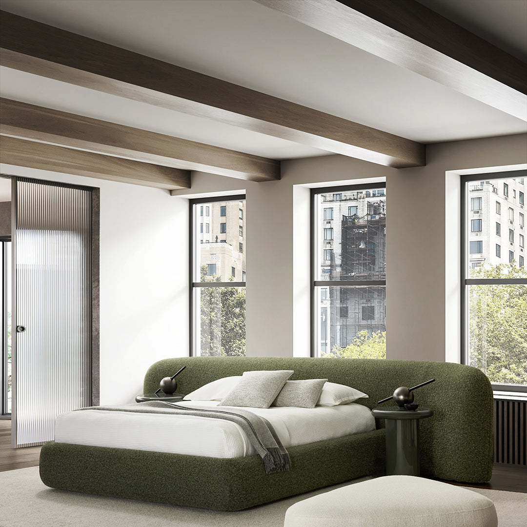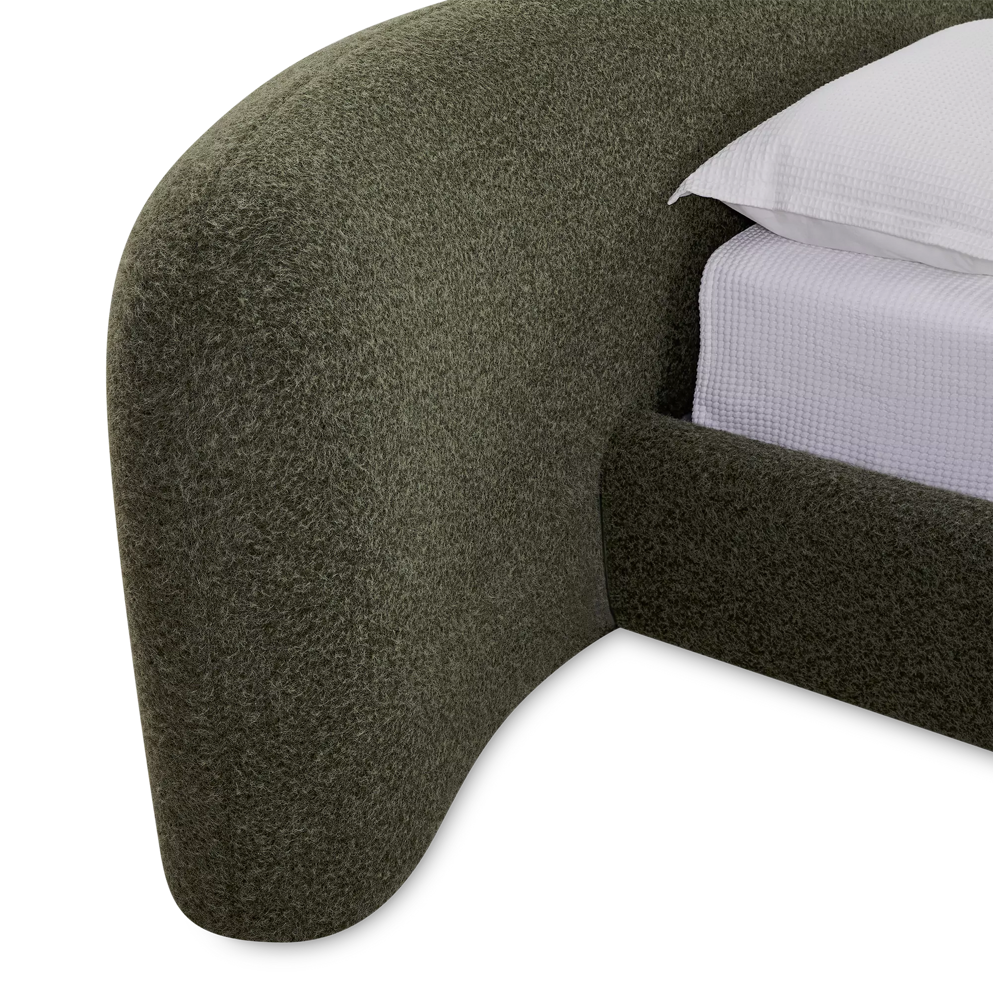 The Ranit bed balances bold presence with soft, sculptural lines. Fully upholstered in bouclé fabric, it features an expansive headboard with gently curved corners that’s at once striking and serene. Its padded, upholstered base adds visual continuity and a tailored finish, while its generous proportions and rounded edges offer an inviting, quietly luxurious feel. A true statement piece that will turn any bedroom into a restful retreat.