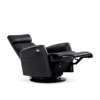 Power recliner, swivel base, adjustable headrest, glider locker