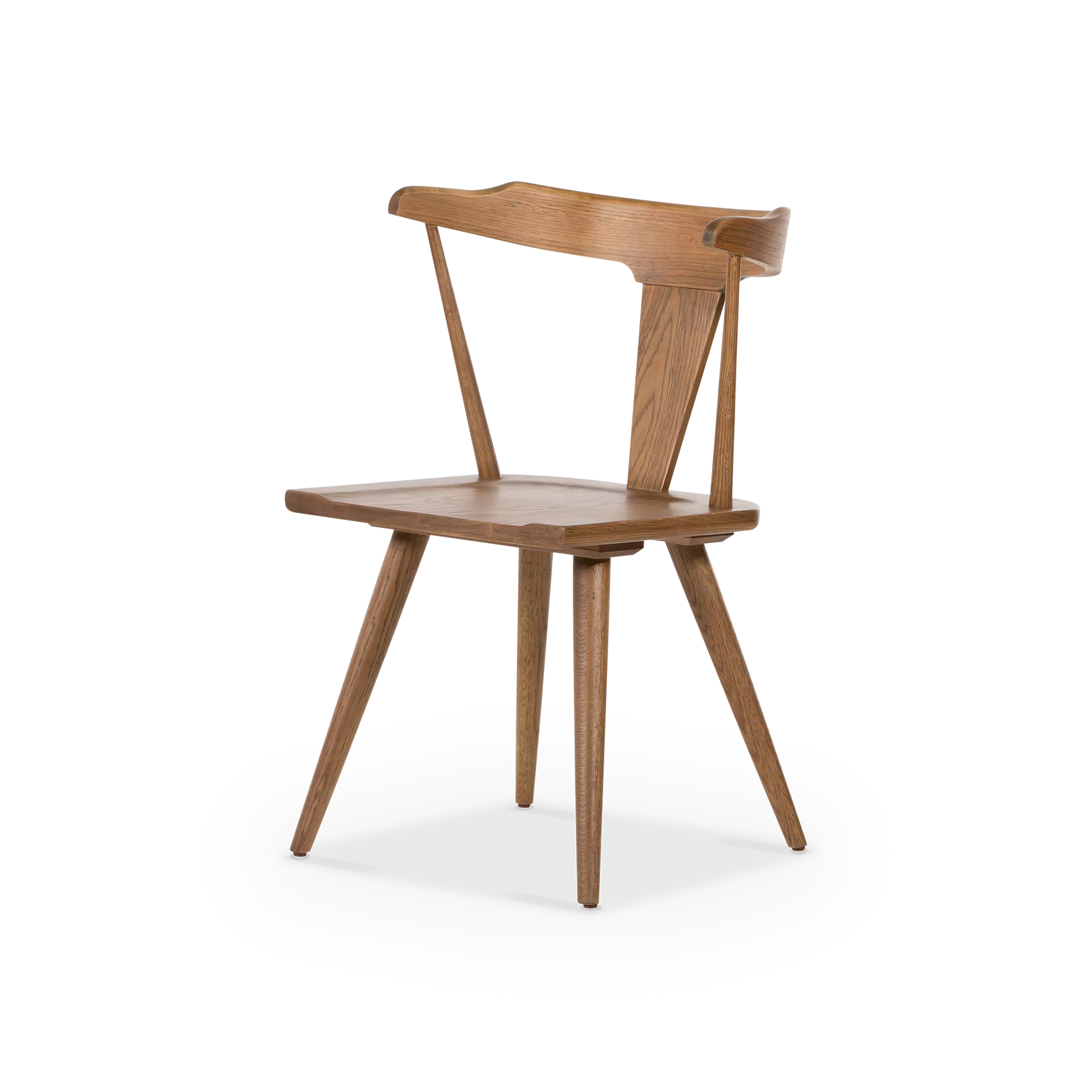 The airy and sculptural Ripley chair is a revamped take on the iconic Windsor chair. Its finish, available in natural oak, stained black or white, highlights the beautiful grain of its wood.