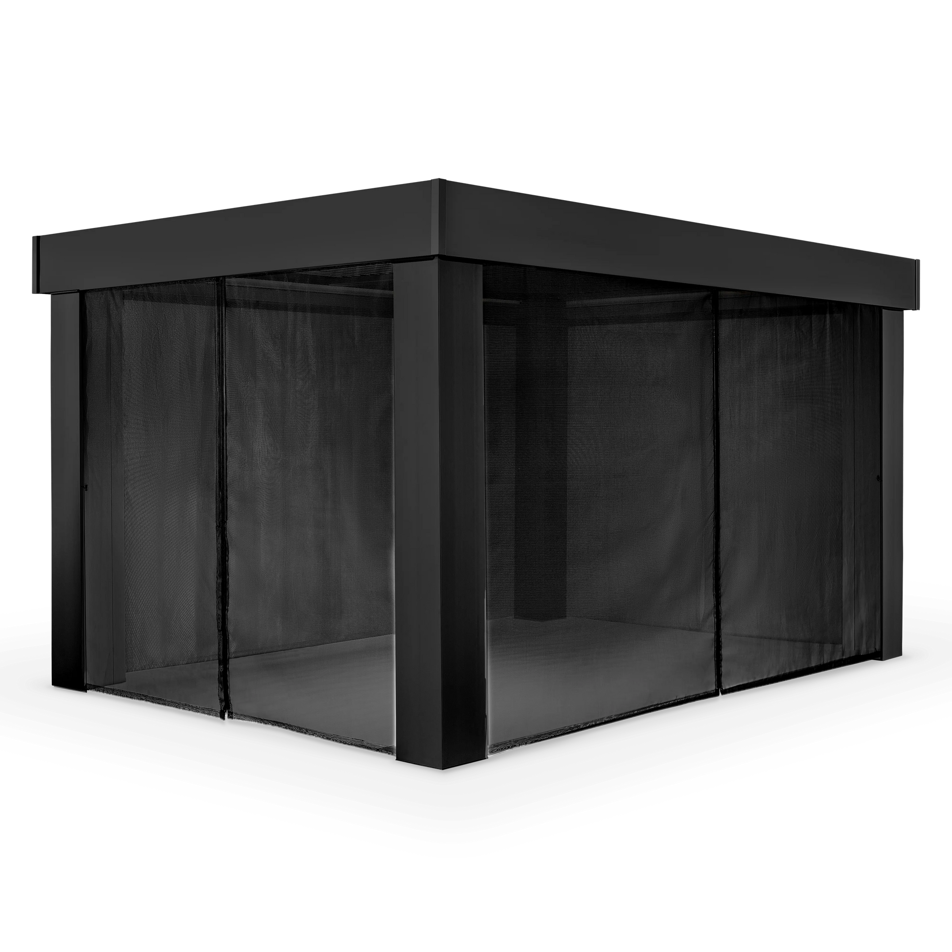 Live as comfortably outside as you do indoors with Rooftop. This anodized aluminum pergola, designed and manufactured in our Quebec workshop, is a mix of ingenious design, solid construction and modern style. Its roof, divided into independent sections, comes equipped with motorized rotating louvres that allow you to regulate the air flow and natural lighting as you see fit. Its pillars conceal a set of curtains that protect against mosquitoes while keeping out sun, rain and wind. It also features adjustable LED lighting to extend your evenings as late as you like. Customize your pergola with a range of optional add-ons, available upon request.