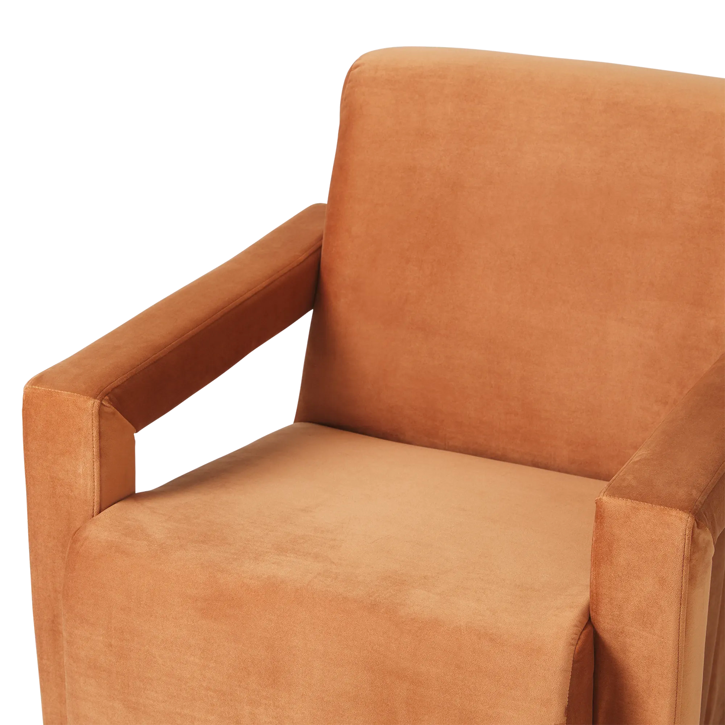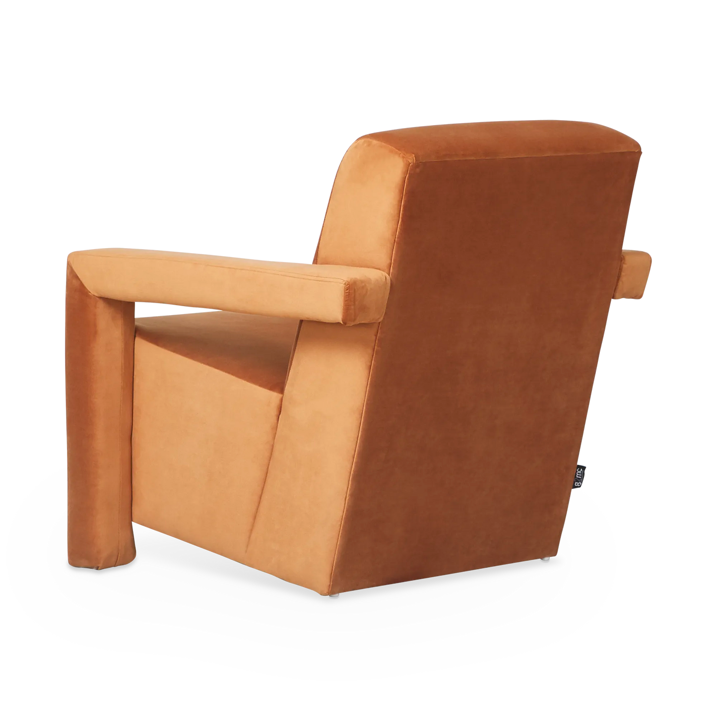 The all-velvet Rotterdam armchair offers supreme comfort. Its slightly titled back allows you to nestle comfortably, while its colorful upholstery will add warmth and spice up any decor.