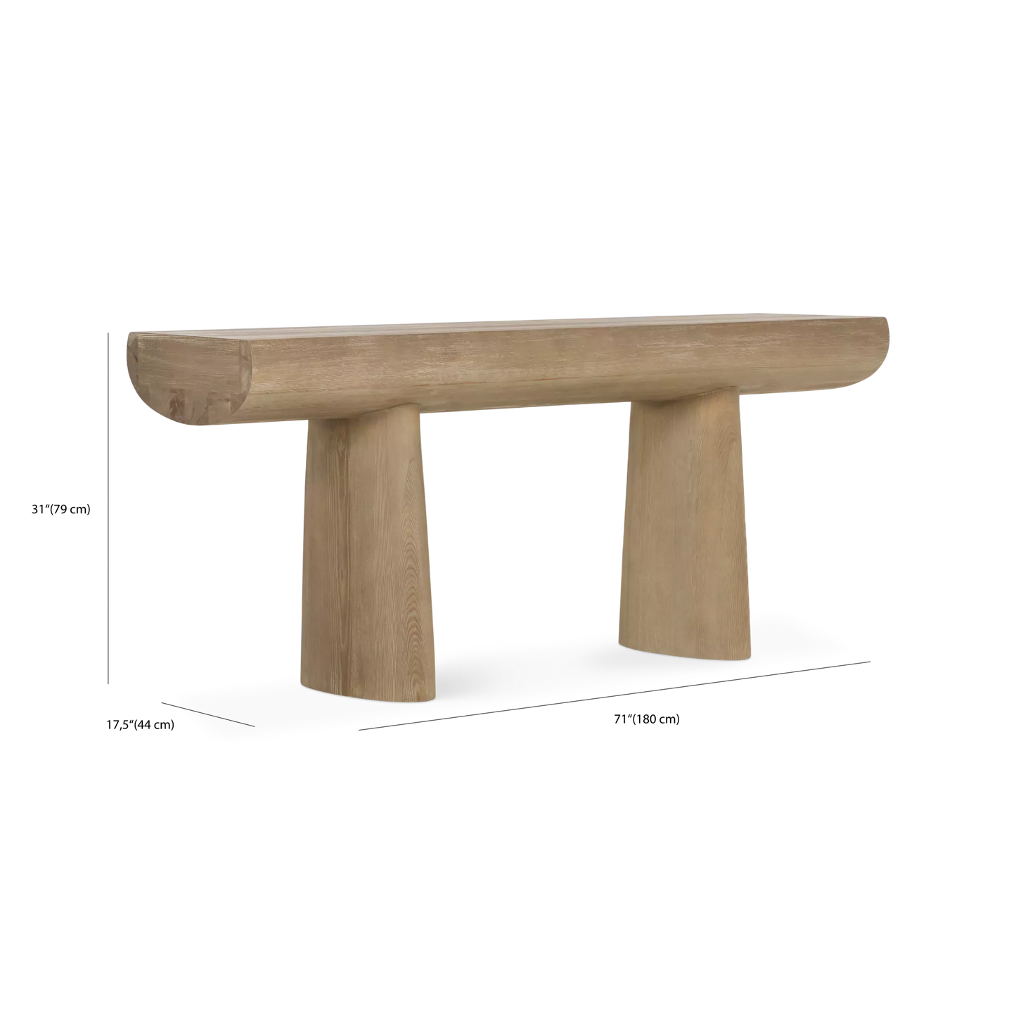 Crafted from solid pine in a refined smoky-grey finish, the Rye console table captivates with its sculptural presence and organic lines. Its rounded edges and tapered legs recall artisanal woodworking, while the minimalist form keeps it distinctly modern. A striking statement piece for any entryway, hallway or living space.