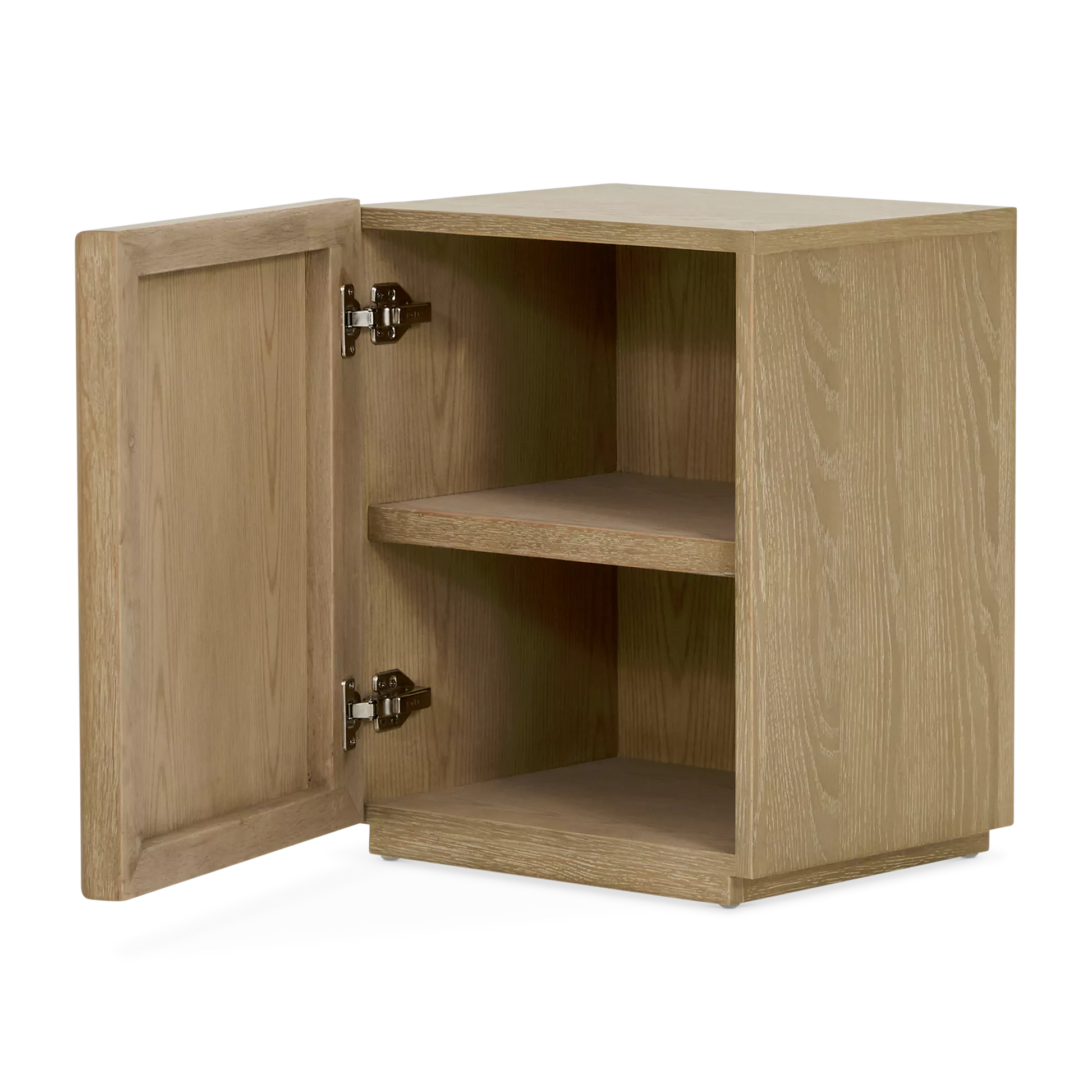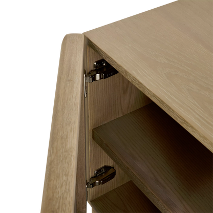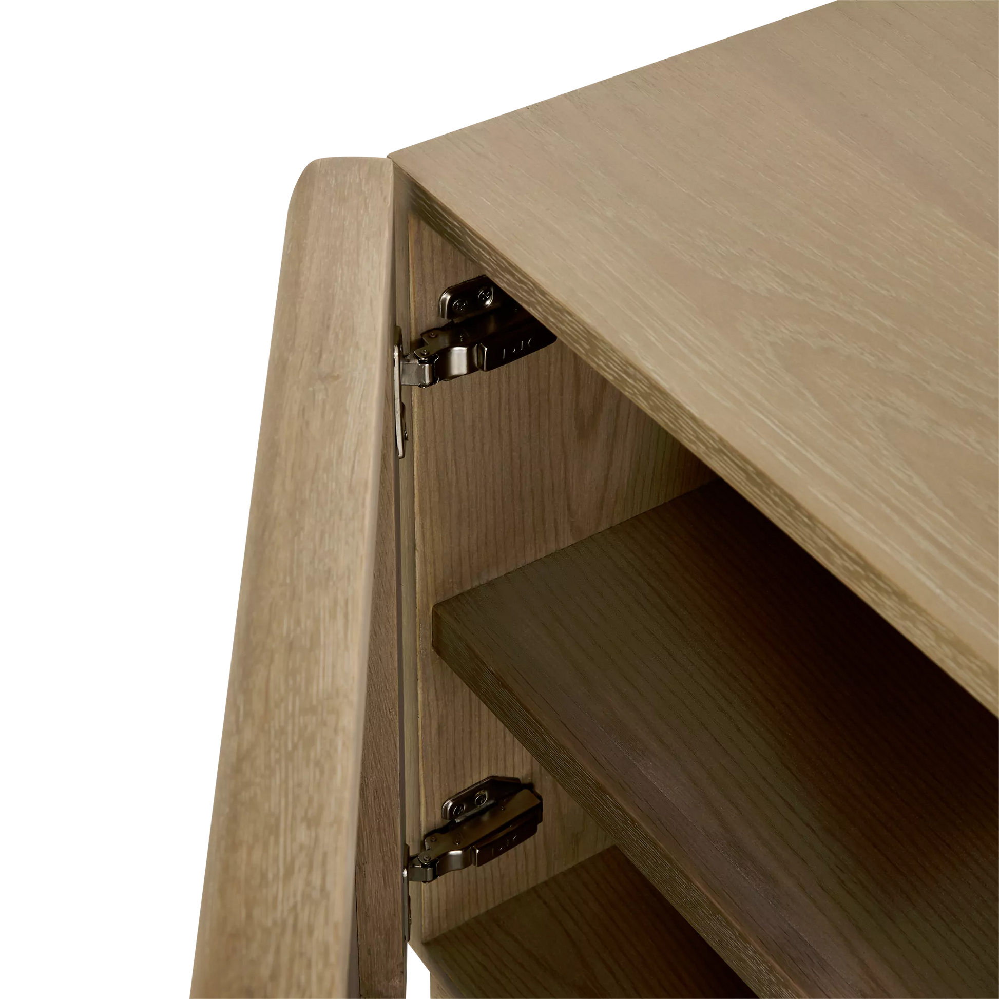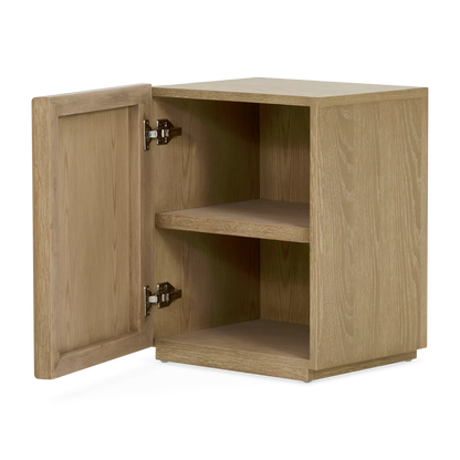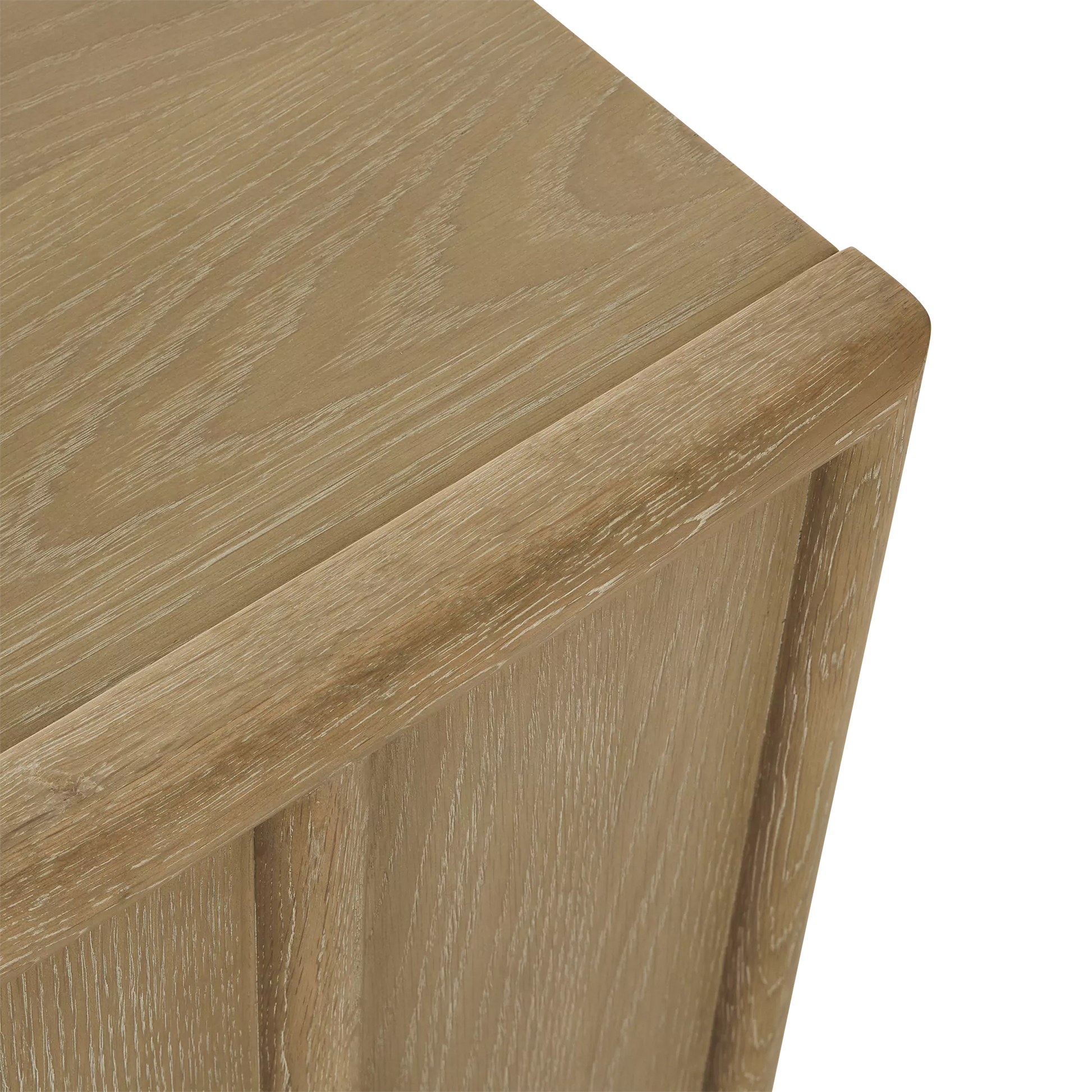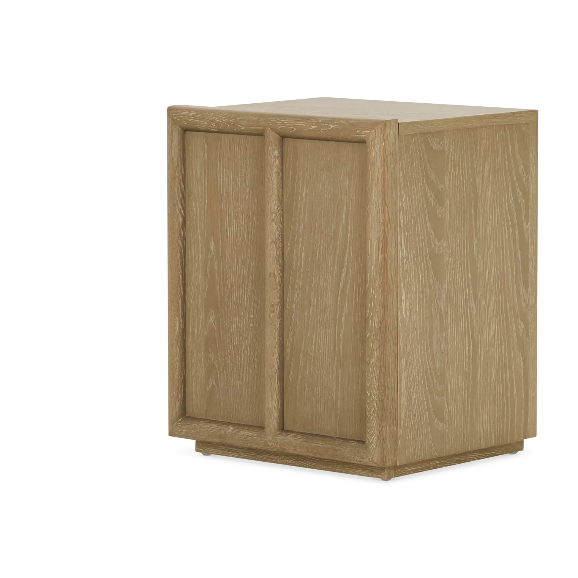 With its sculpted frame and smoky-grey pine finish, the Rye nightstand brings warmth and quiet strength to any bedroom. Its minimalist silhouette reveals subtle craftsmanship, while the interior shelf offers practical, concealed storage. A timeless piece that balances texture, function and form.