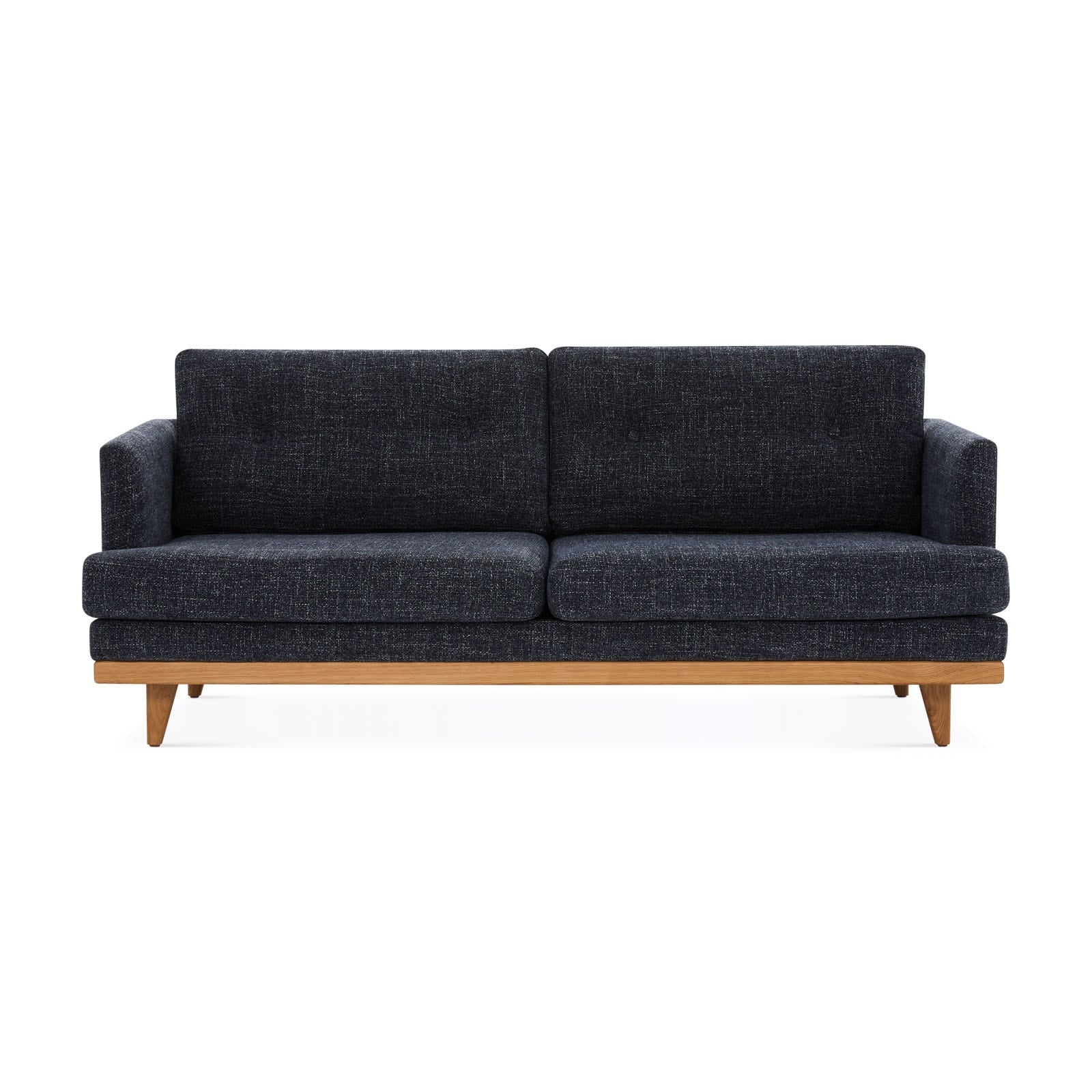 The retro-inspired Sandra sofa brings together all the best traits: a timeless design, cozy heathered fabric and plump cushions for lounging comfortably.
