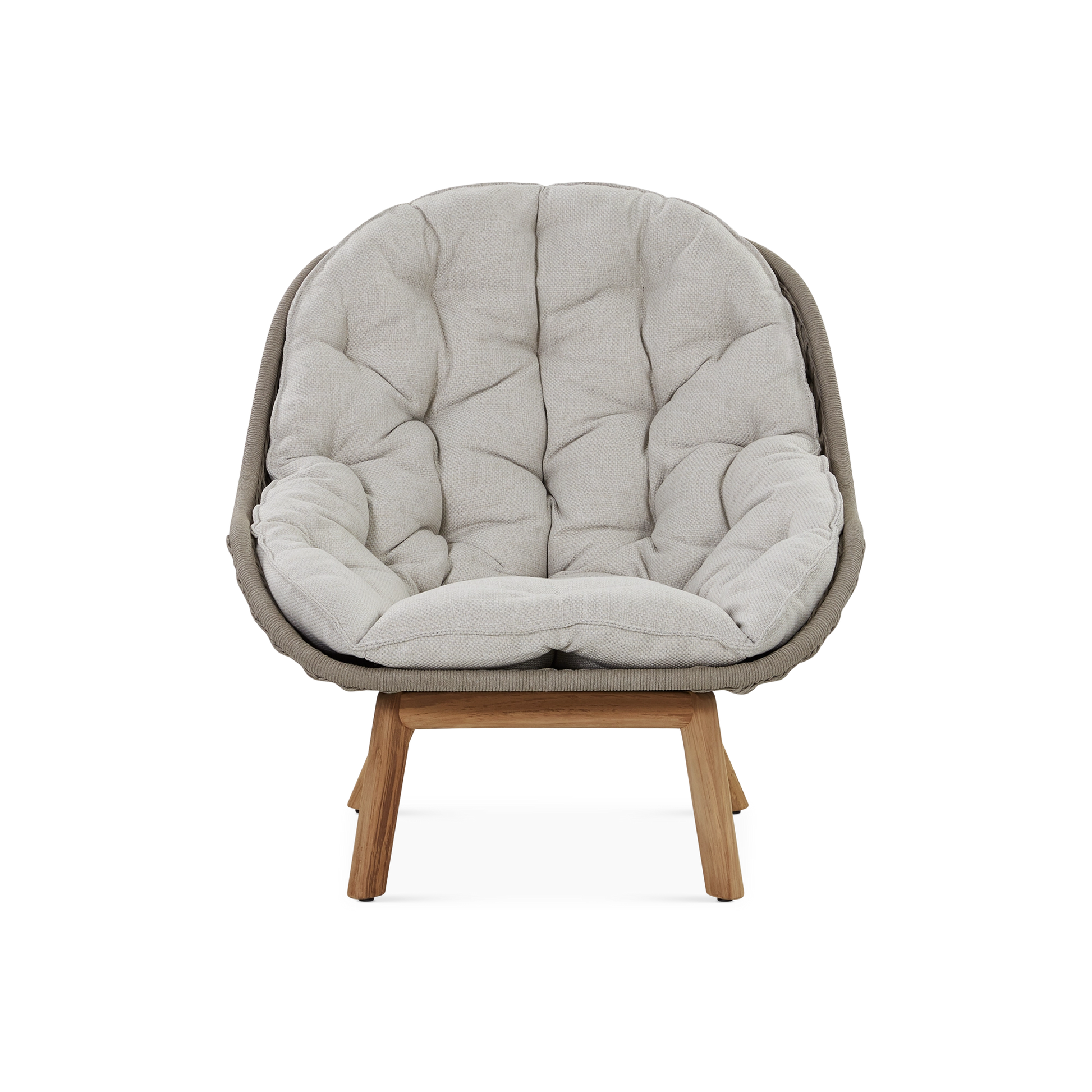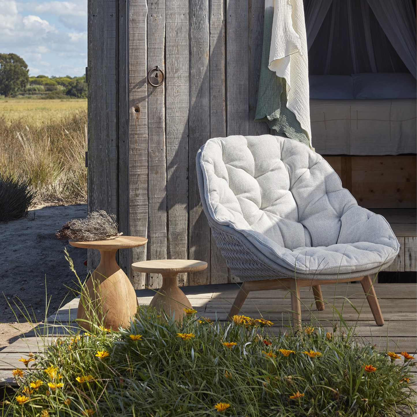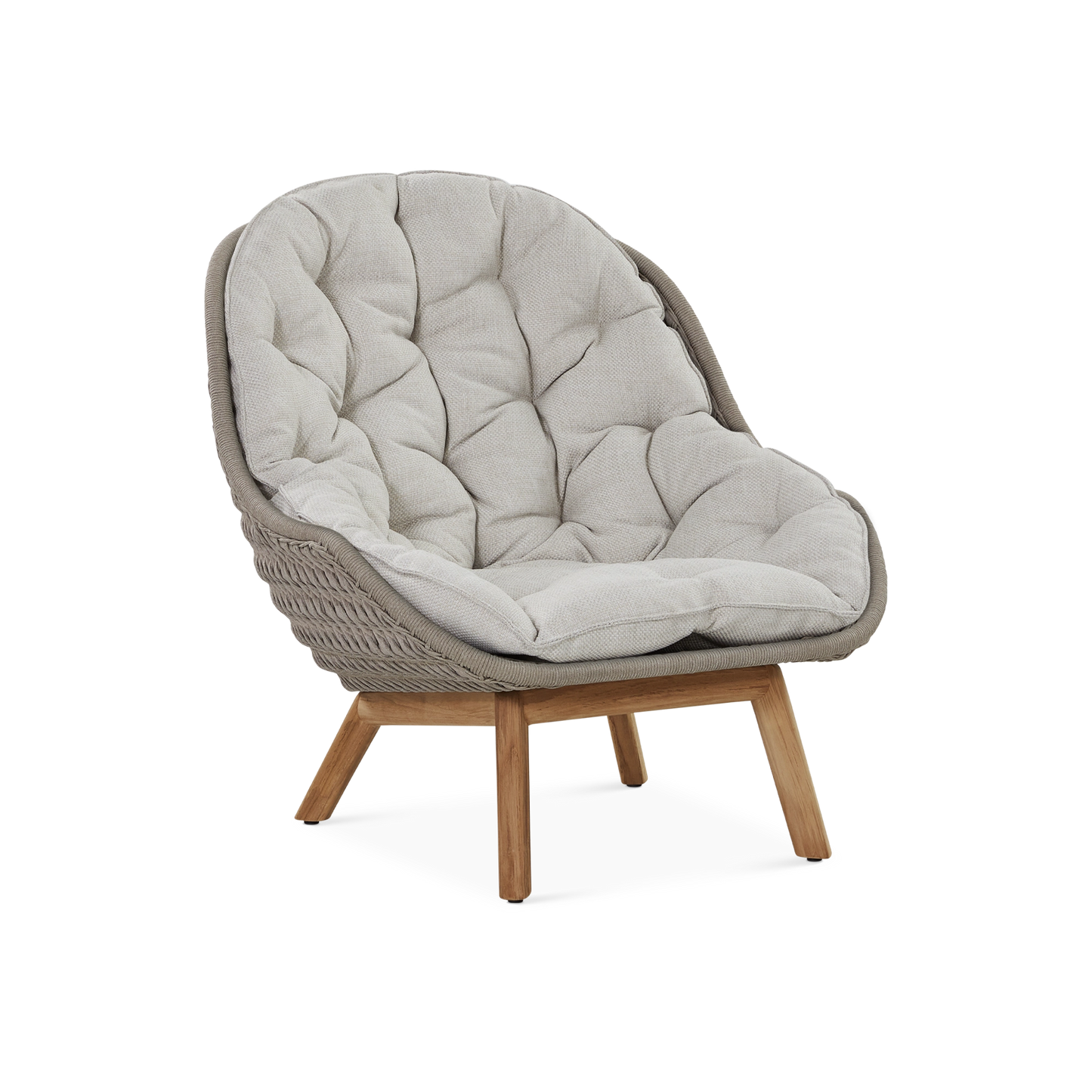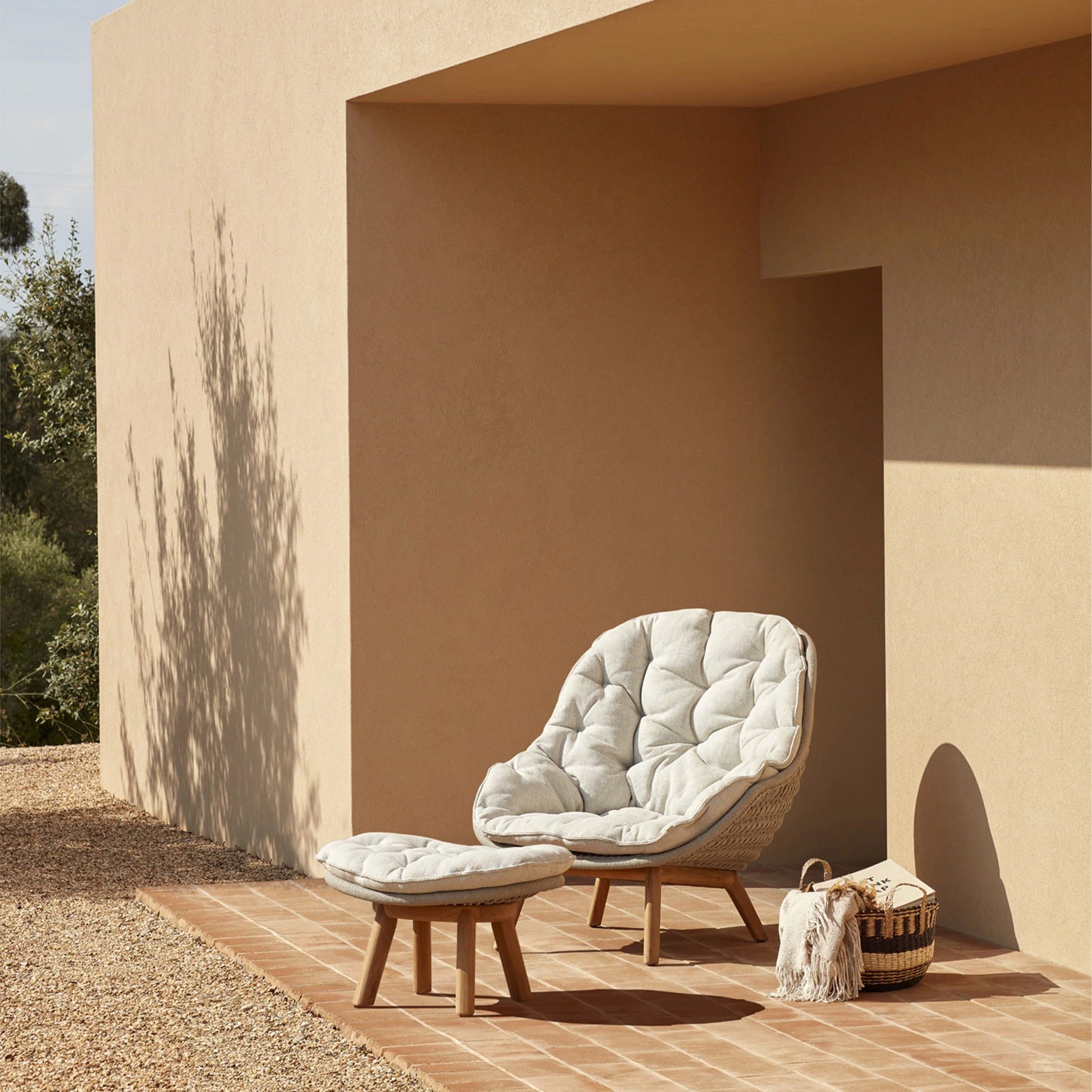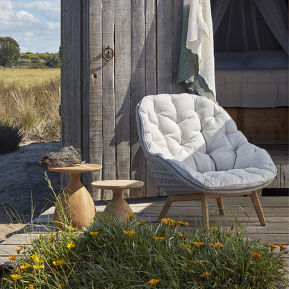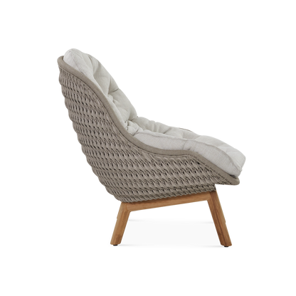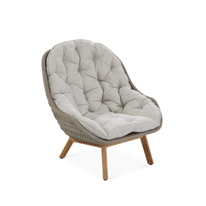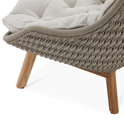 A fusion of innovation and craftsmanship, this collection by Belgian manufacturer Manutti is distinguished by organic curves that perfectly complement the outdoors and a mix of luxurious, weather-resistant materials. Indulge in the comfort of the Sandua lounge chair for an unparalleled seating experience. Its woven seat with an enveloping shape, set on slender, teak wood