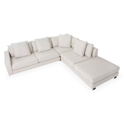 Ampio means "ample" in Italian. Featuring a deep and low seat, this sectional was made for stretching out comfortably. Its two back cushions allow you to choose your desired level of comfort: supported or relaxed.