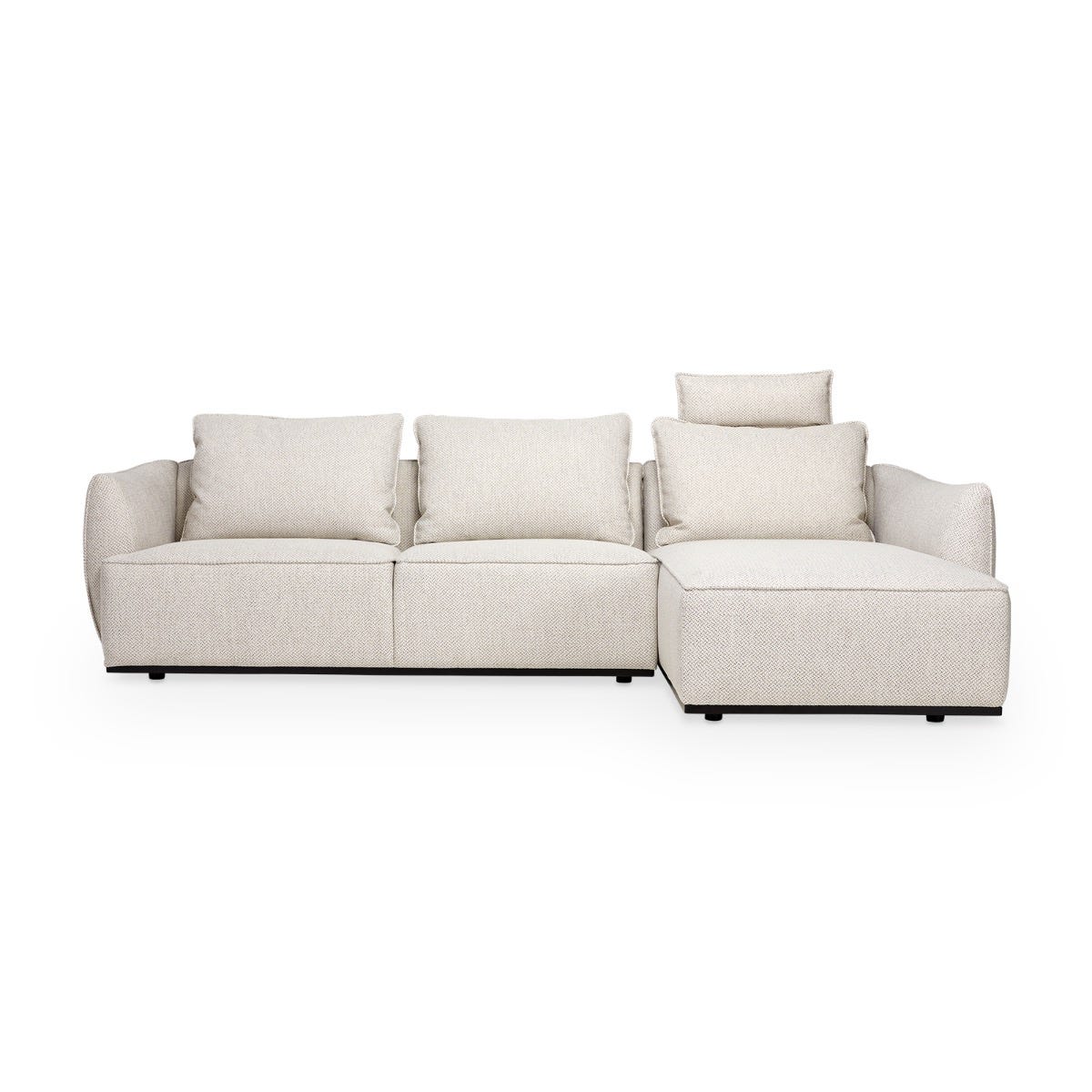 The Relax sectional sofa features a versatile design with its curved contours and removable headrest. It is sure to create a cozy effect in any space.