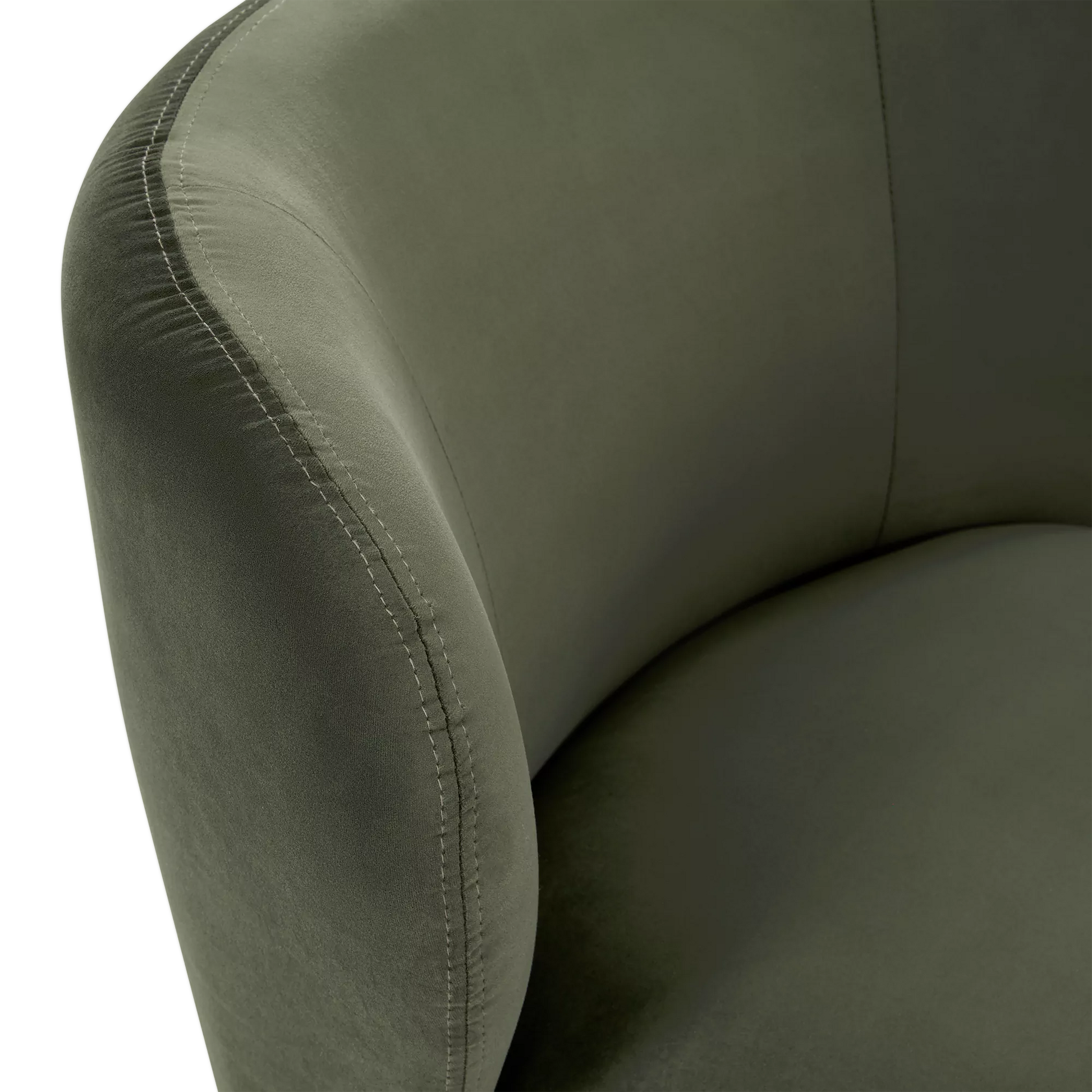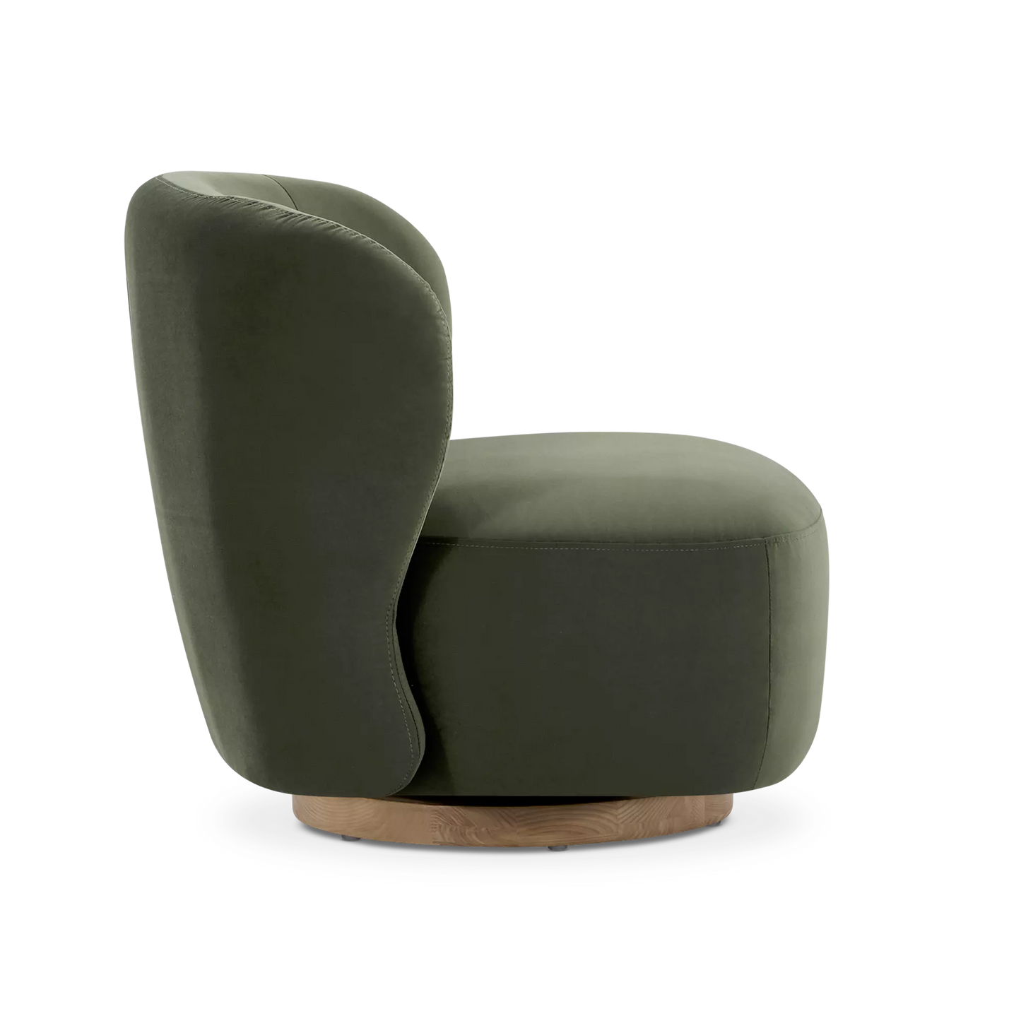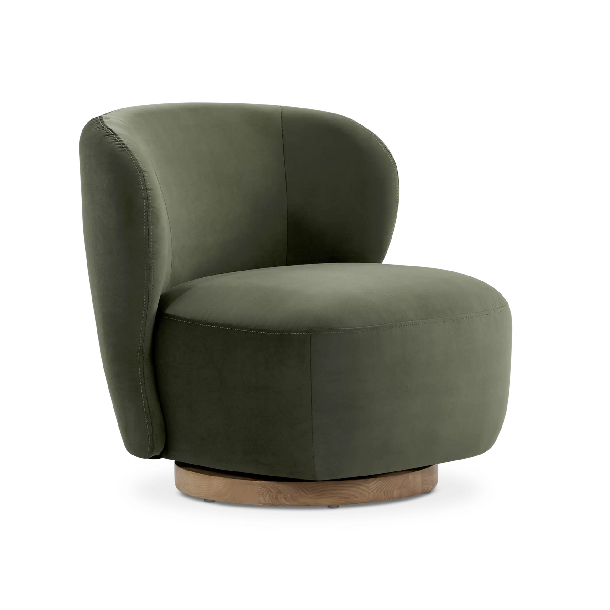 Sesame is an oasis of softness. Its velvet upholstery and wraparound silhouette without armrests make it a piece that is at once inviting and decorative. Swiveling on a wooden base, this chair offers freedom of movement and a modern touch. A single object marrying comfort, function and style.