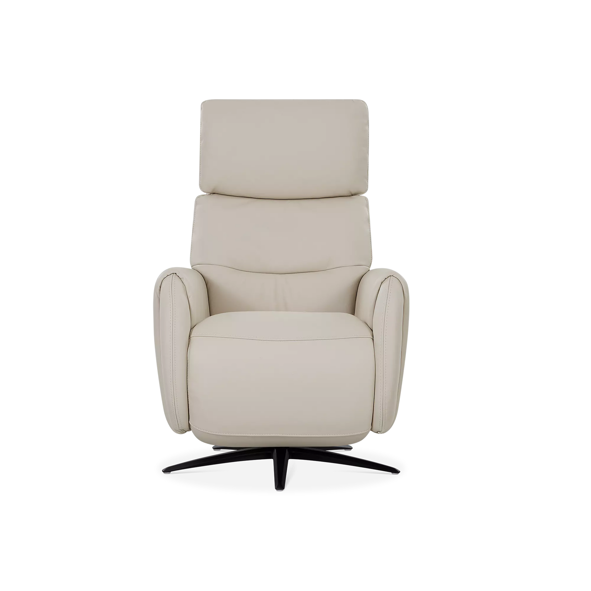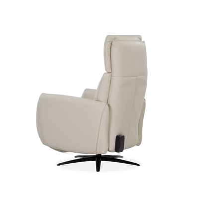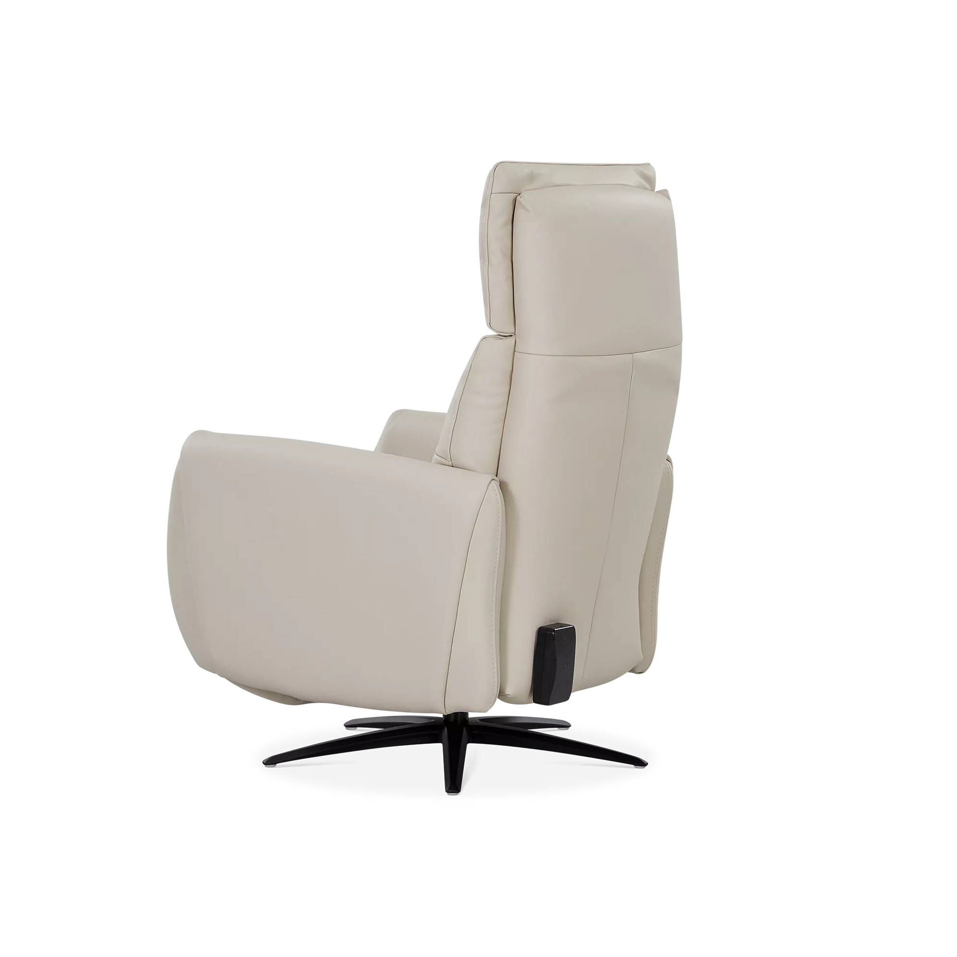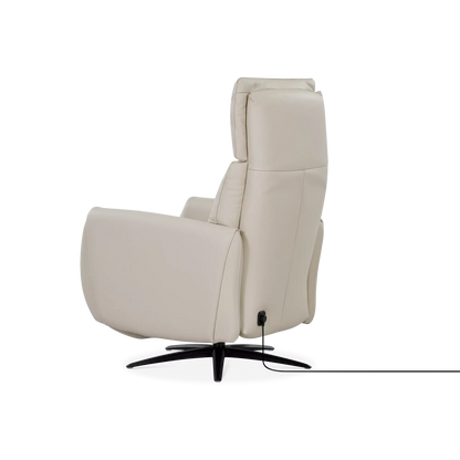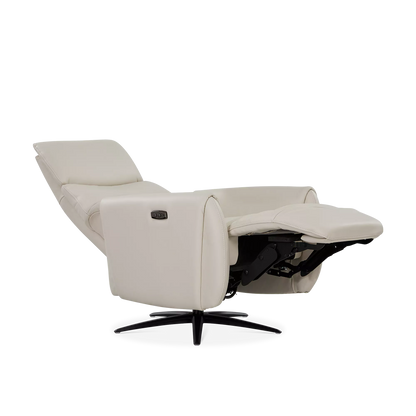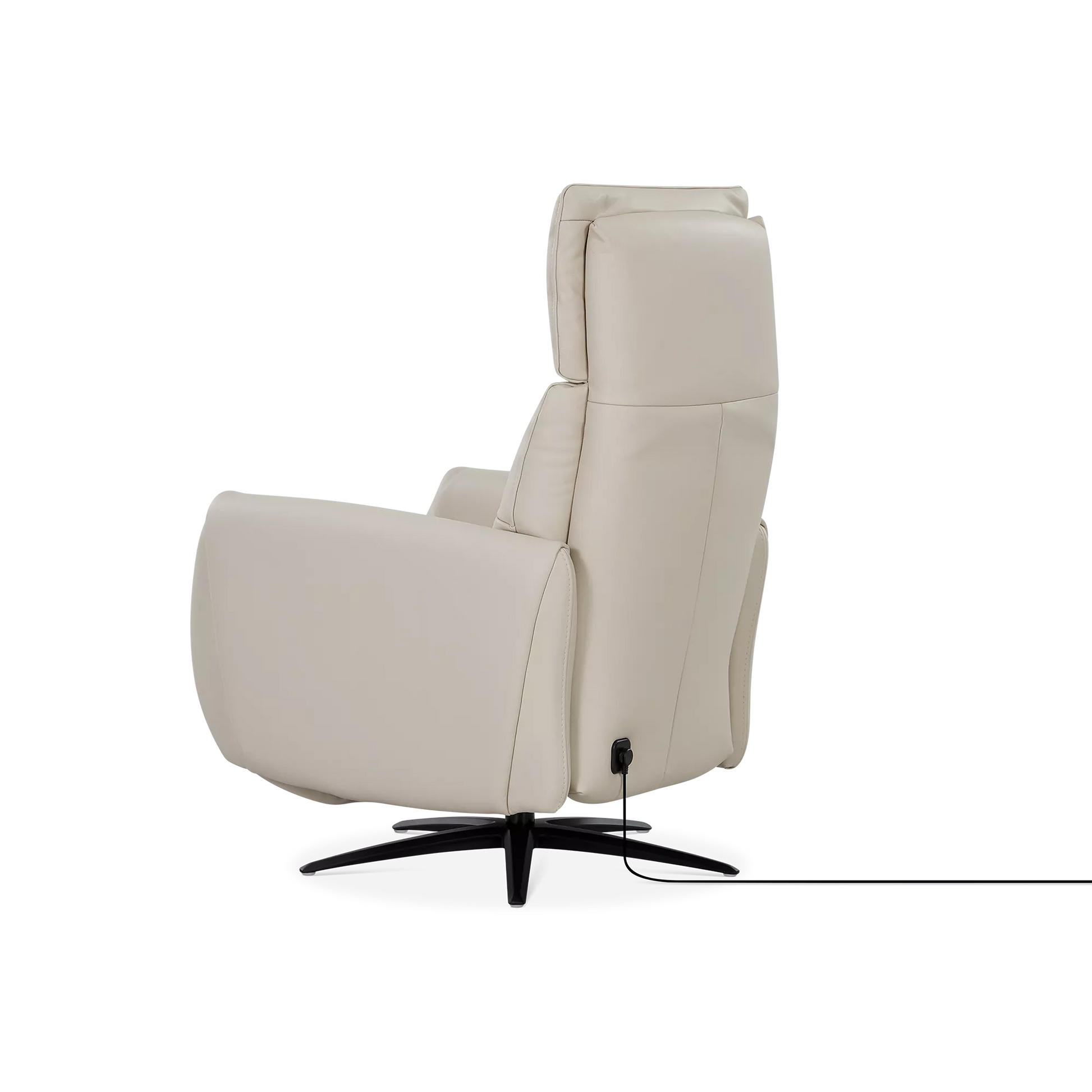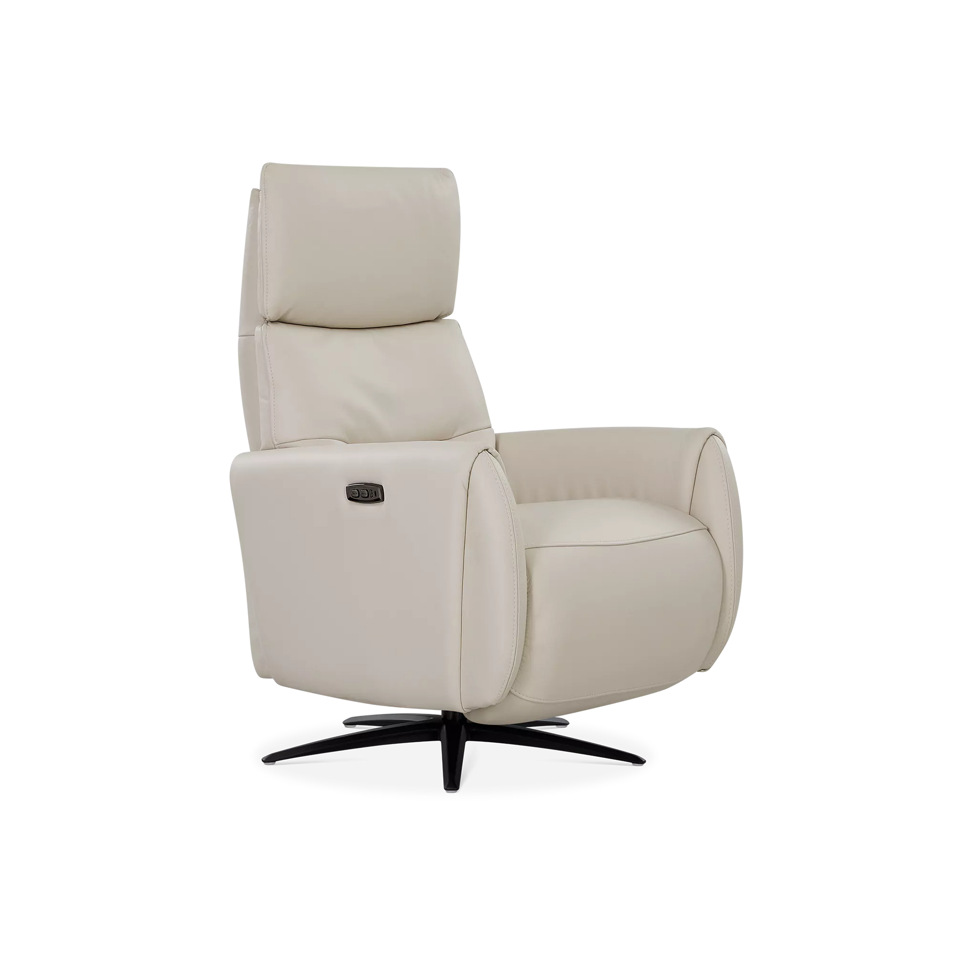 The Skinner power recliner impresses with its sleek design and exceptional comfort. It offers complete freedom with its swivel base and a rechargeable battery that eliminates the need for cumbersome wires. Featuring a refined silhouette and supple leather upholstery, it will bring a modern touch to any interior.