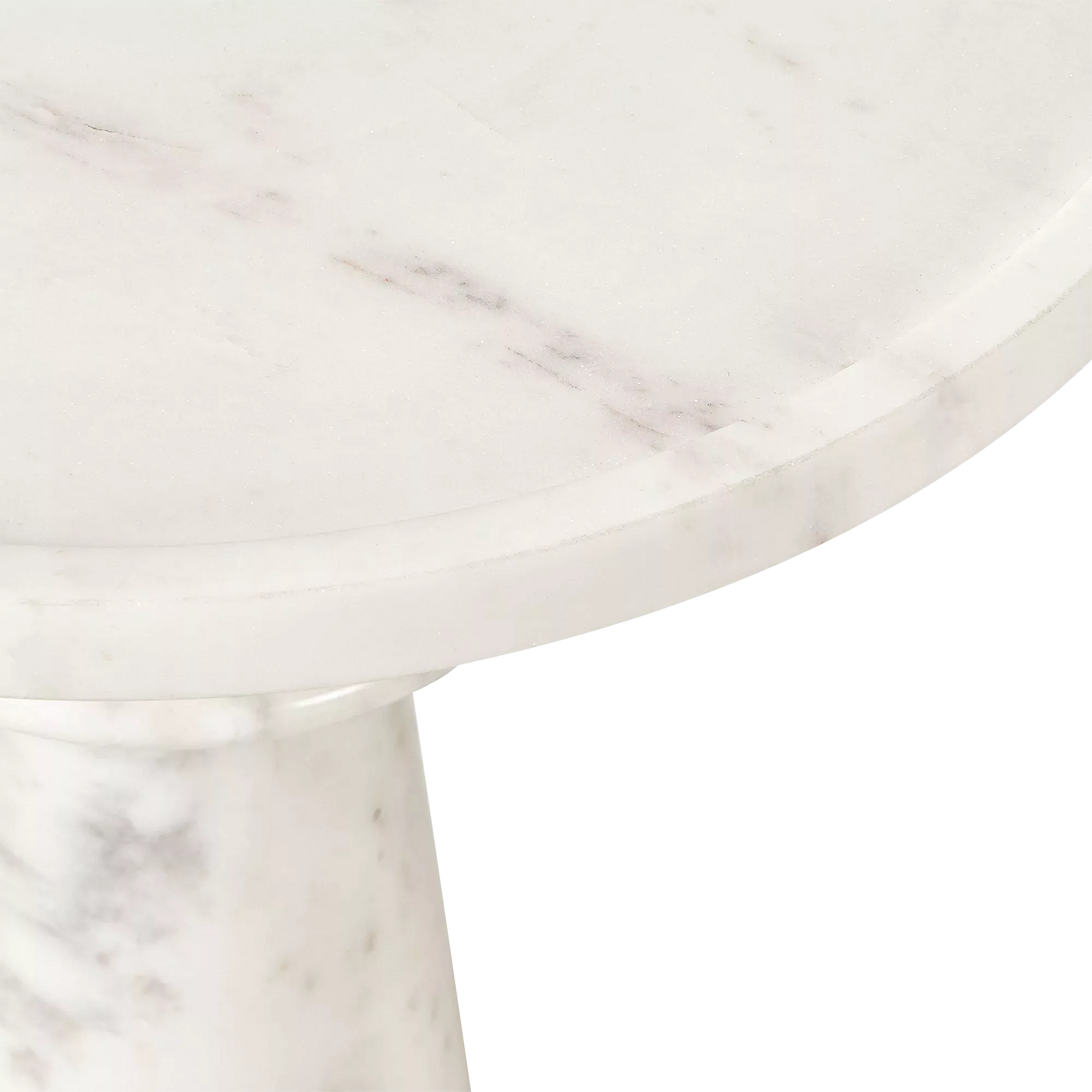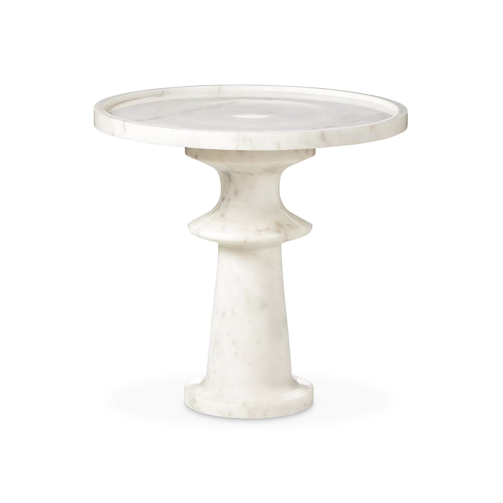 The Skylar side table by Four Hands is crafted from solid marble and available in polished white or black for a timelessly elegant look. Made using a lathe, it has a sculptural silhouette that will enhance any space as practical addition brimming with charm.