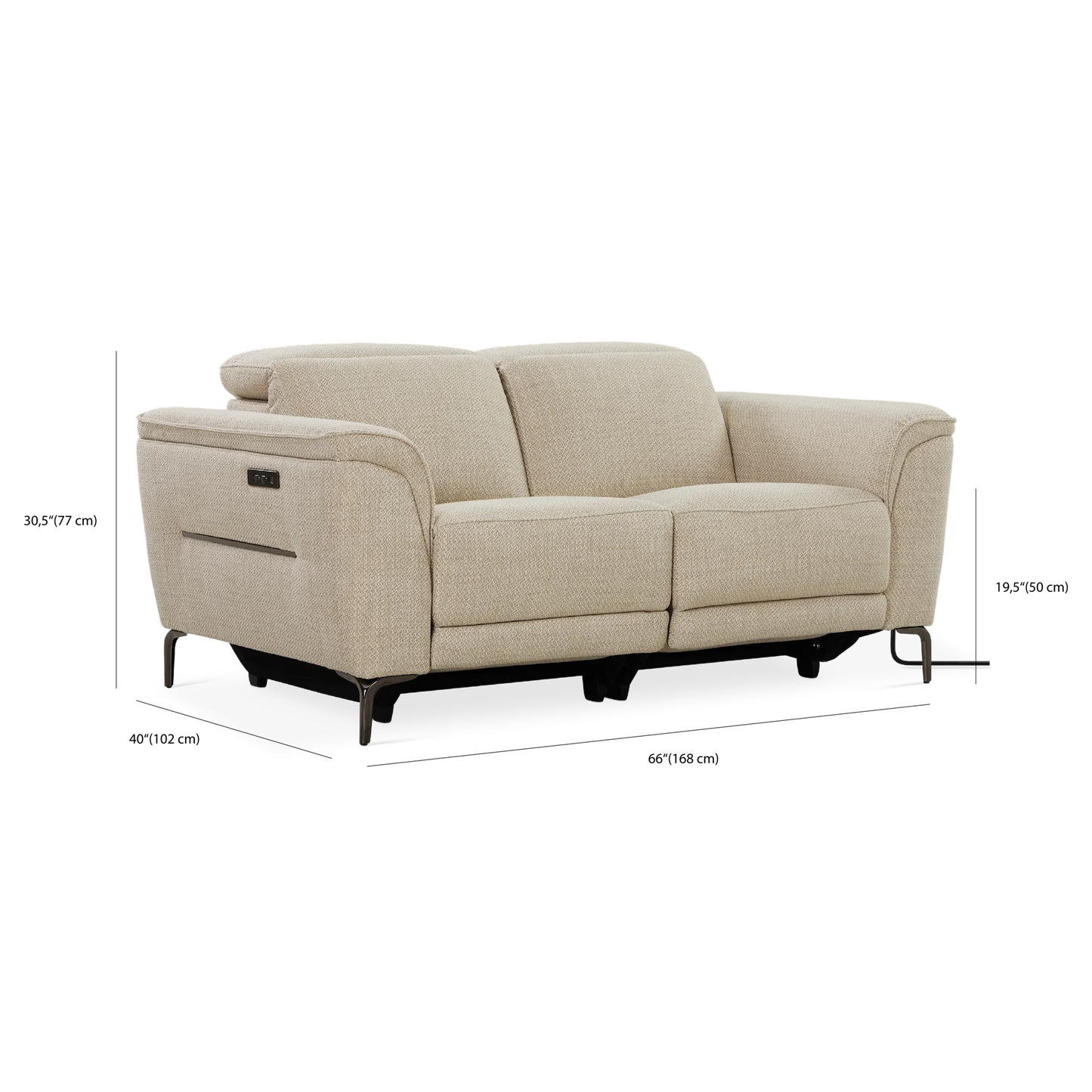 The Smith leather-upholstered sofa stands out with its innovative design and luxurious look. Equipped with a power-recline function and adjustable headrests, each seat offers supple and customized comfort. Its curved metal legs and welted seams add a touch of edge, making it the perfect addition to any modern living space.