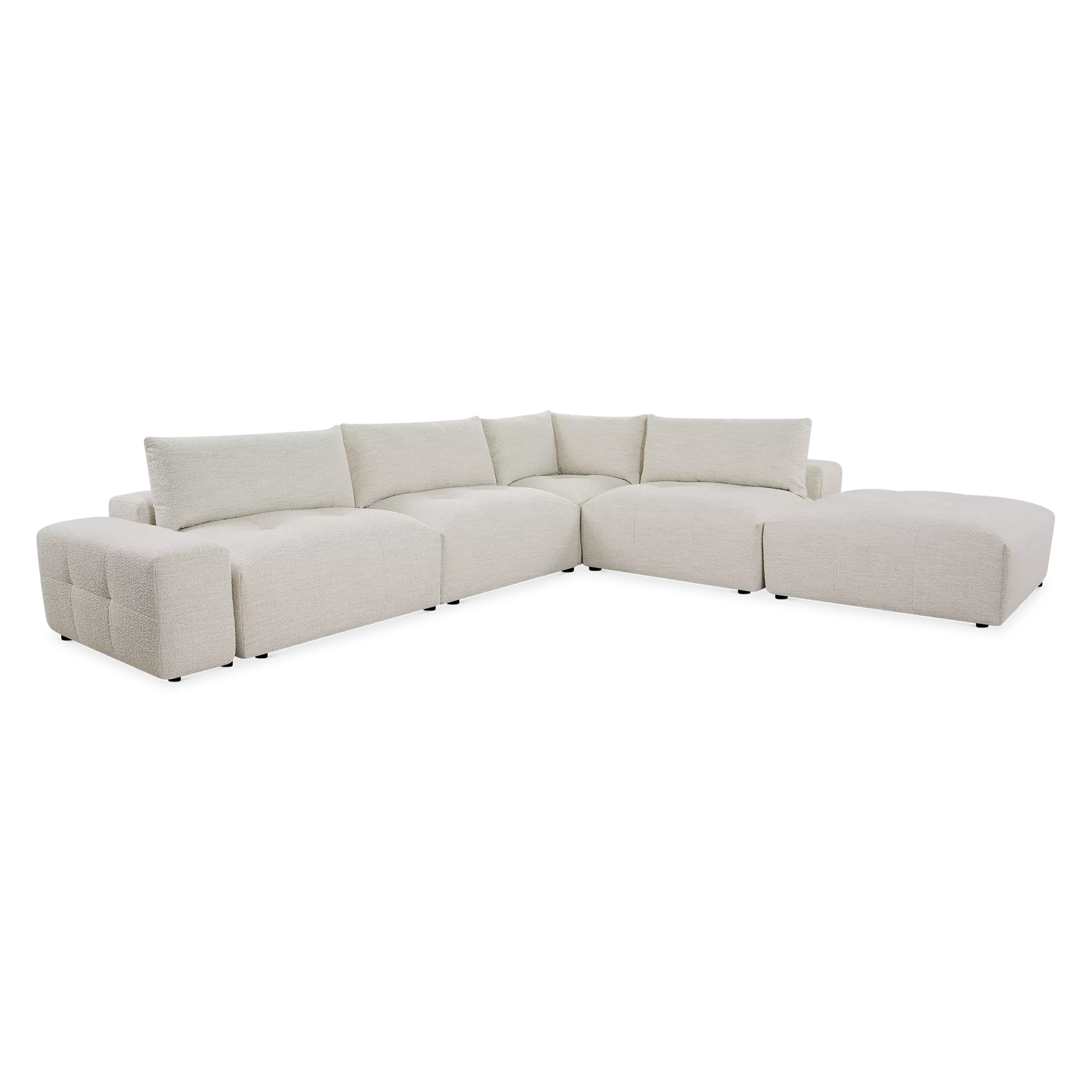 The low-profile Solene sectional sofa balances minimal lines with cloud-like comfort. Subtle tufting adds a tailored touch, while modular components let you shape your space your way. Designed for lounging in style, Solene will bring a luminous and modern look to any living room.