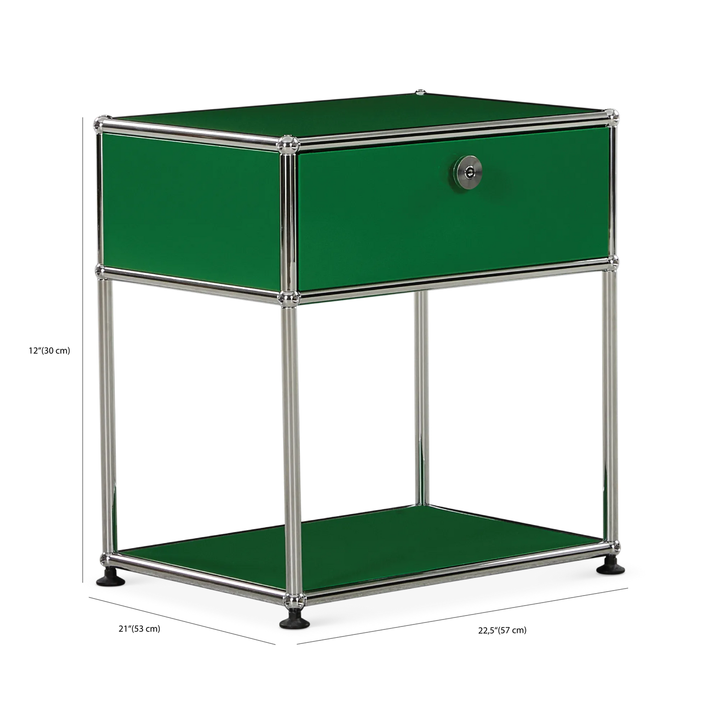 Inspired by the core industrial design principles of the 1930s, ’40s and ’50s, the Sori nightstand combines clean lines with a bold, retro-chic look. Its tubular chrome steel frame, riveted corners, and locking drawer recall classic workshop furniture, reimagined through a modernist lens for a result that’s functional and decorative in equal measure.
