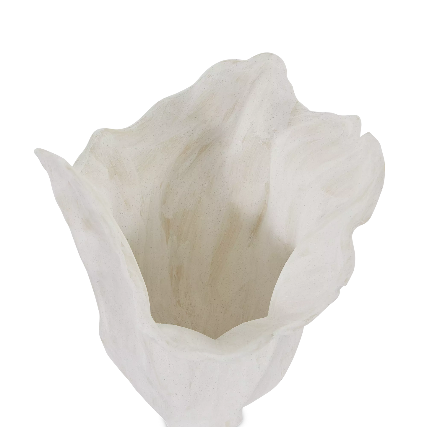 The Spadena vase captures organic elegance with its sculptural porcelain form and soft white finish. Available in a small and large size, it features flowing edges and natural contours to create a sense of movement. It’s equally striking as a standalone accent or styled as a pair to dynamic effect.