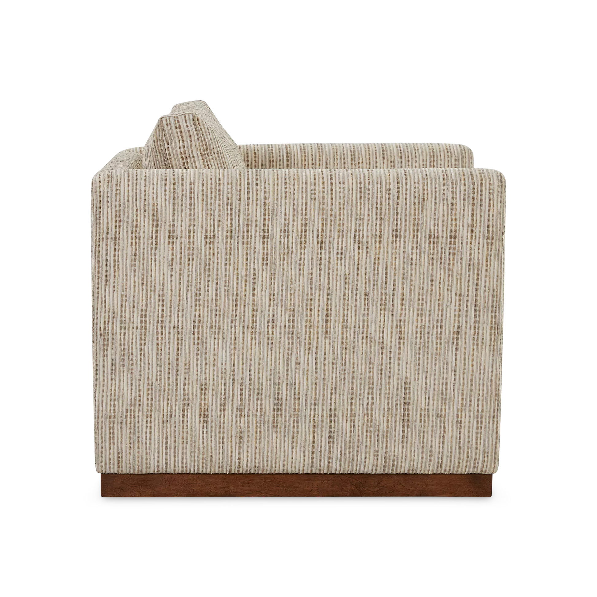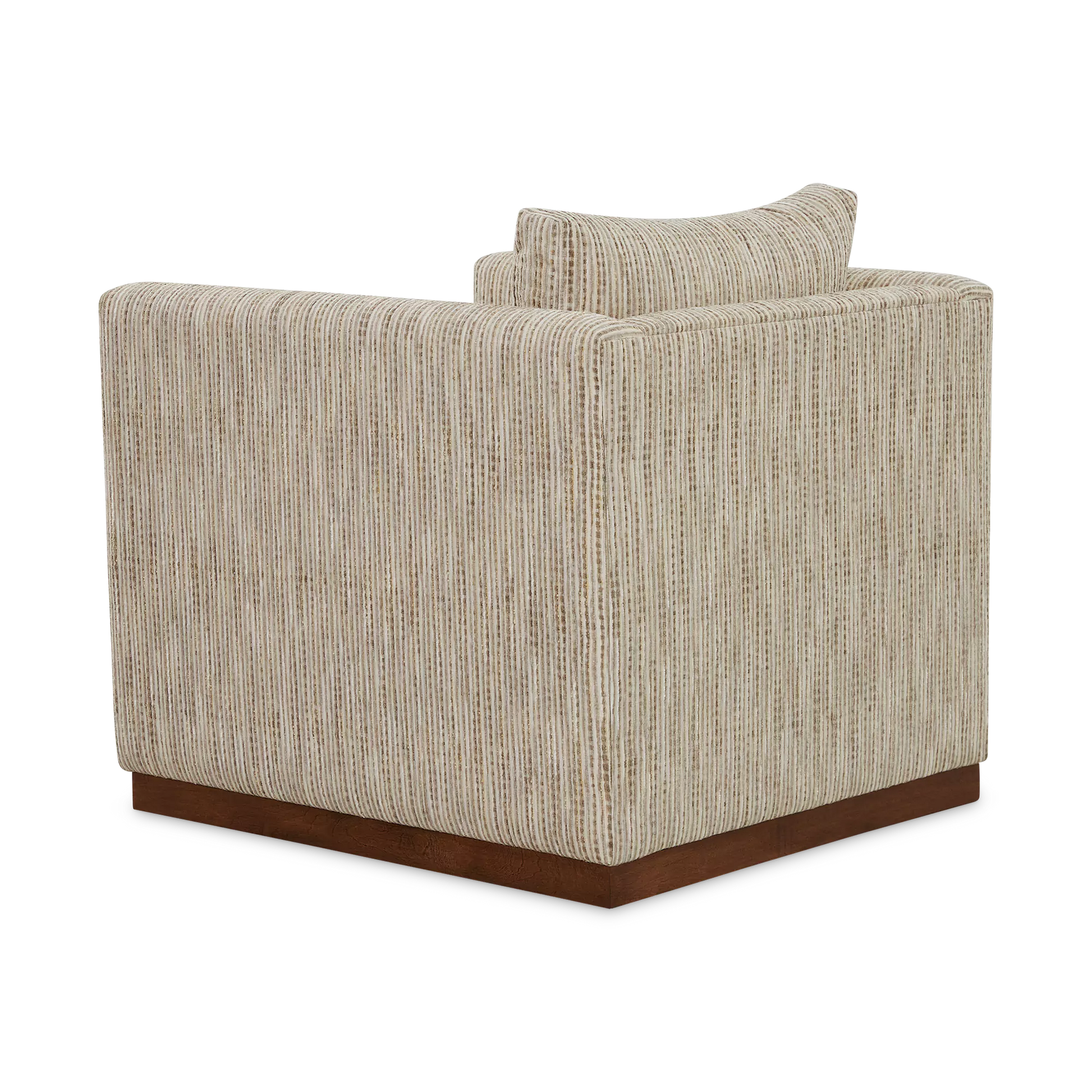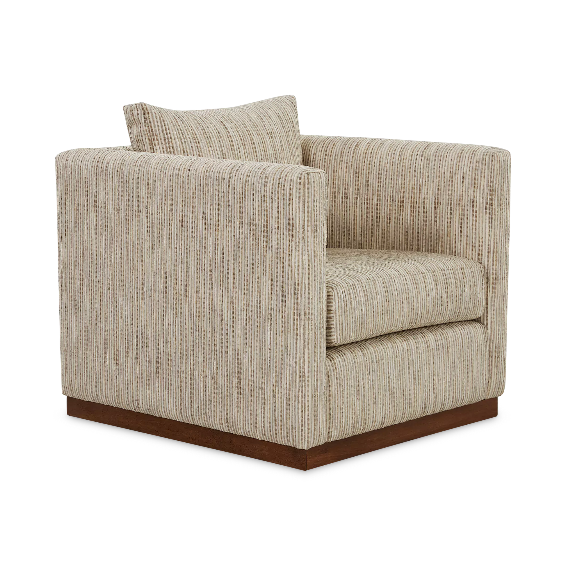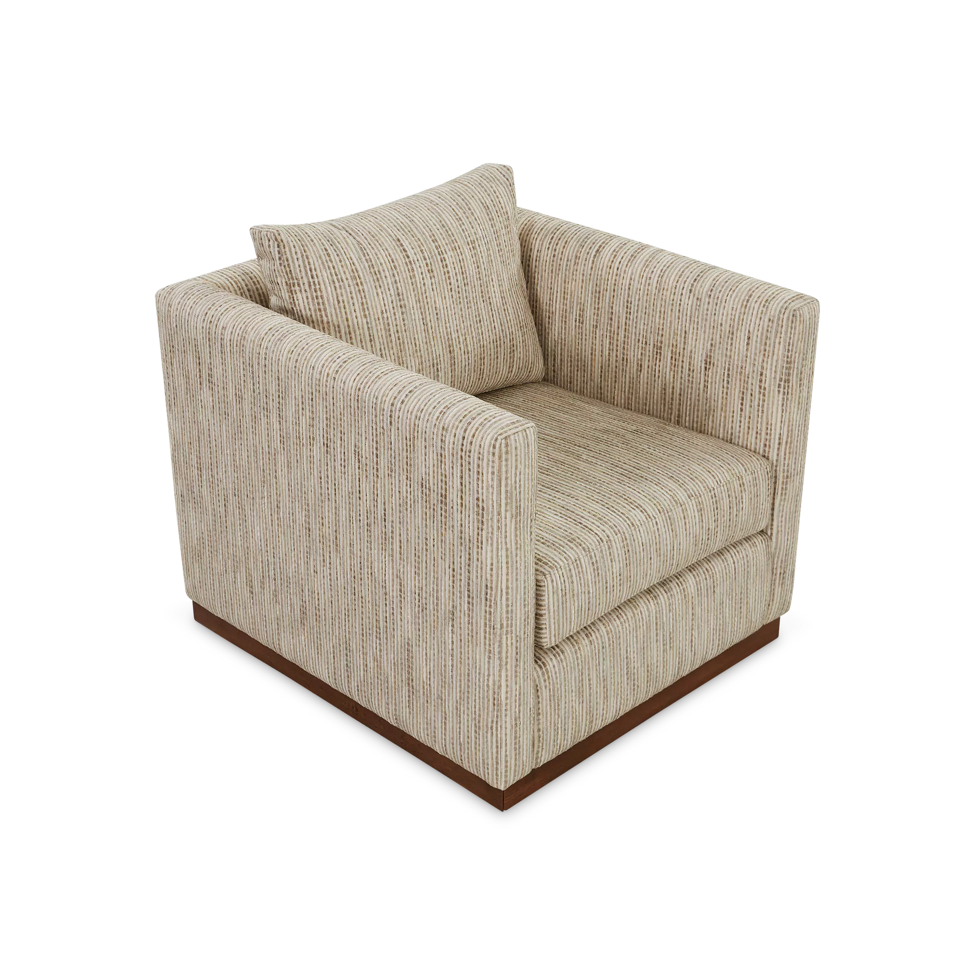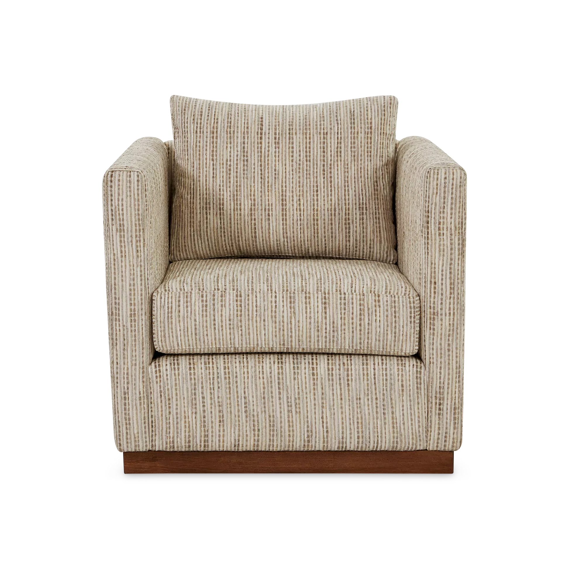 Resolutely timeless, the Spin swivel chair stands out with a square shape, soft, heathered fabric upholstery and plush cushions. An exclusive, Canadian-made design.