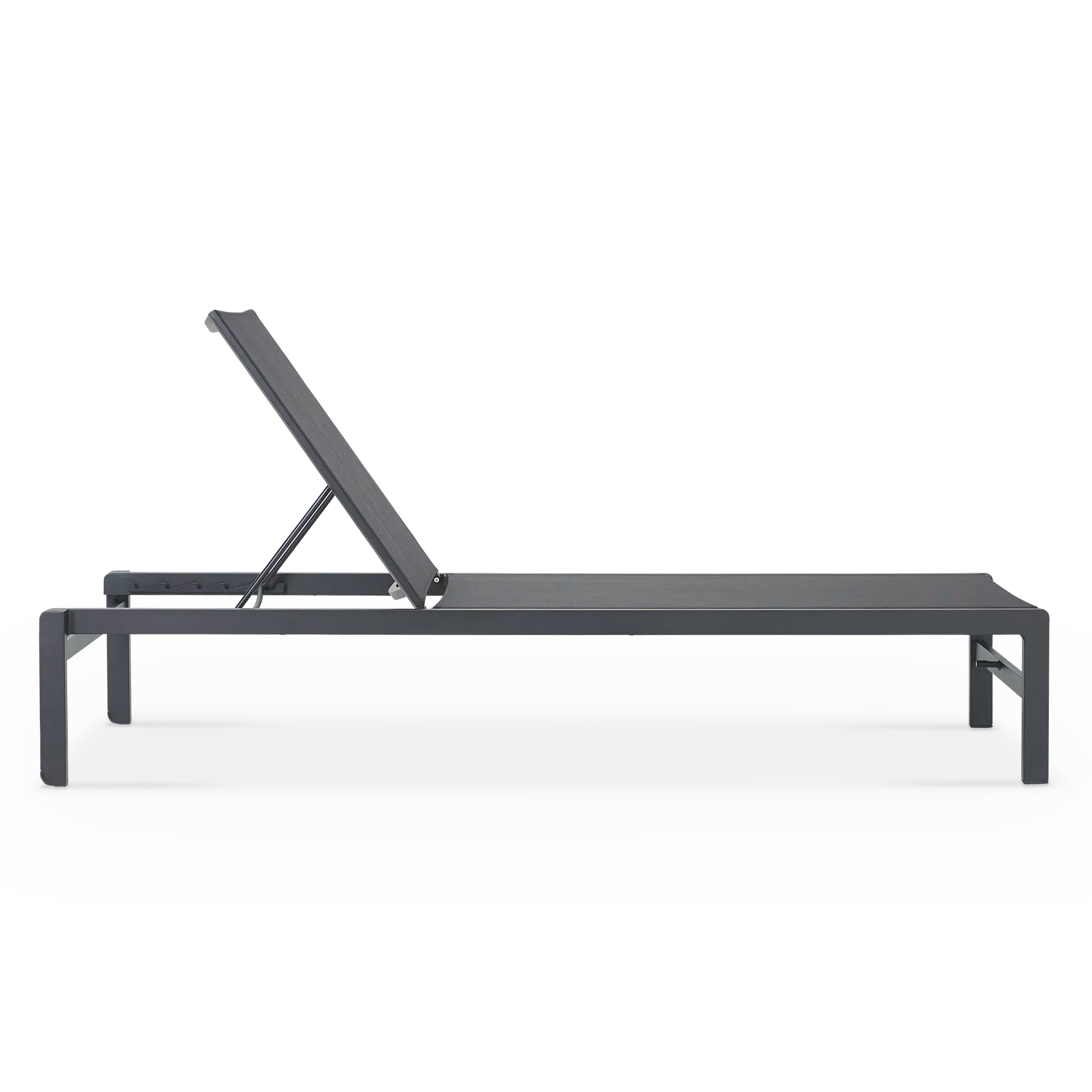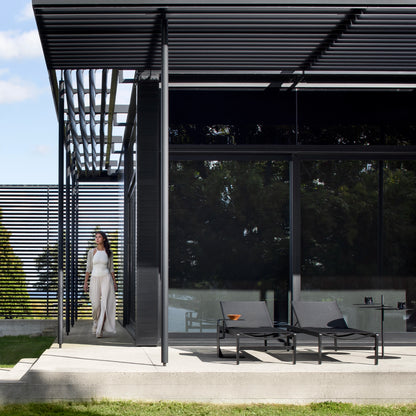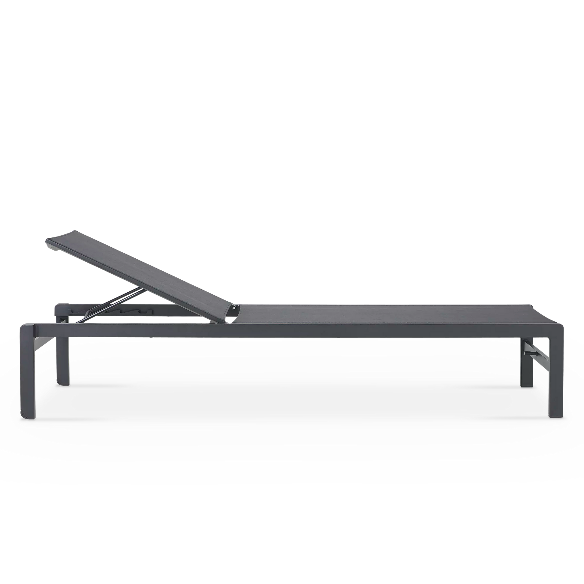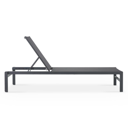 State’s selling points? Textilene, a flexible and quick-dry fabric made for outdoors. Then there’s the five-position backrest that even lies flat for maximum comfort. Add to all that a light aluminum frame with two discreet wheels on the back legs for easy manoeuvring, not to mention this lounger’s minimalist and elegant look.